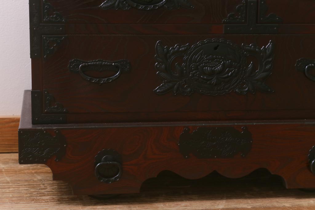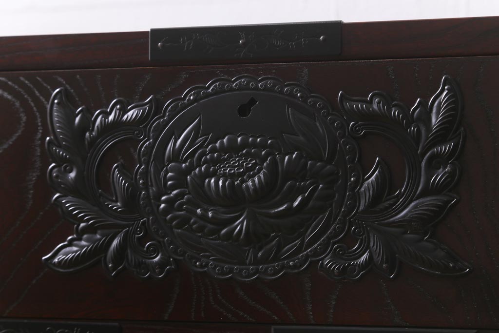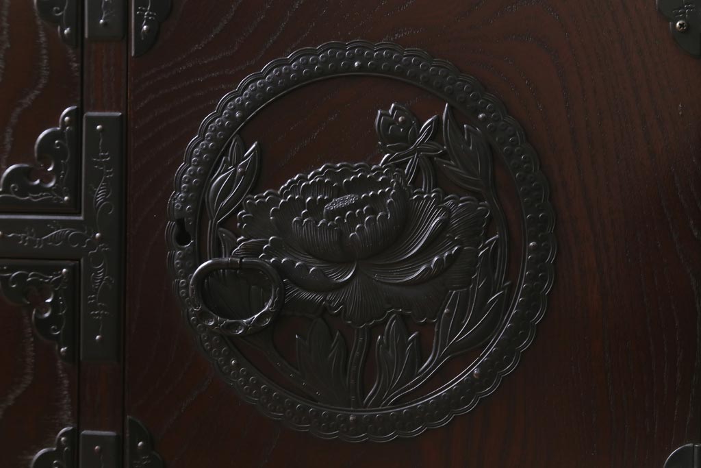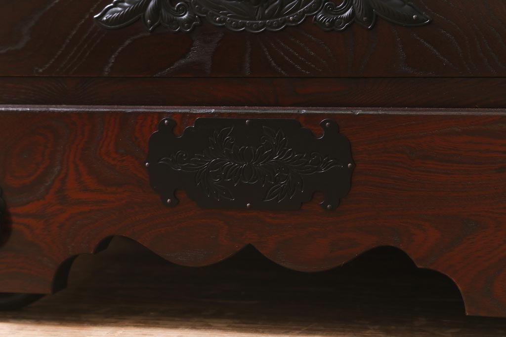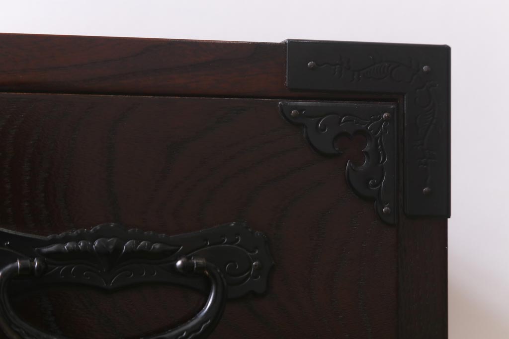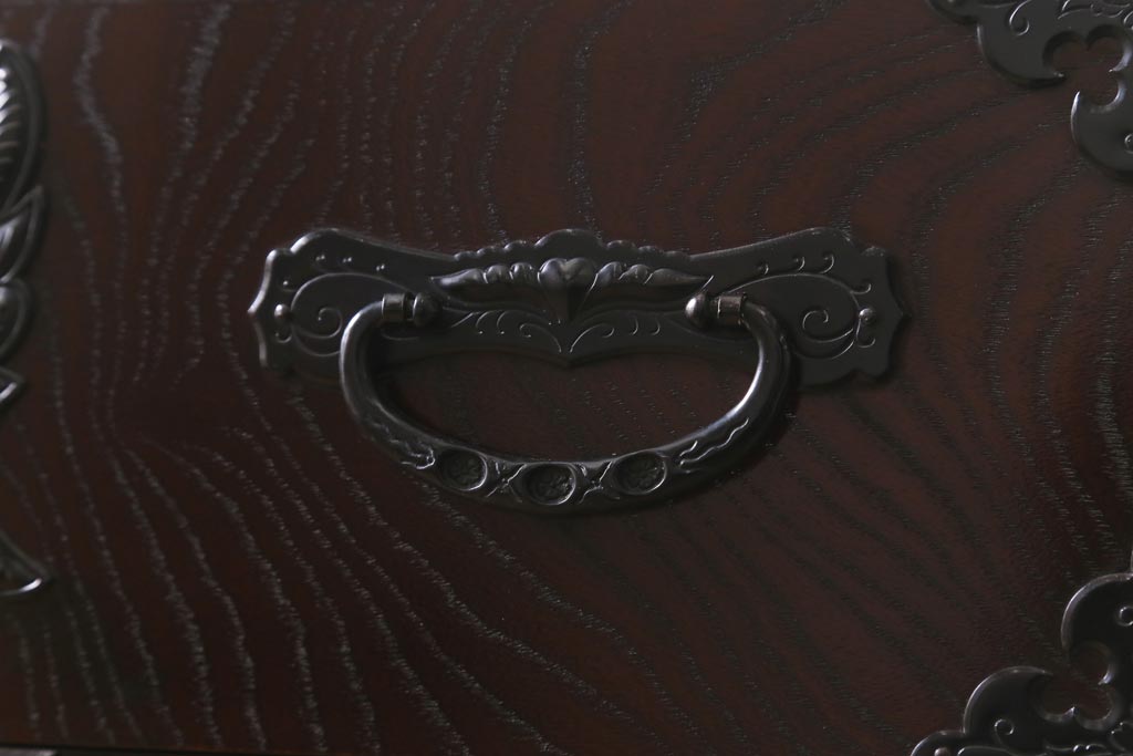牡丹の紋様金具や隅金具は繊細なつくりで、