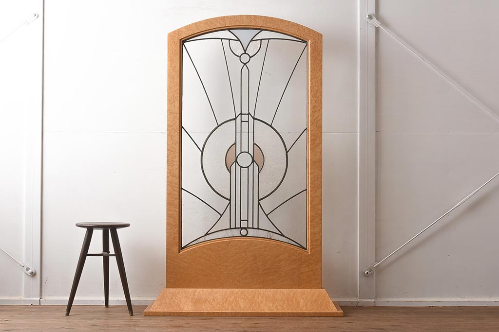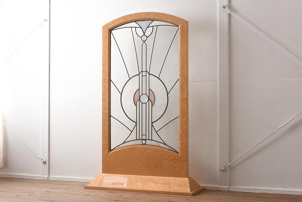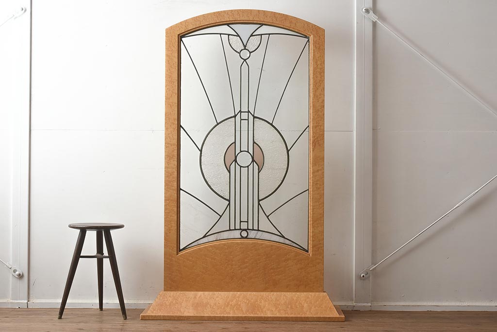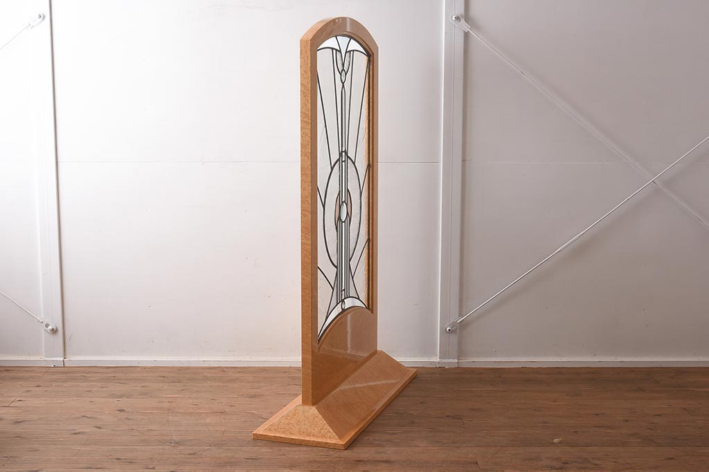 衝立・パーテーション> スタンド式衝立 > 在庫未使用品 IDC大塚家具 松創 バーズアイ(鳥眼目) メープル ステンドグラスの衝立(つい立て)(定価約93万円)(R-041642)