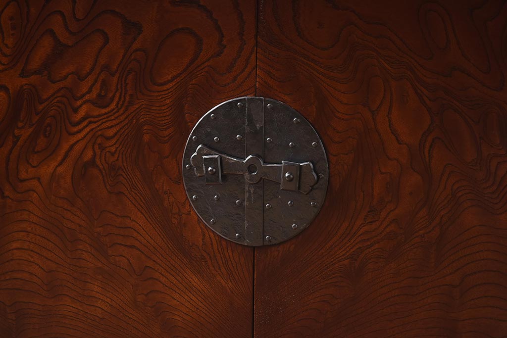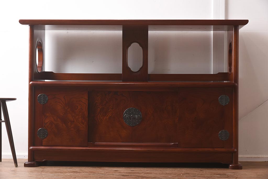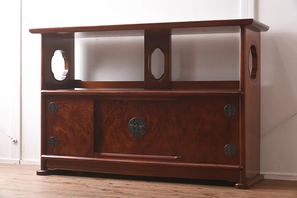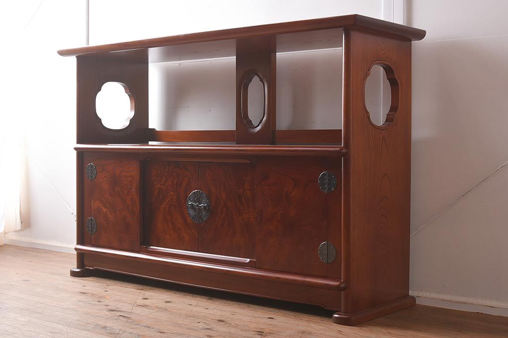 和箪笥 > 在庫未使用品 IDC大塚家具 藤沢木工 漆塗り 総ケヤキ 無垢材 飾り棚(飾棚、茶棚、収納棚、戸棚、サイドボード、サイドキャビネット)(定価約200万円)(R-041651)