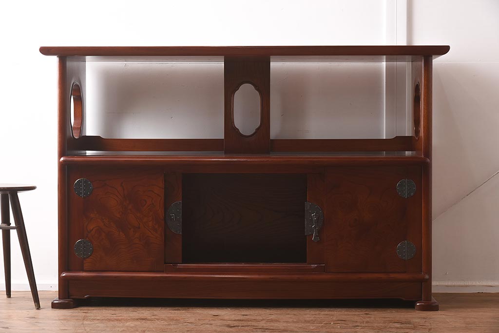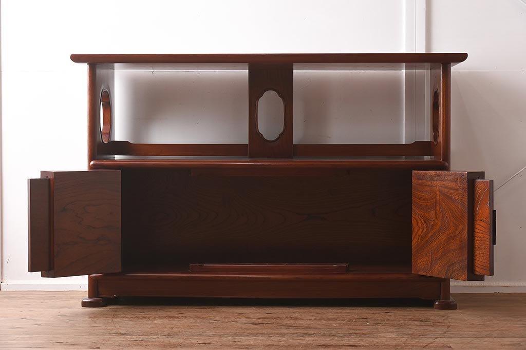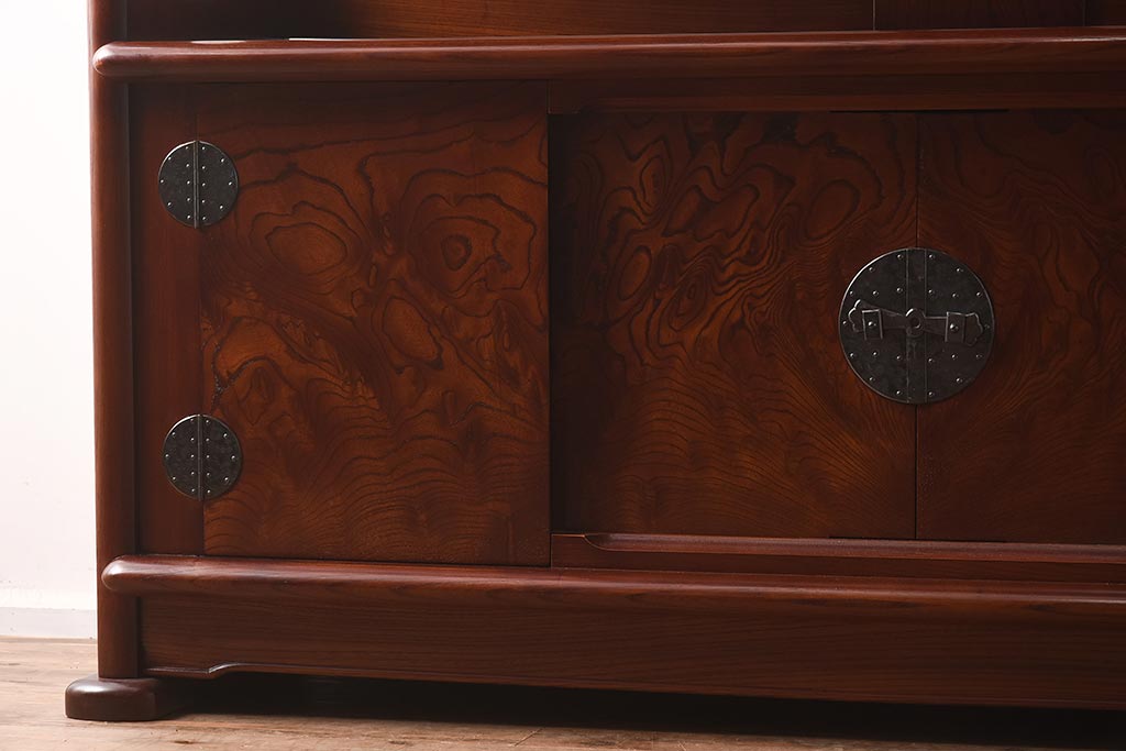 和箪笥> 茶箪笥・茶棚 > 在庫未使用品 IDC大塚家具 藤沢木工 漆塗り 総ケヤキ 無垢材 飾り棚(飾棚、茶棚、収納棚、戸棚、サイドボード、サイドキャビネット)(定価約200万円)(R-041651)
