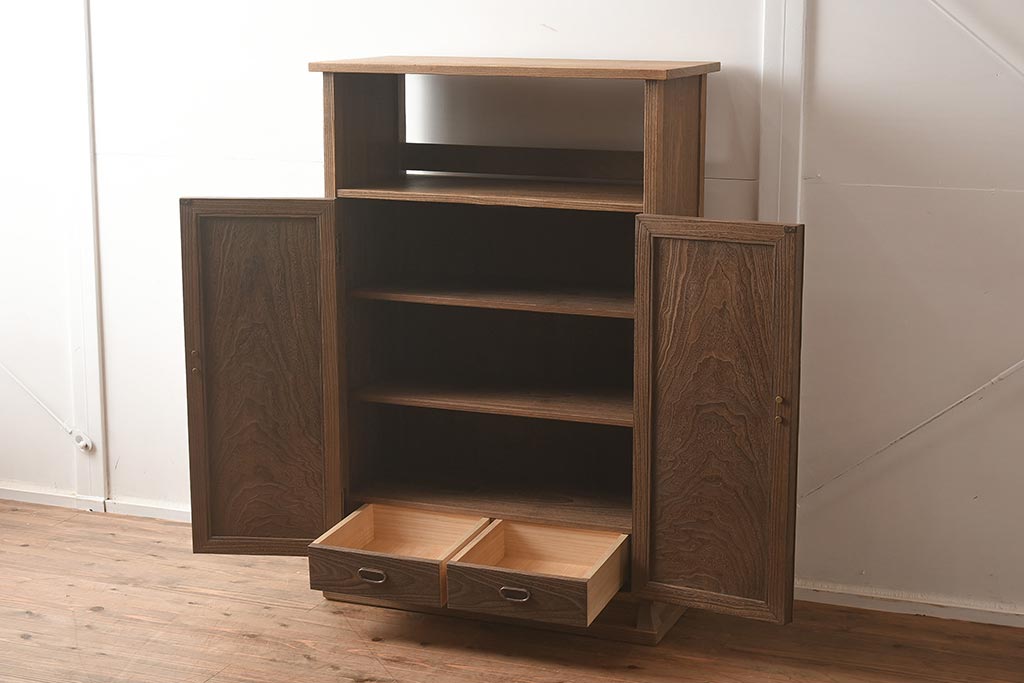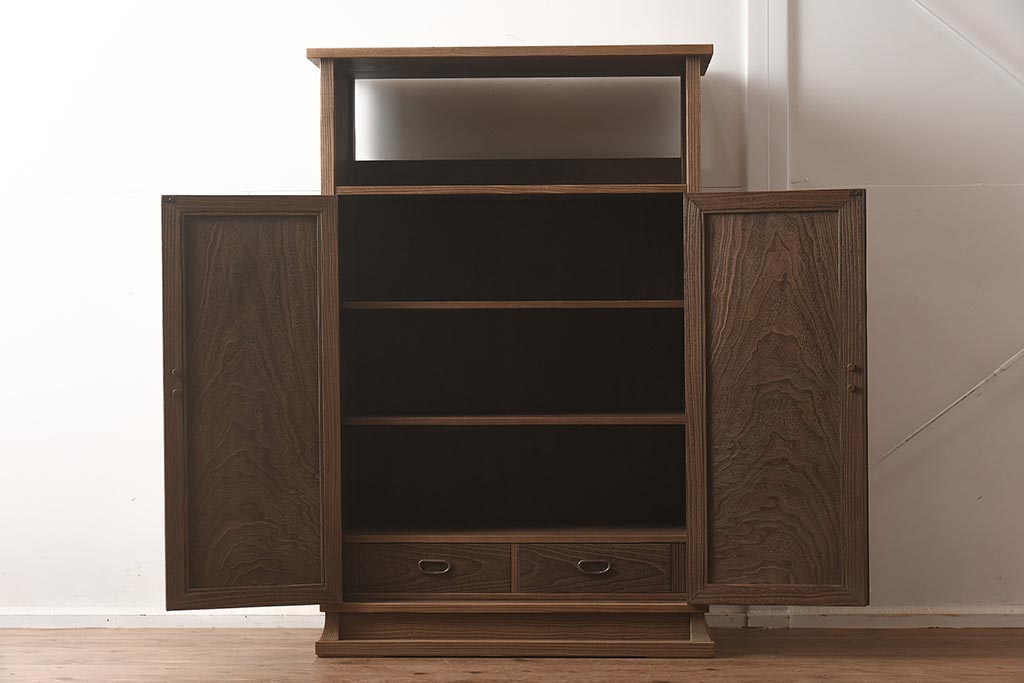 和箪笥> 茶箪笥・茶棚 > 在庫未使用品 IDC大塚家具 松創 焼桐 器局(茶道具、戸棚、キャビネット)(定価約147万円)(R-041713)
