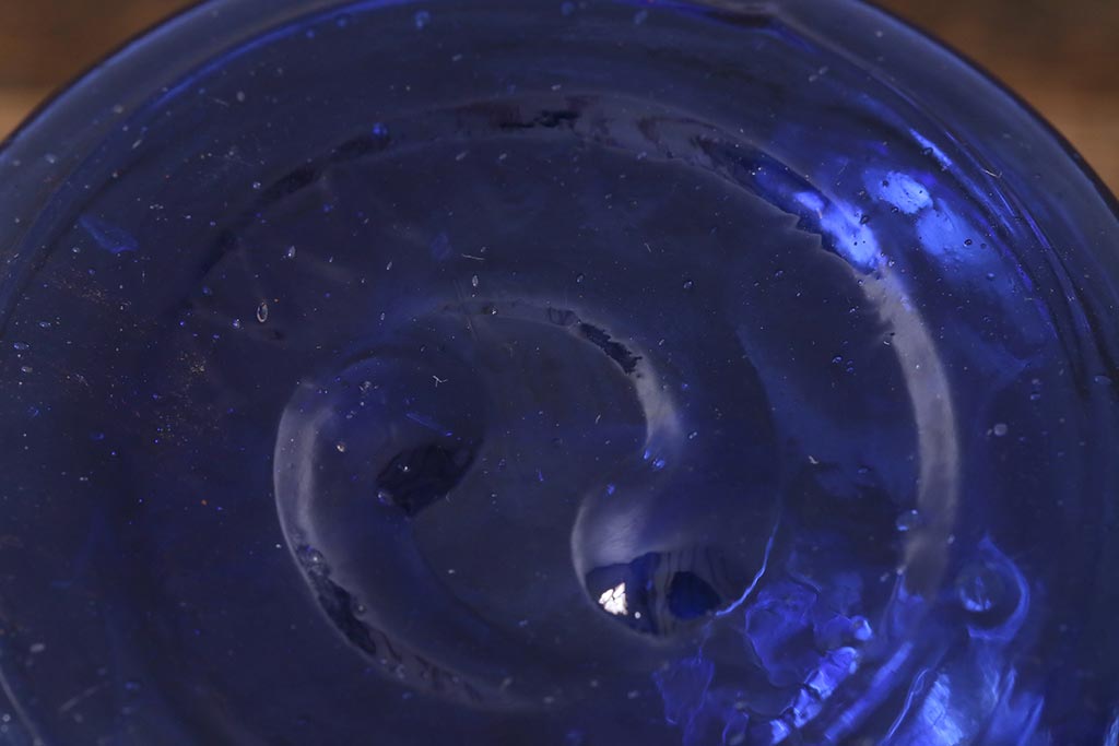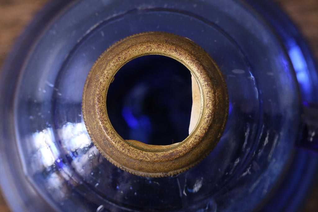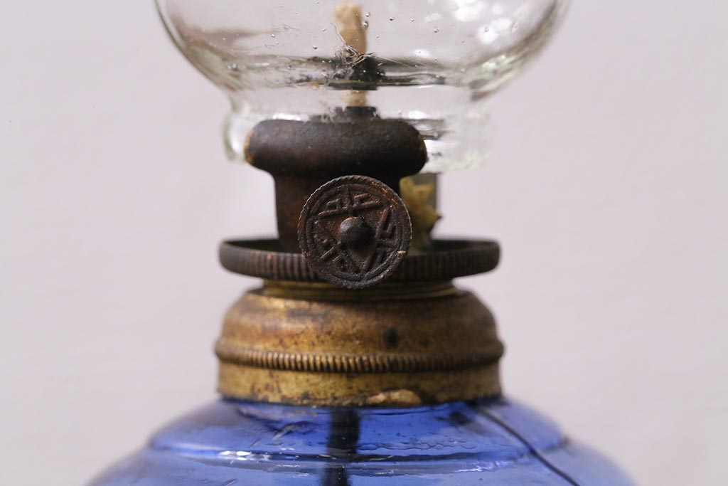 アンティーク雑貨 明治大正期 持ち手付き 青ガラスがおしゃれな豆ランプ(オイルランプ、和ガラス)(R-041471)