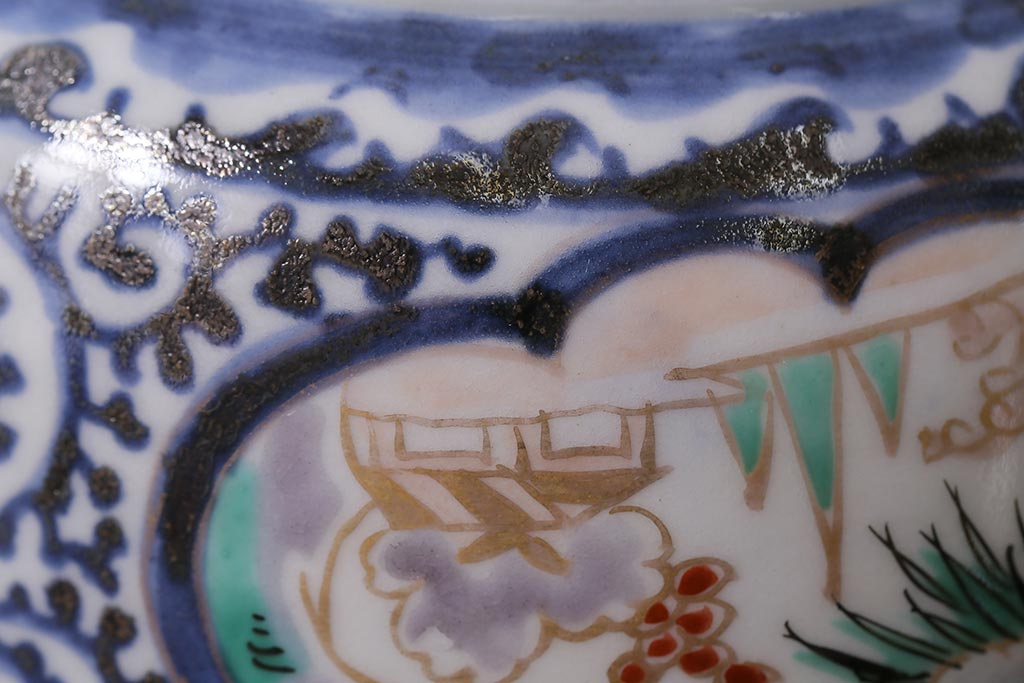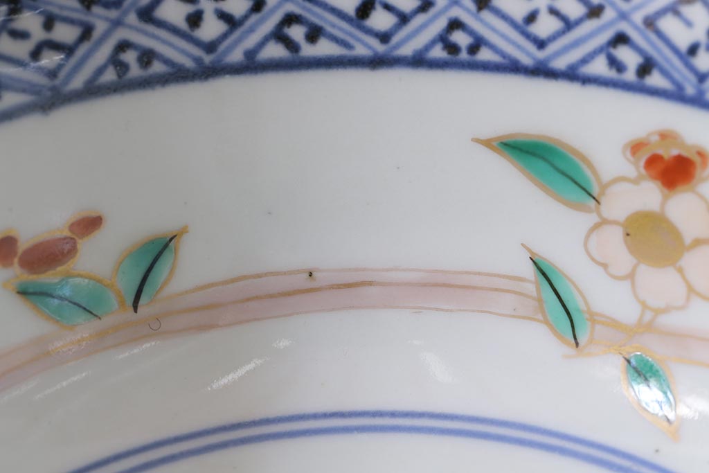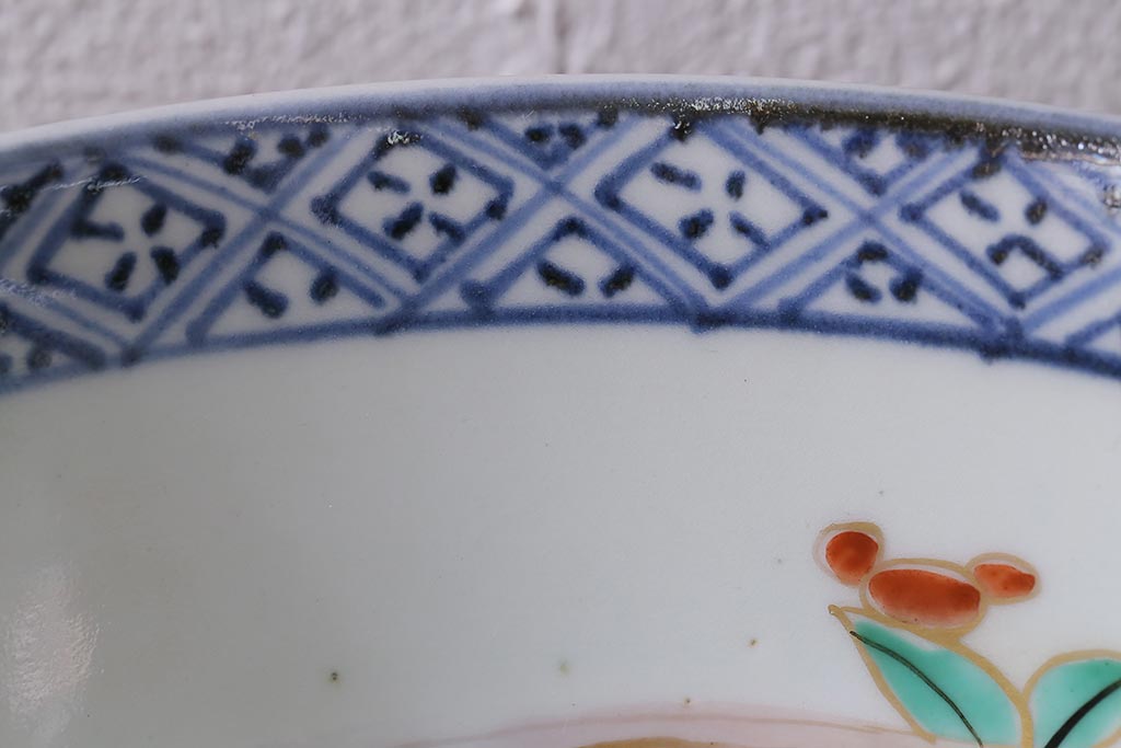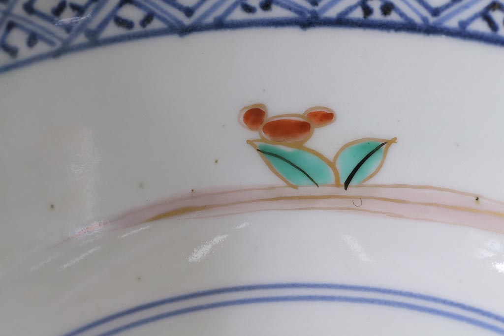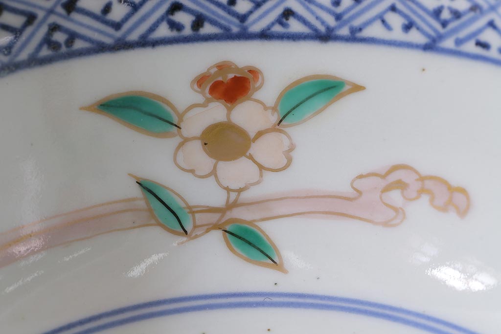 ラフジュ工房> 骨董・美術品> 骨董-陶磁器 > アンティーク雑貨 江戸期 古伊万里 蛸唐草窓絵深皿(色絵深鉢、和食器)(R-041332)