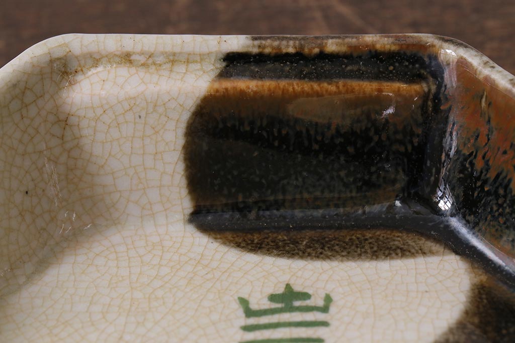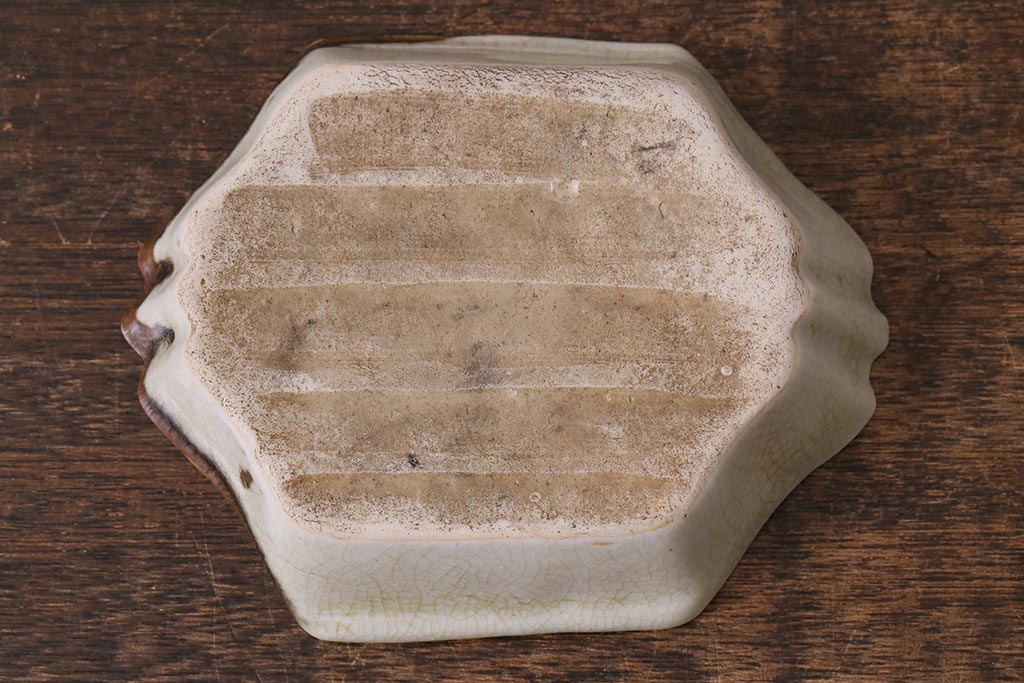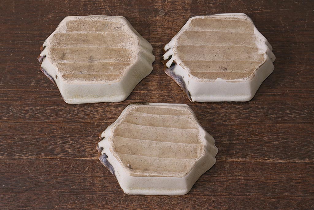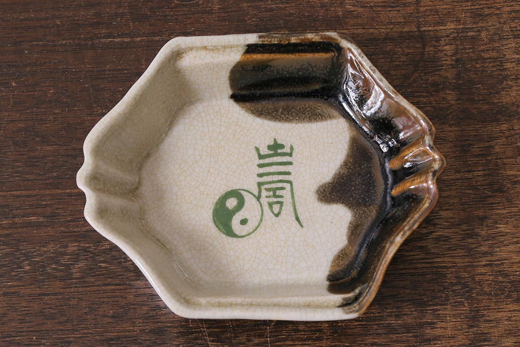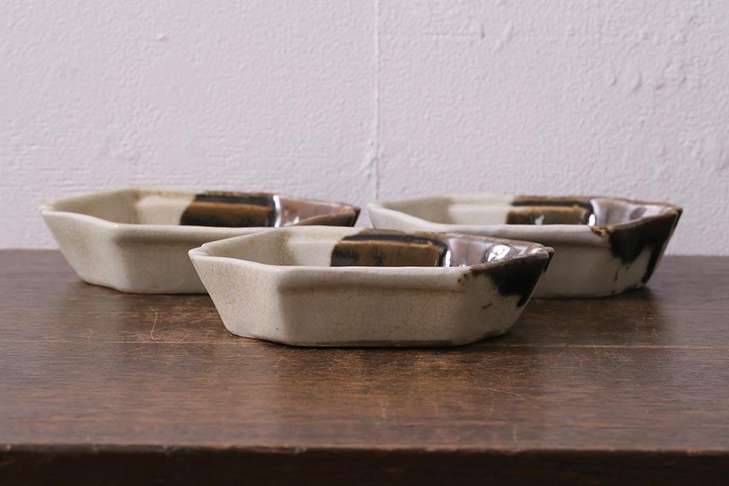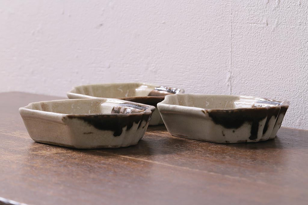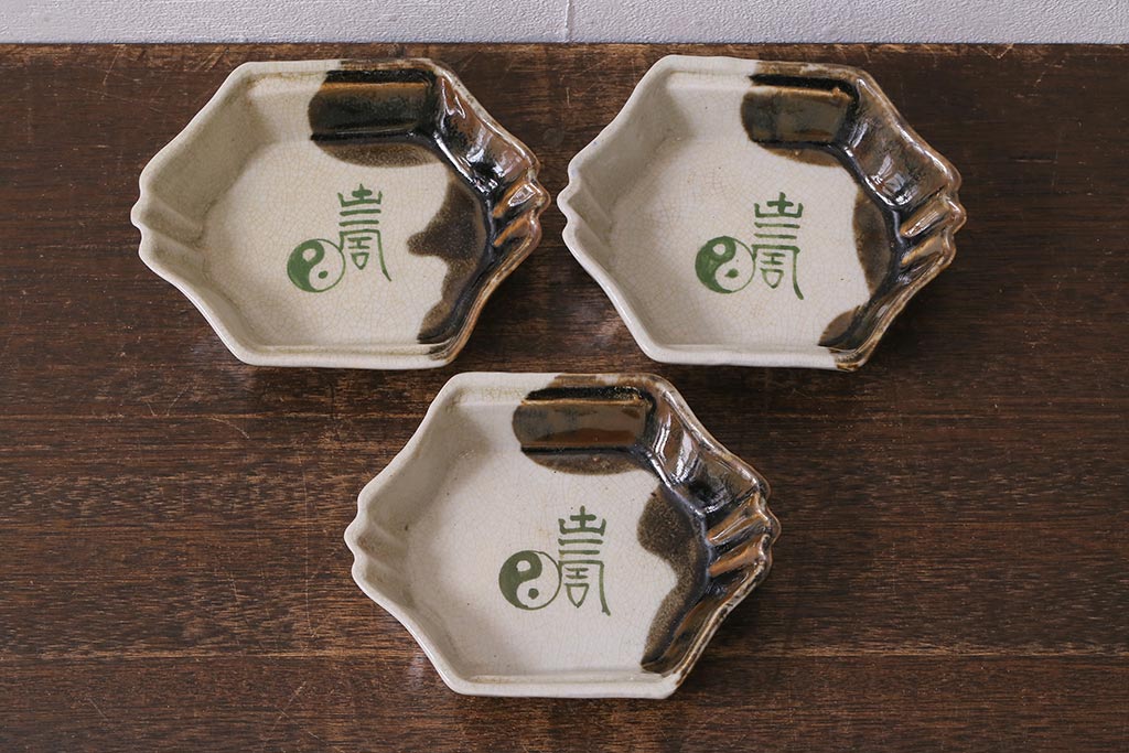 ラフジュ工房> 和食器・茶道具 > アンティーク雑貨 江戸明治期 時代物 古い美濃焼 大極図 変形皿3枚セット(和食器)(R-041304)