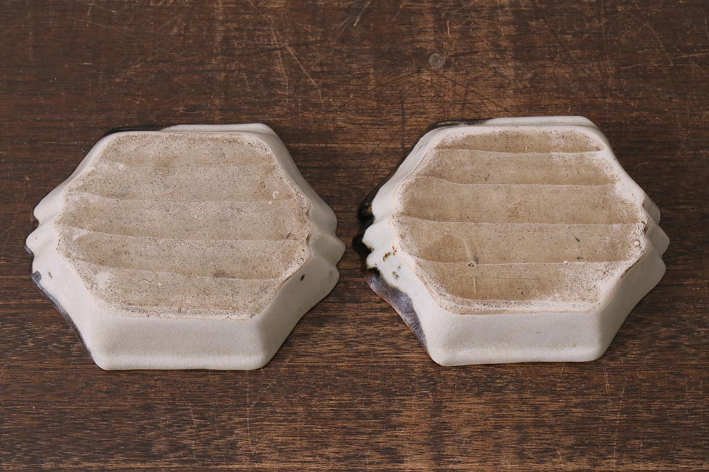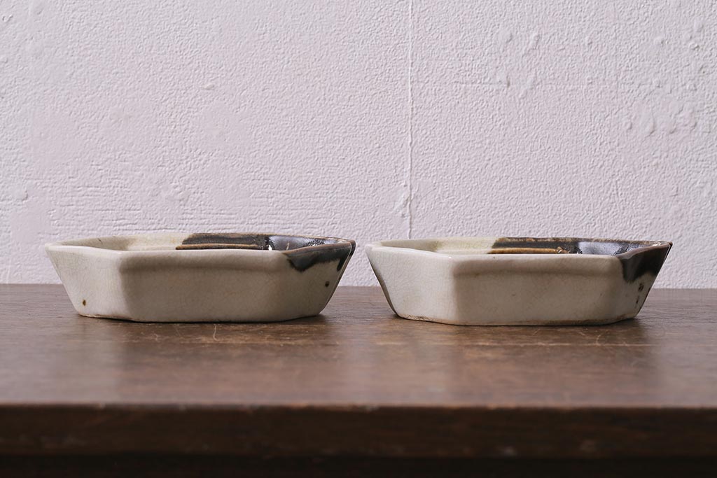 ラフジュ工房> 和食器・茶道具> 皿 > アンティーク雑貨 江戸明治期 時代物 古い美濃焼 大極図 変形皿2枚セット(和食器)(R-041305)