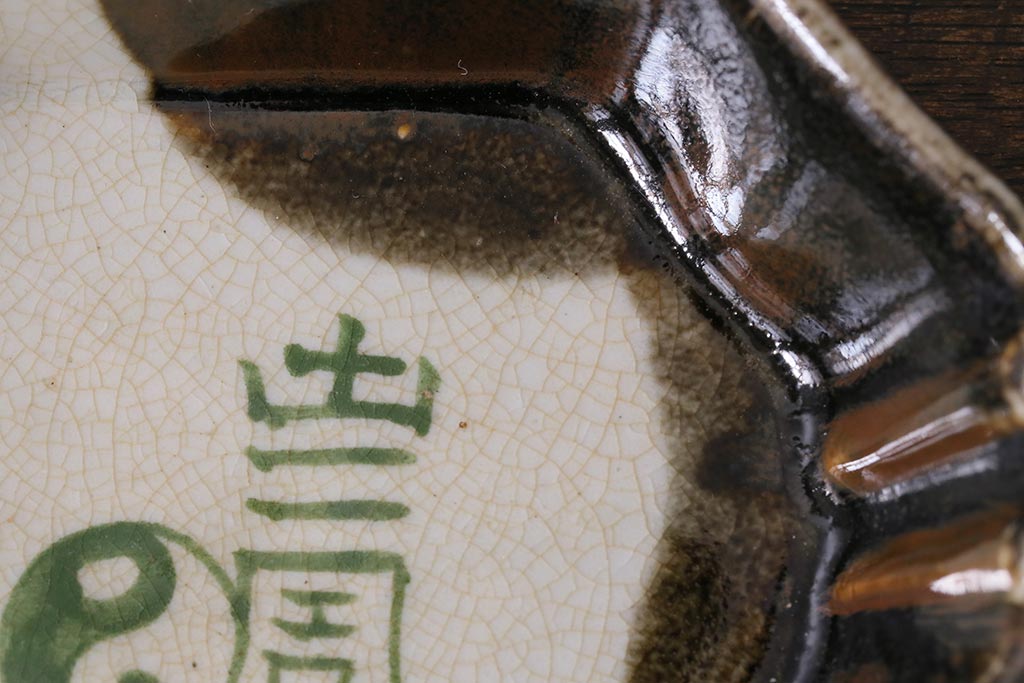 ラフジュ工房> 伝統工芸品> 美濃焼 > アンティーク雑貨 江戸明治期 時代物 古い美濃焼 大極図 変形皿2枚セット(和食器)(R-041305)