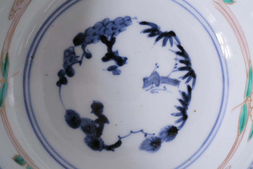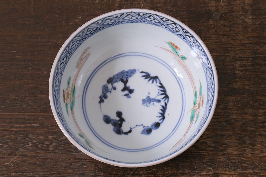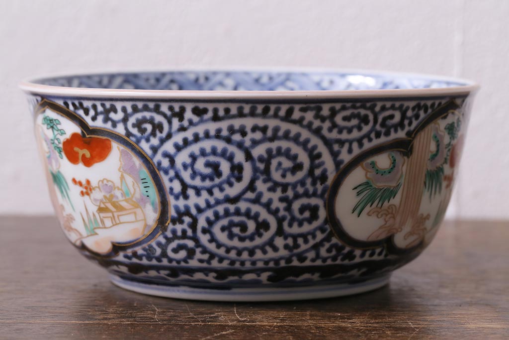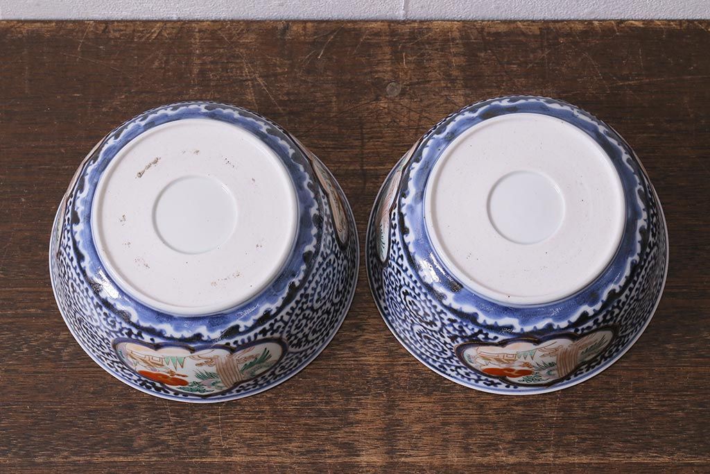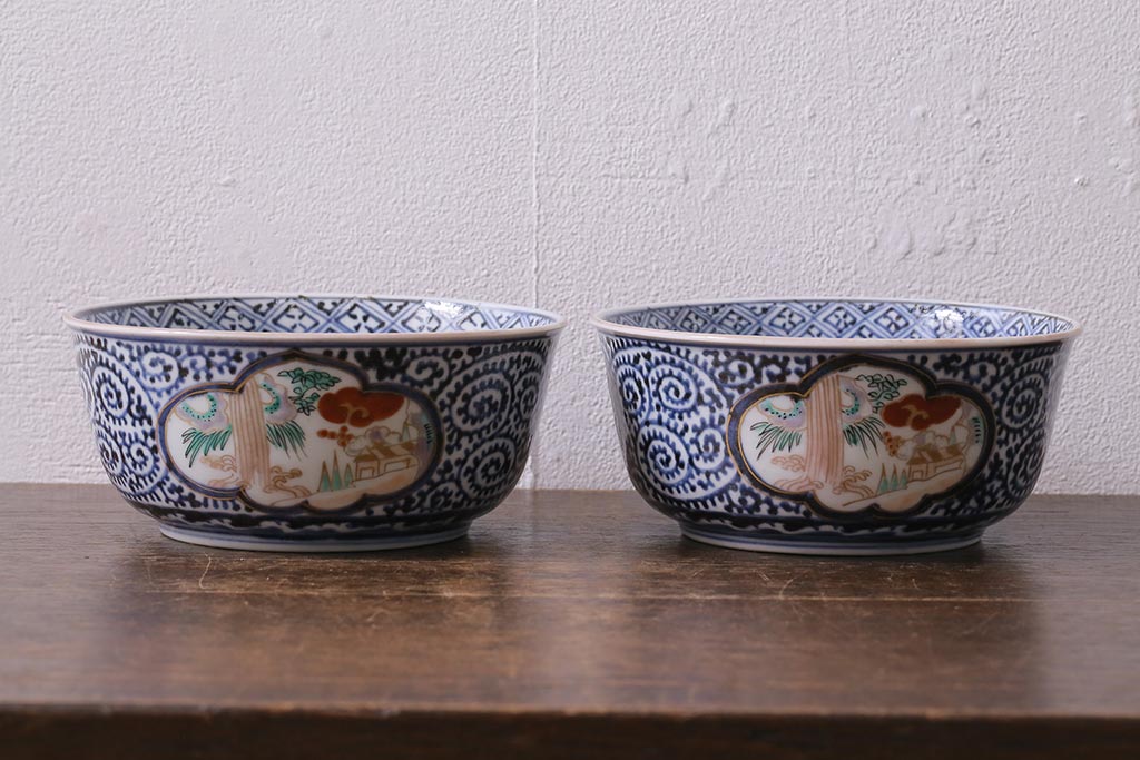 ラフジュ工房> 和食器・茶道具> 鉢 > アンティーク雑貨 江戸期 古伊万里 蛸唐草窓絵深皿2枚セット(色絵深鉢、和食器)(R-041309)