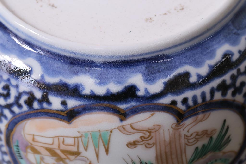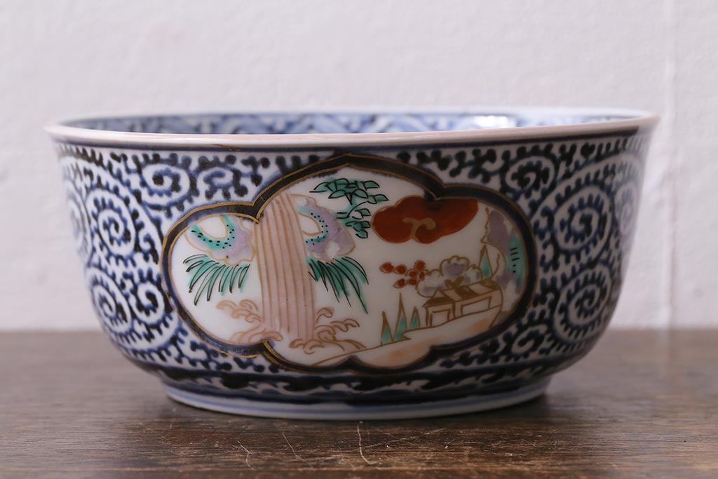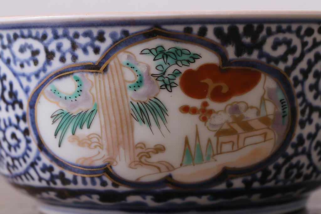 ラフジュ工房> 骨董・美術品> 骨董-陶磁器 > アンティーク雑貨 江戸期 古伊万里 蛸唐草窓絵深皿2枚セット(色絵深鉢、和食器)(R-041309)