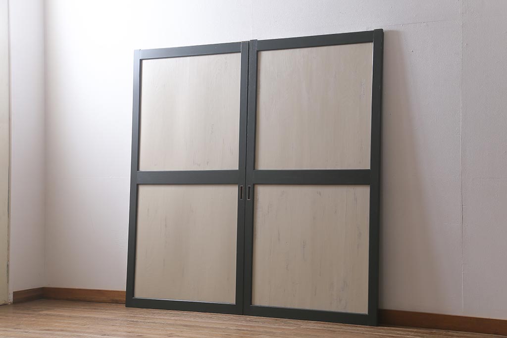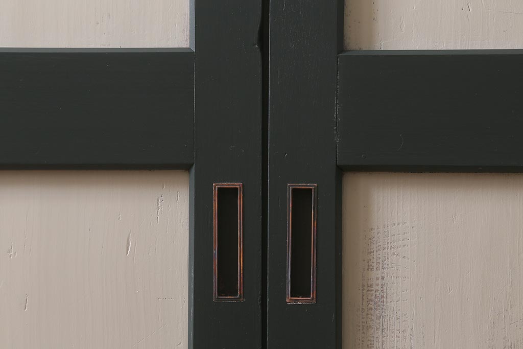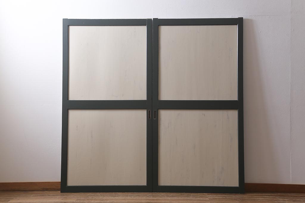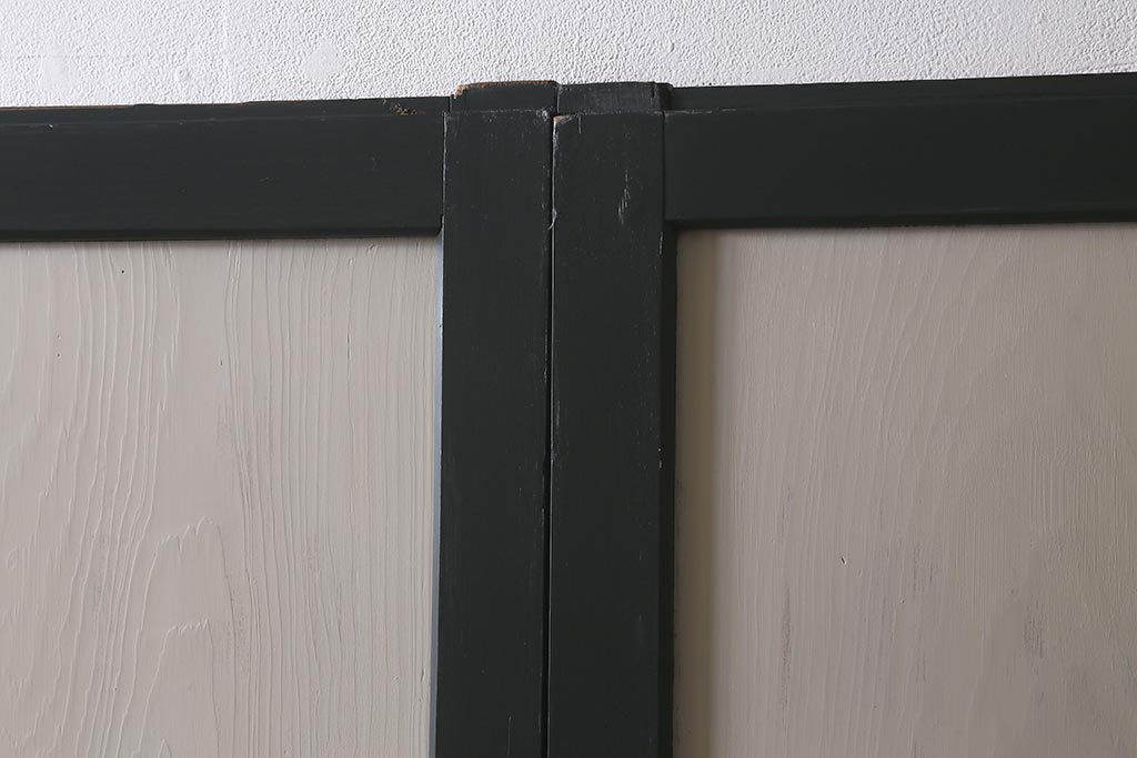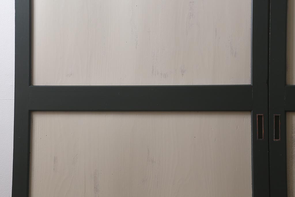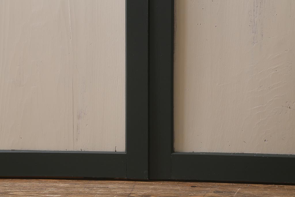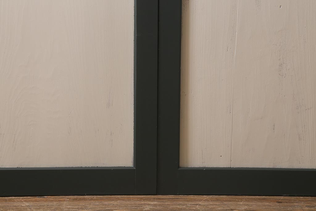 アンティーク建具 明治大正期 杉無垢材 ペイント ツートンカラーのシックな板戸2枚セット(引き戸、建具)(R-041647)