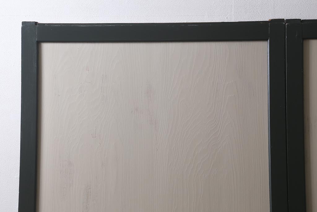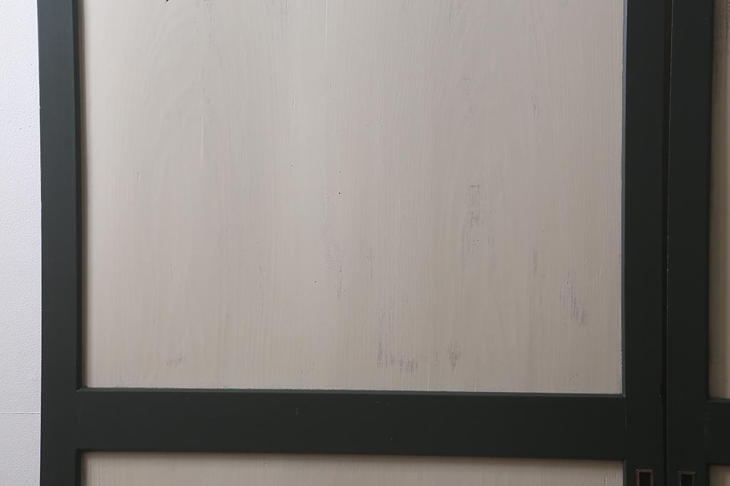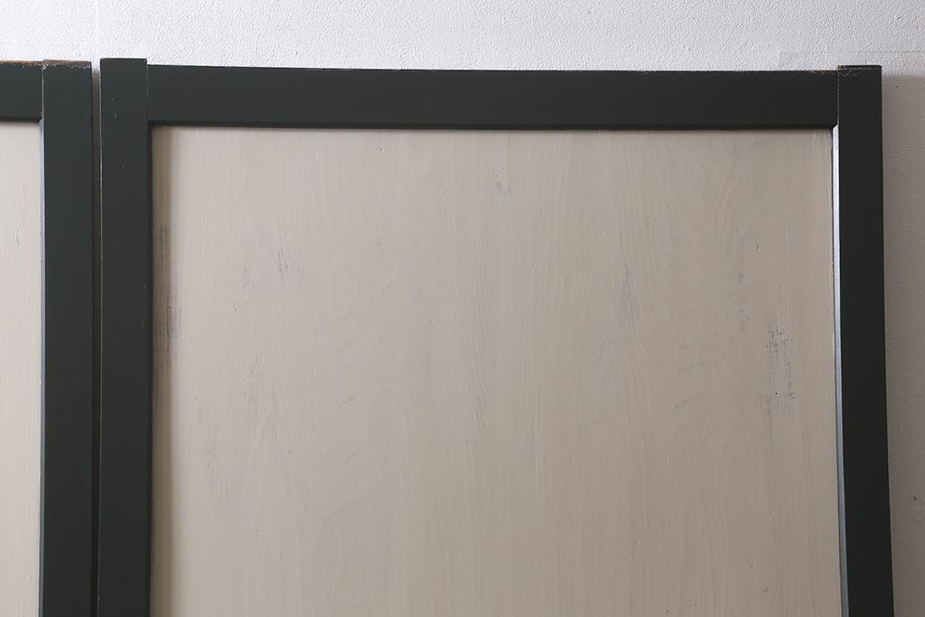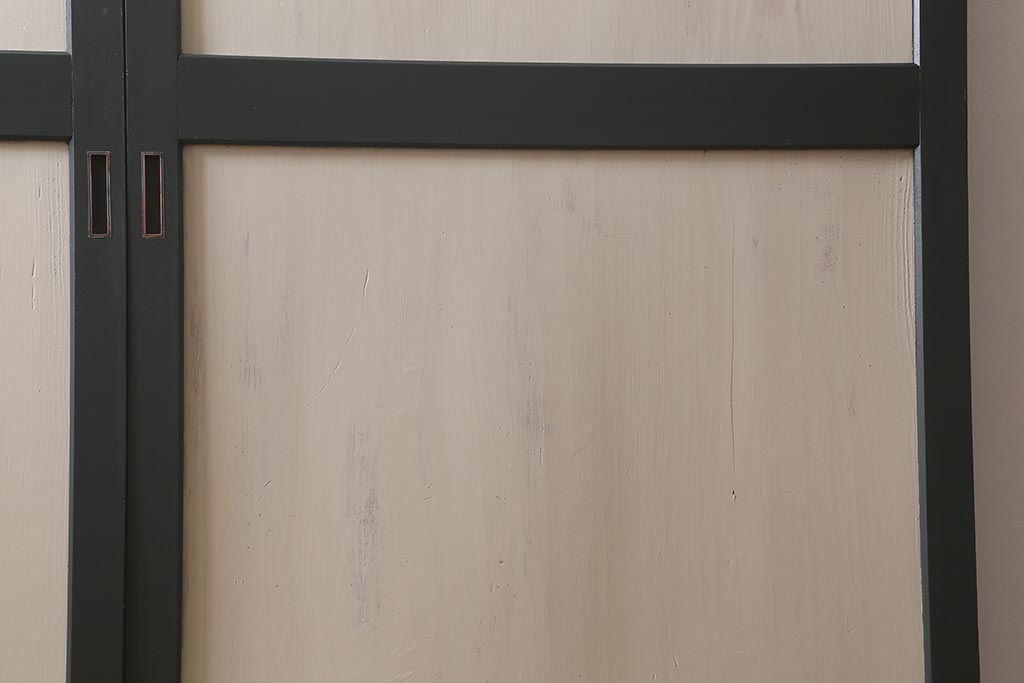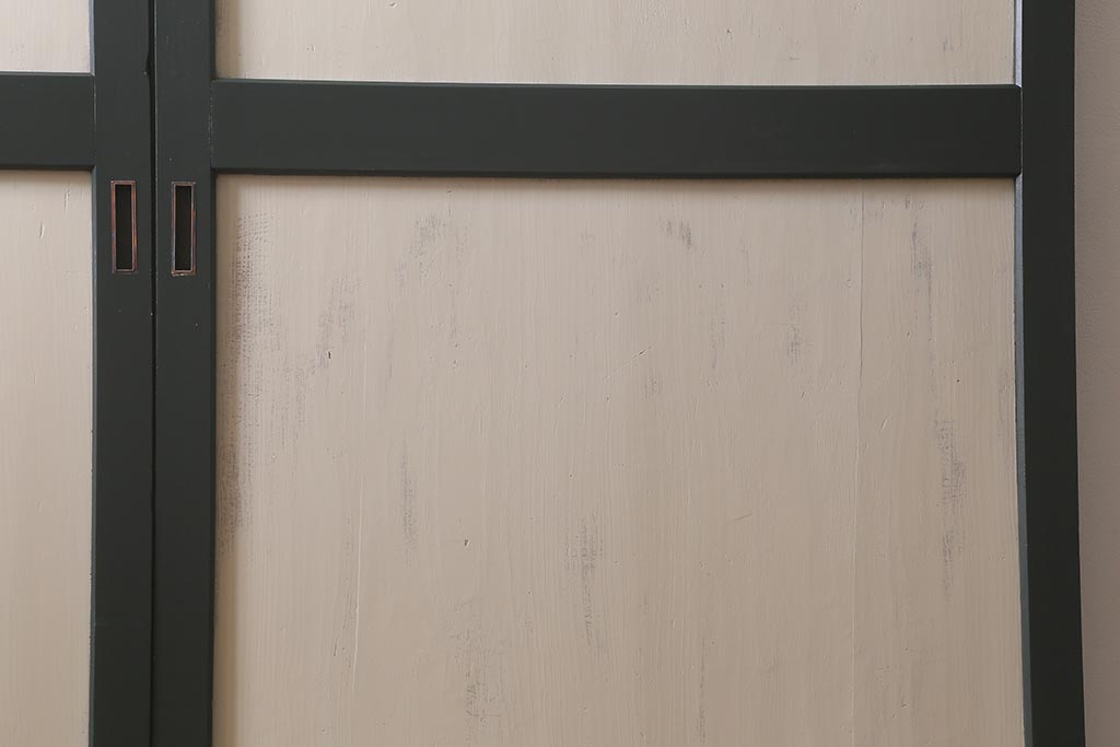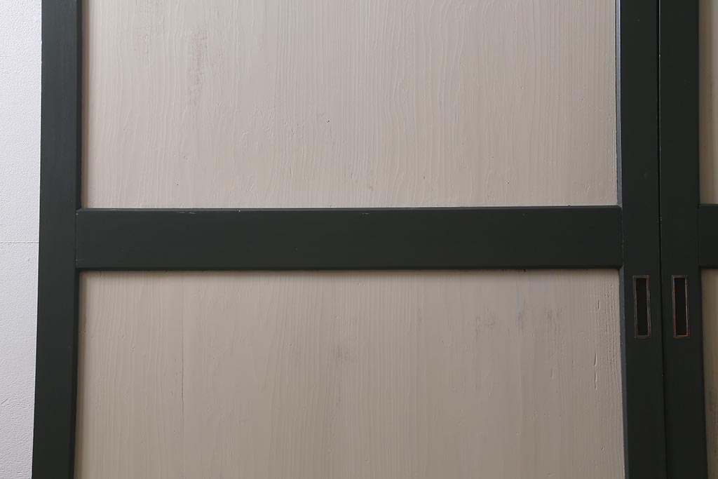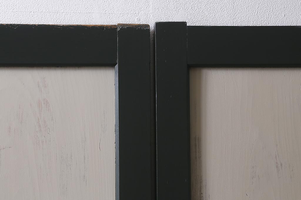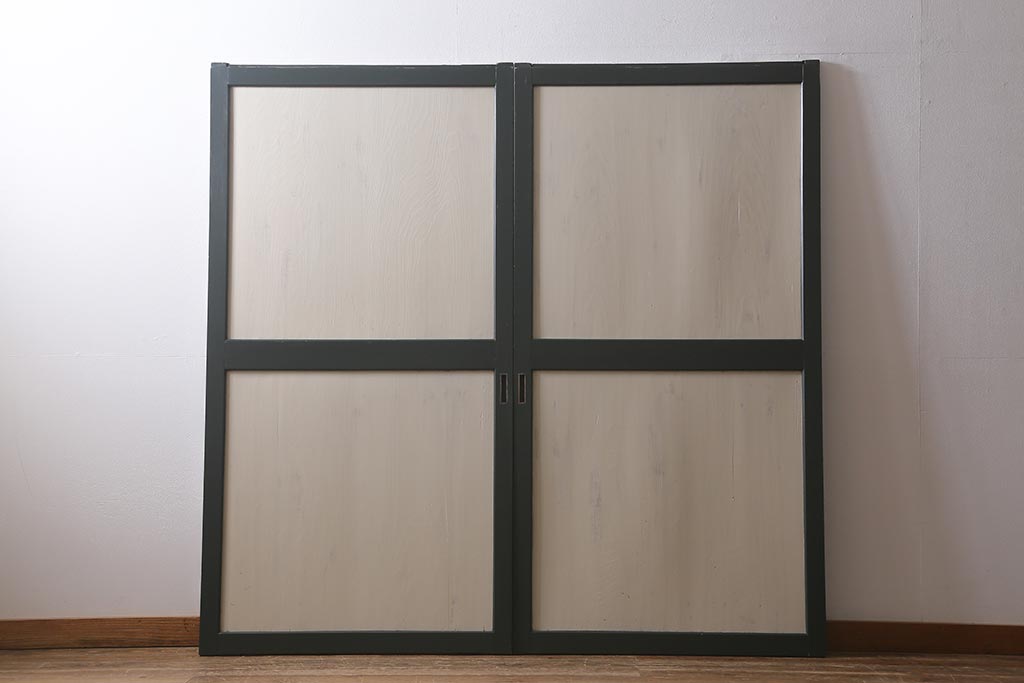 アンティーク建具 明治大正期 杉無垢材 ペイント ツートンカラーのシックな板戸2枚セット(引き戸、建具)(R-041647)
