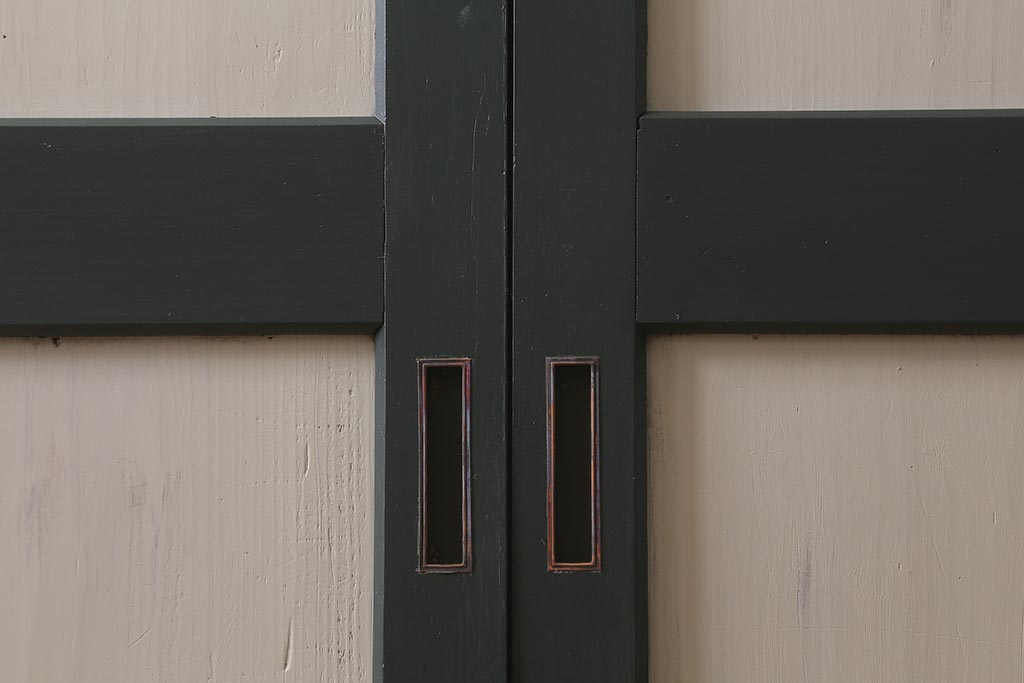 ラフジュ工房> ドア・建具> 引き戸 > アンティーク建具 明治大正期 杉無垢材 ペイント ツートンカラーのシックな板戸2枚セット(引き戸、建具)(R-041647)
