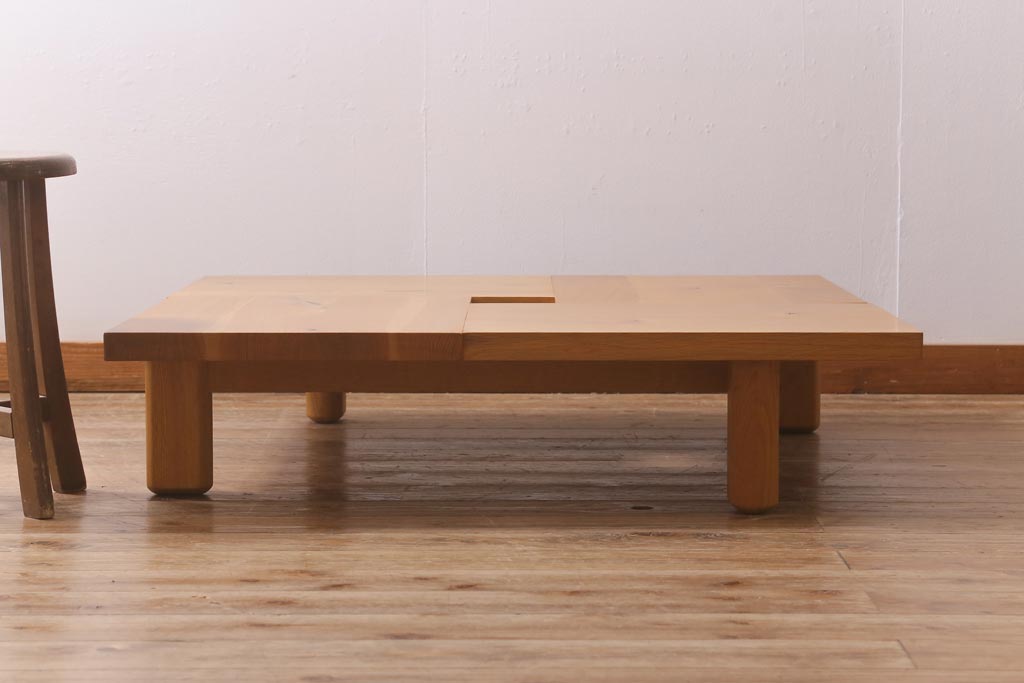 テーブル> センターテーブル・ローテーブル > 中古 飛騨産業 キツツキ 森のことば SN150T 正方形フロアテーブル(100角)(センターテーブル、ローテーブル、座卓、子供机)(R-041754)