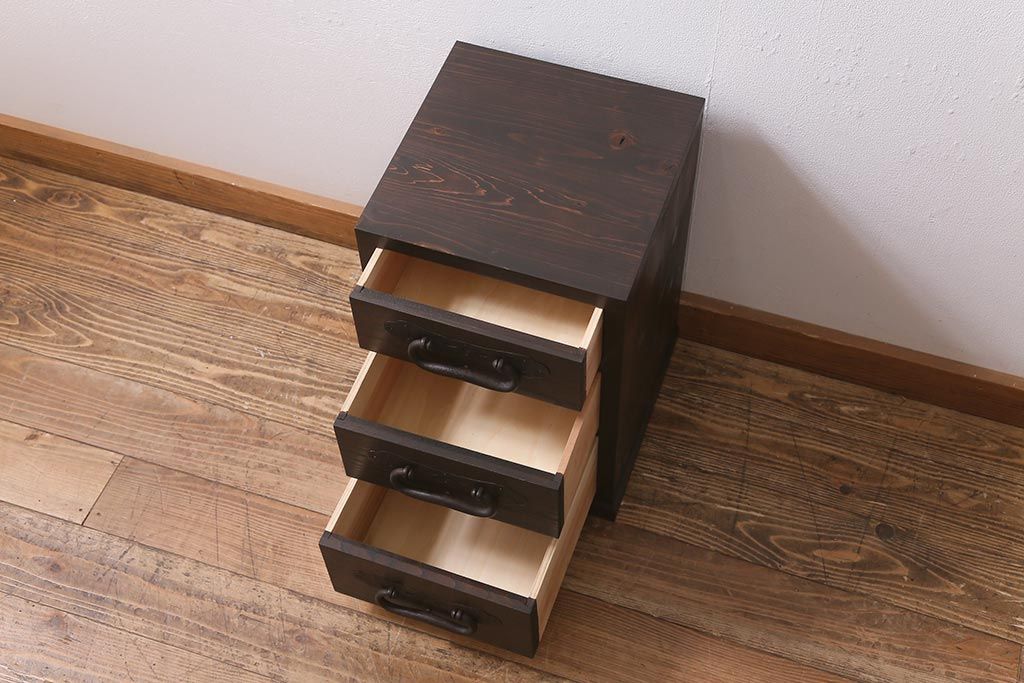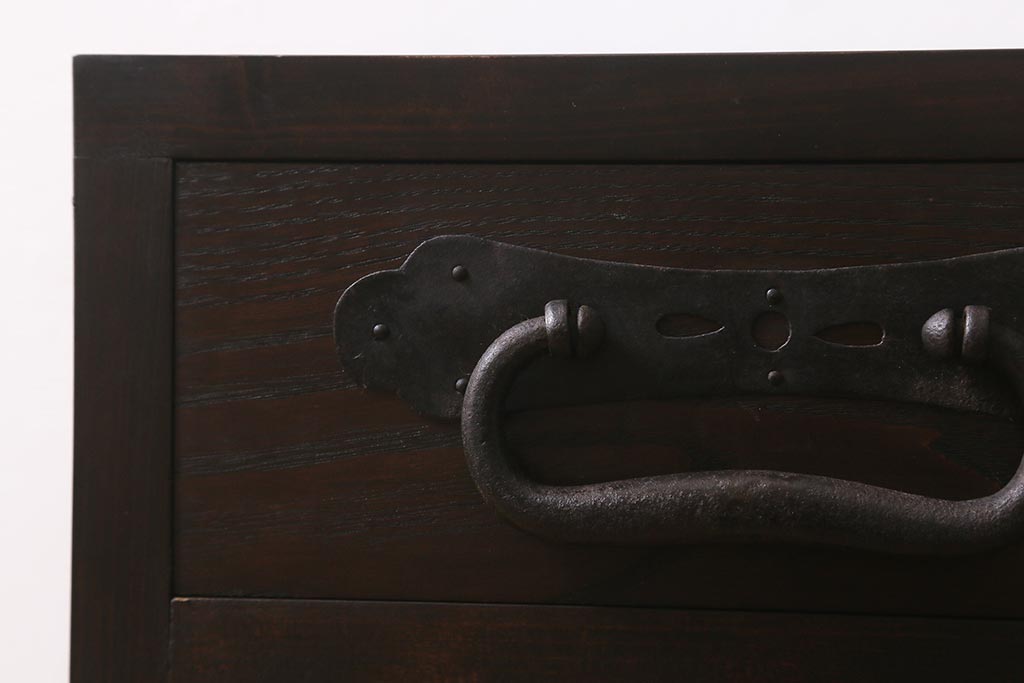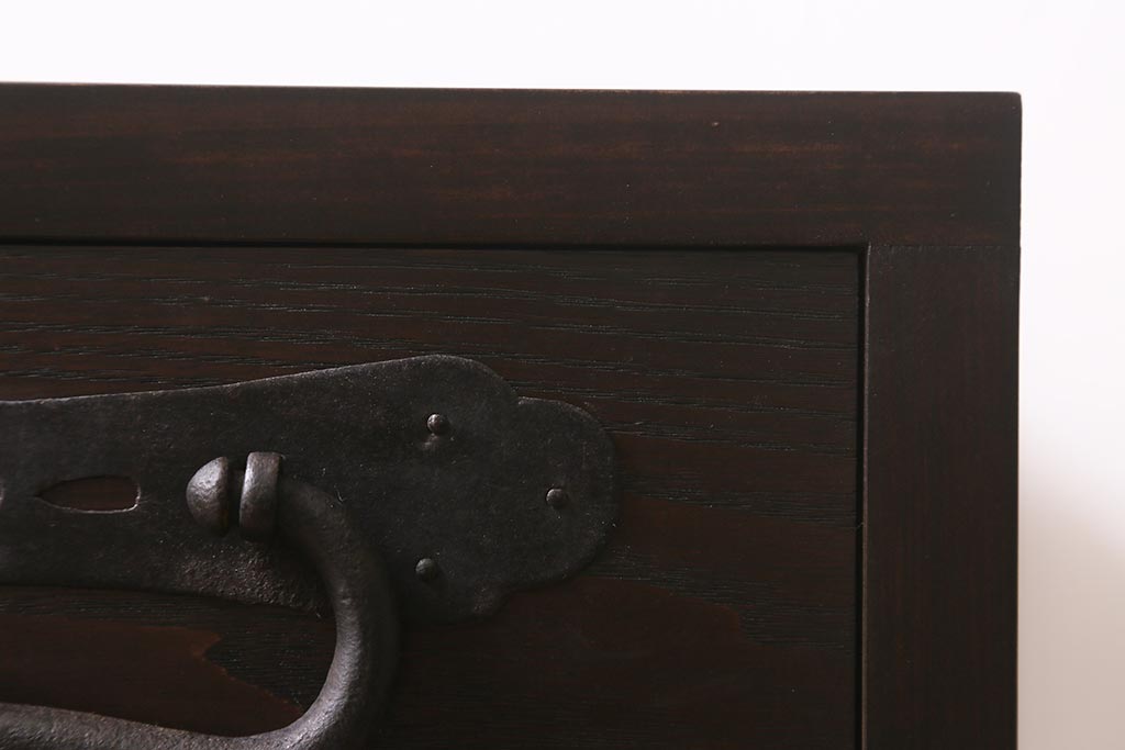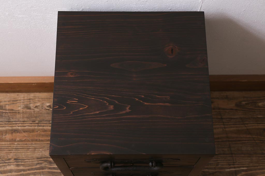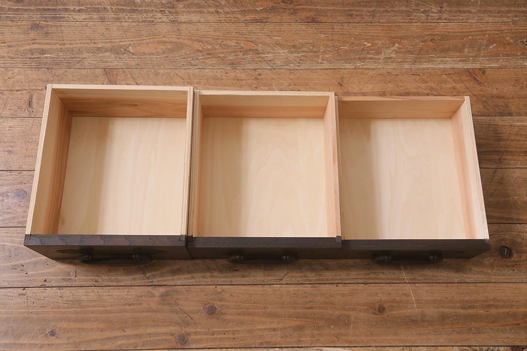 ラフジュ工房オリジナル 古金具リメイク 前板栗材 ヒノキ材 味わい深い金具が魅力の小引き出し(小物収納)(R-041906)