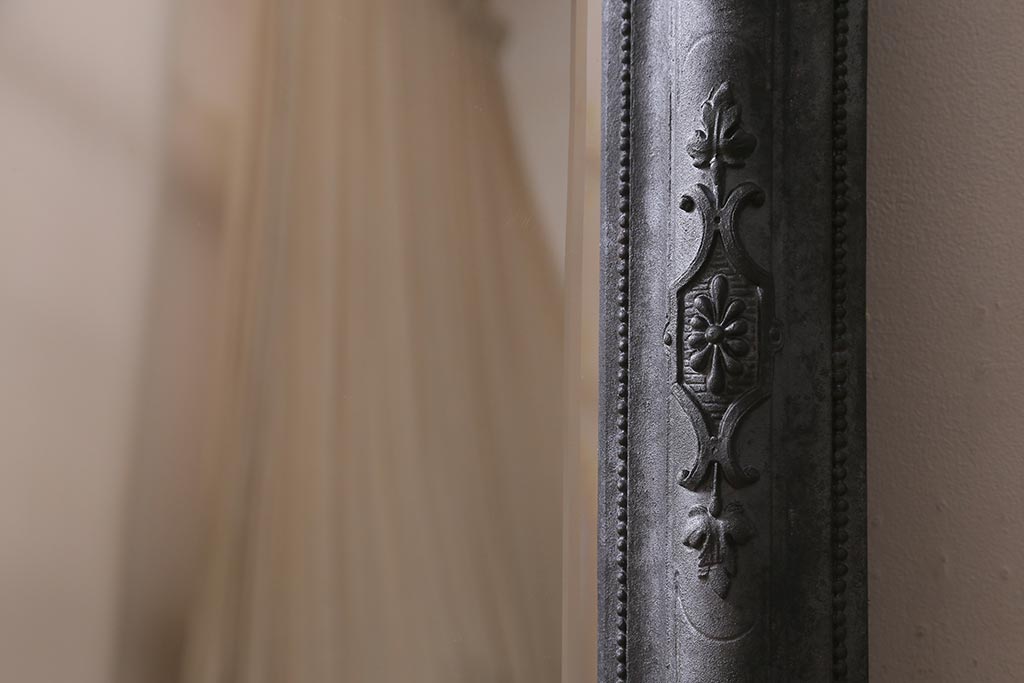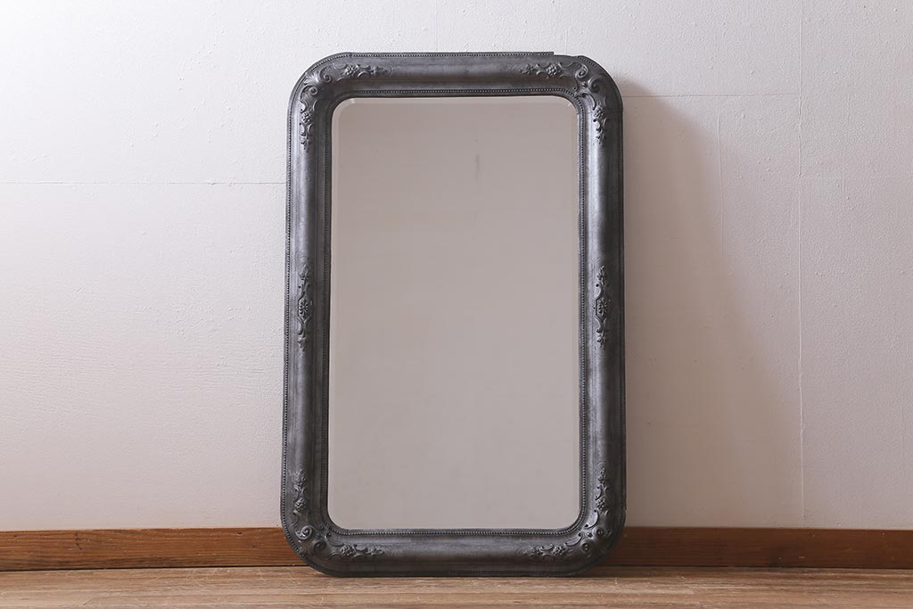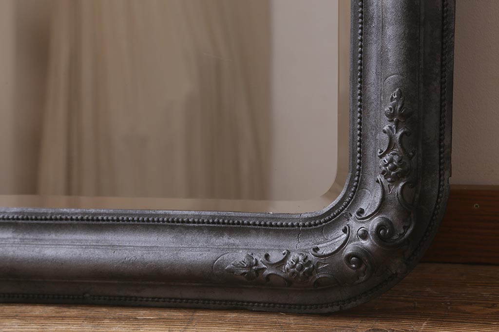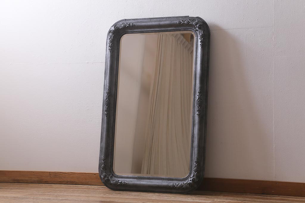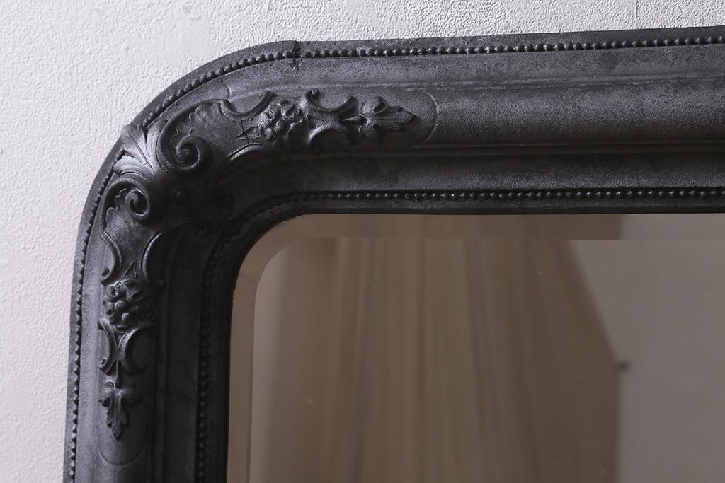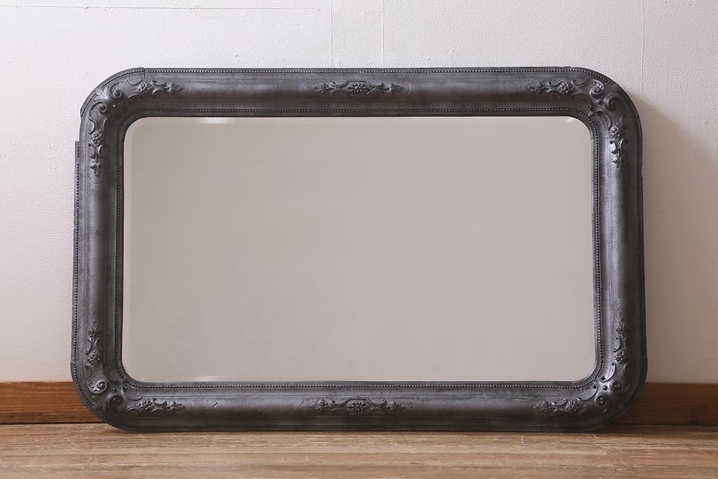 鏡 > アンティーク雑貨 アイアンペイントがおしゃれなフランスアンティークの木製ミラー(鏡)(R-041637)
