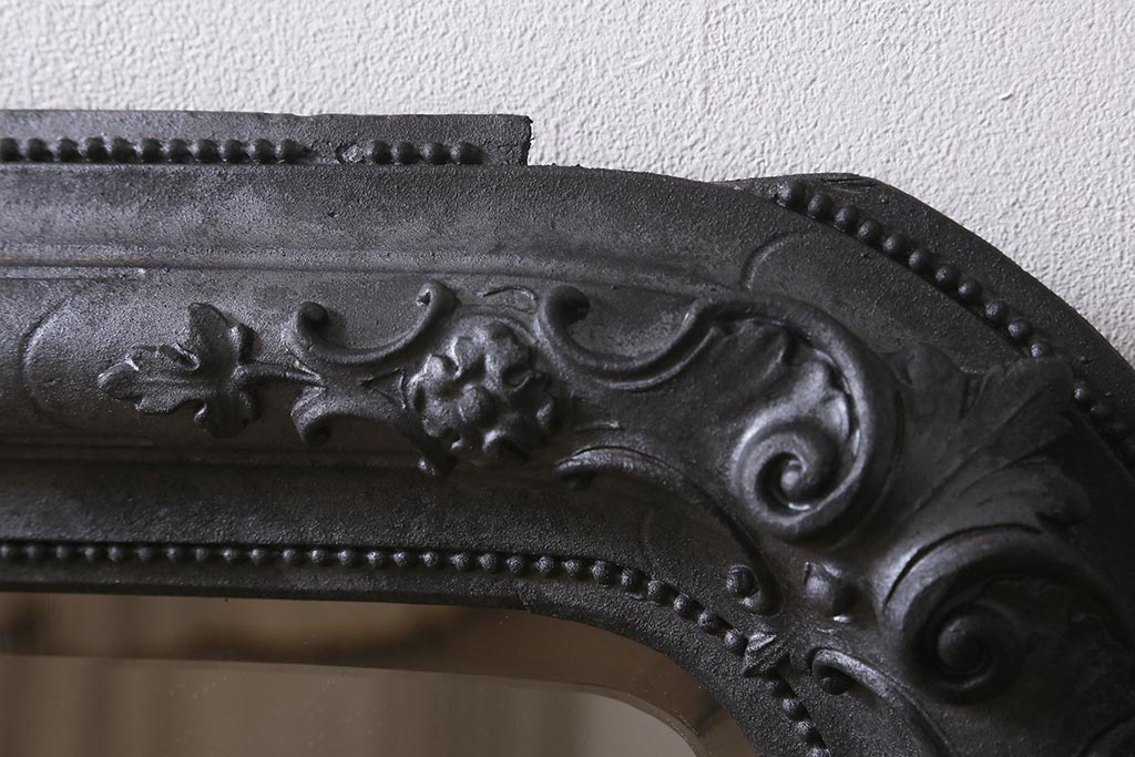 アンティーク雑貨 アイアンペイントがおしゃれなフランスアンティークの木製ミラー(鏡)(R-041637)