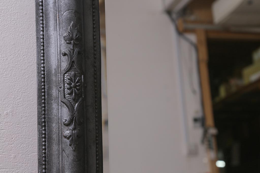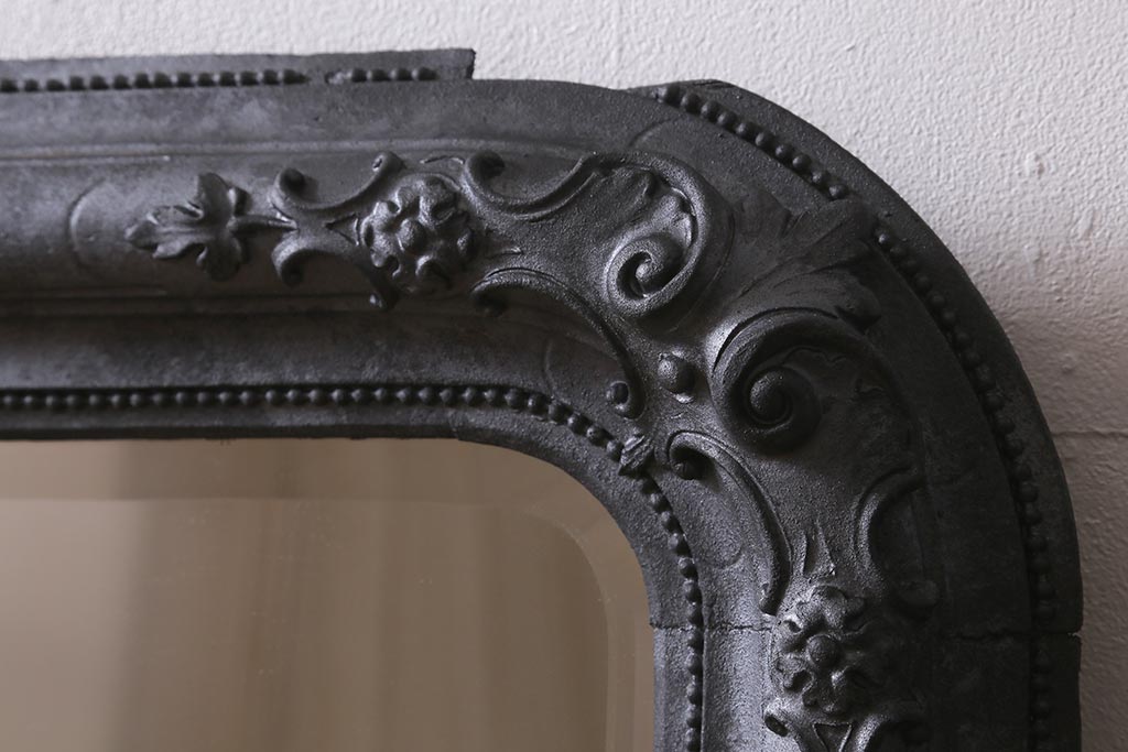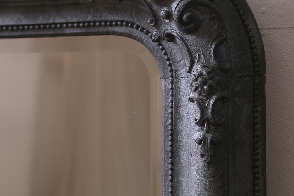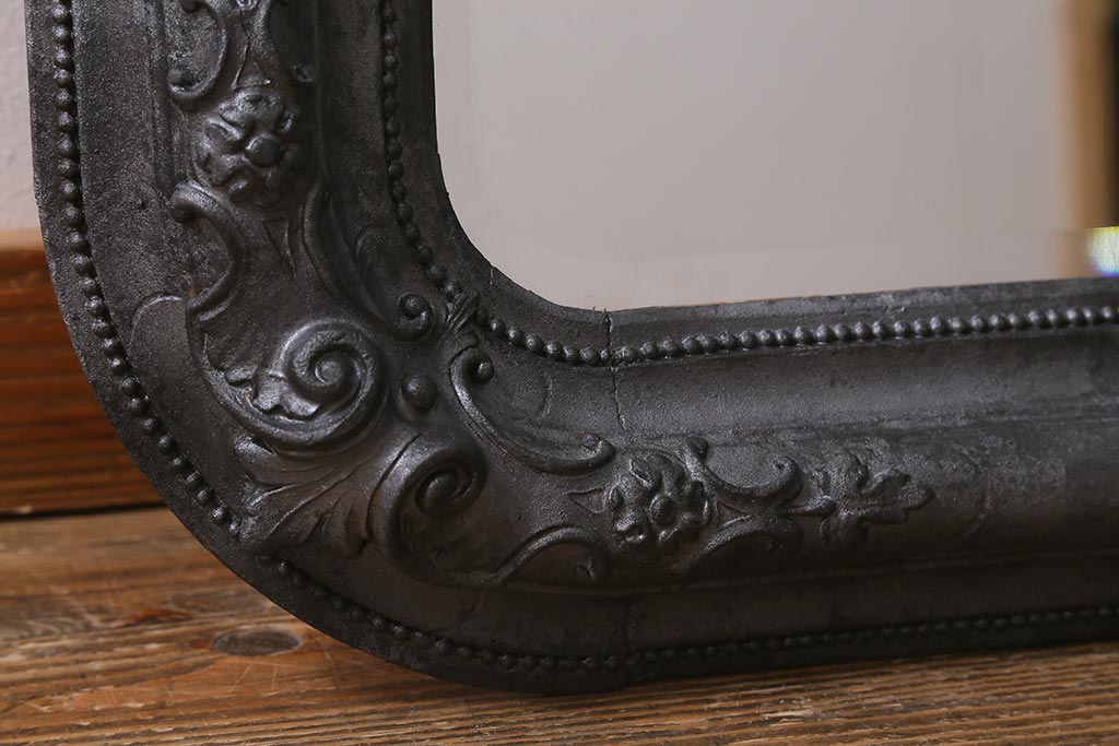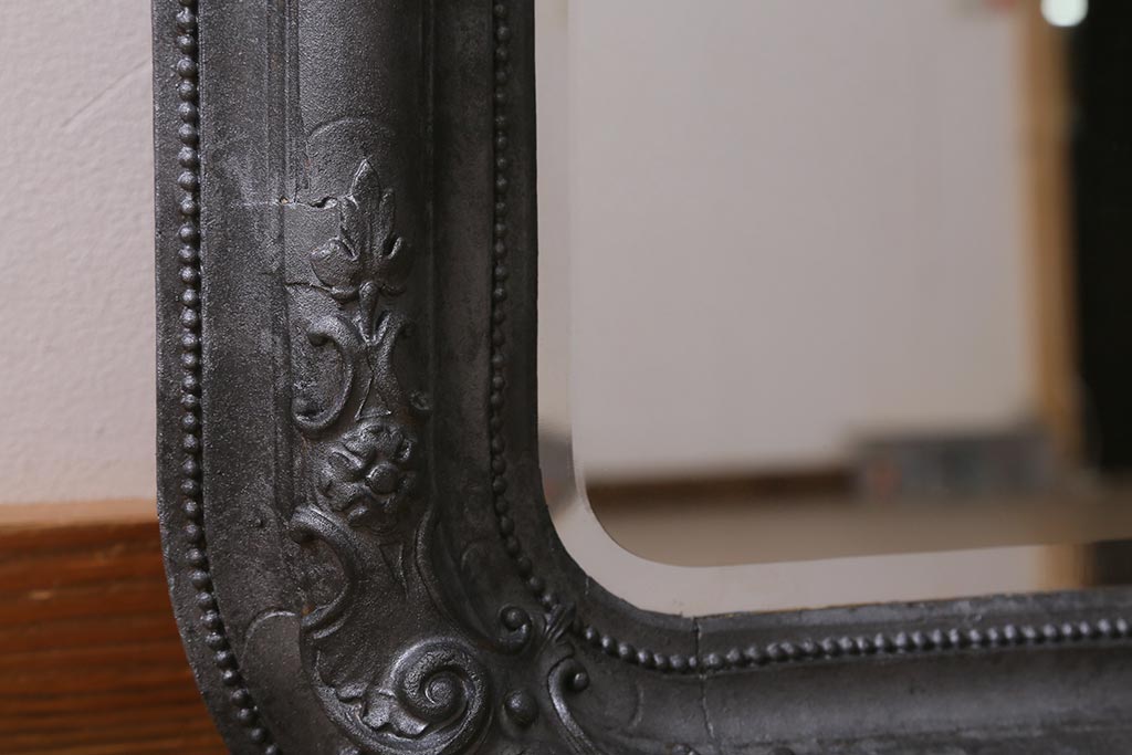 アンティーク雑貨 アイアンペイントがおしゃれなフランスアンティークの木製ミラー(鏡)(R-041637)です。
