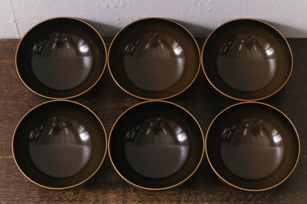 アンティーク雑貨 大正昭和初期 花蝶図 沈金蒔絵木製椀6客セット(お椀、漆器)(R-041617)