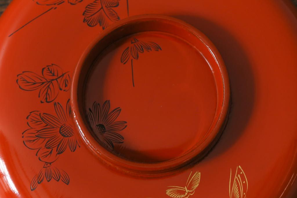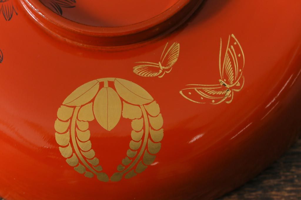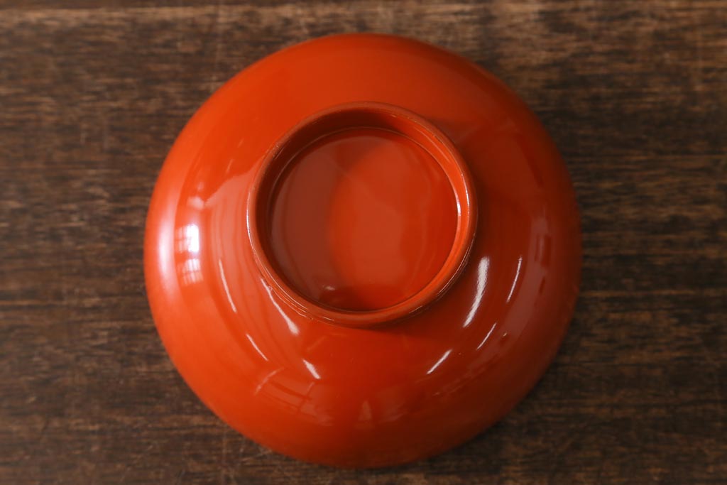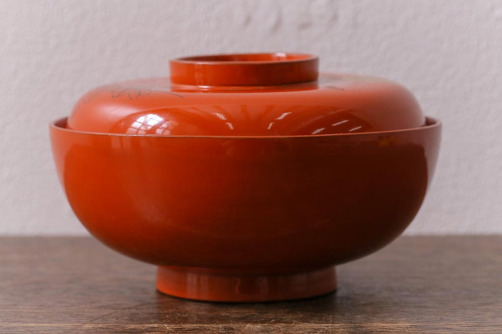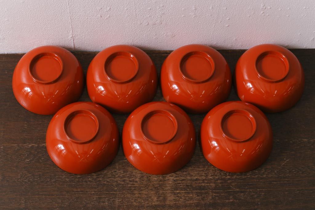 ラフジュ工房> 和食器・茶道具> お椀・茶碗 > アンティーク雑貨 大正昭和初期 花蝶図 上がり藤 竹に雀 朱塗り 沈金蒔絵木製椀7客セット(お椀、漆器)(R-041619)