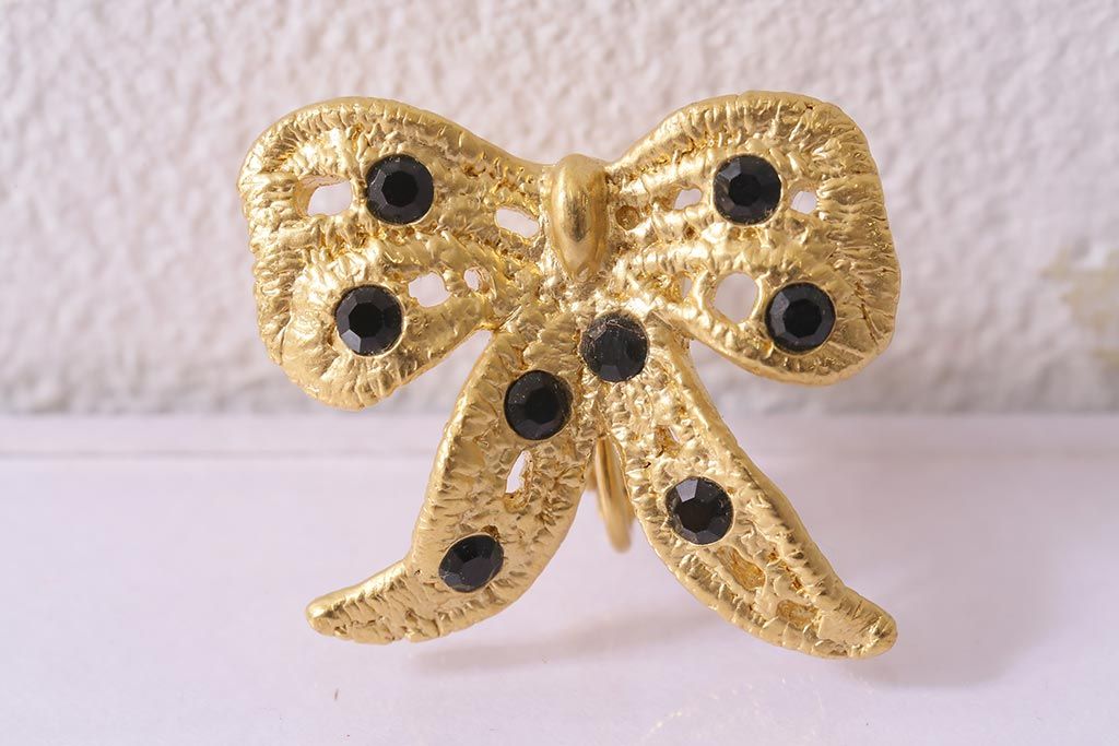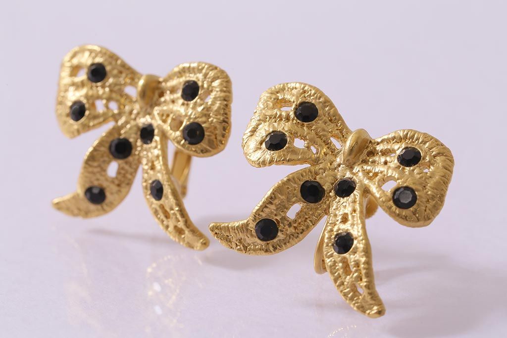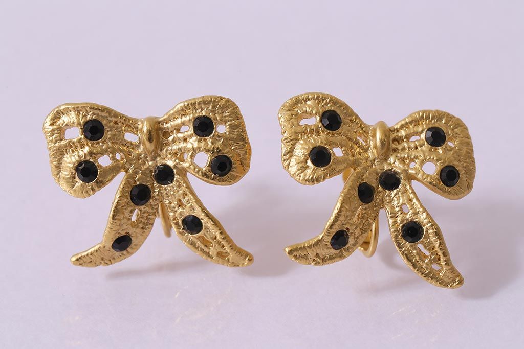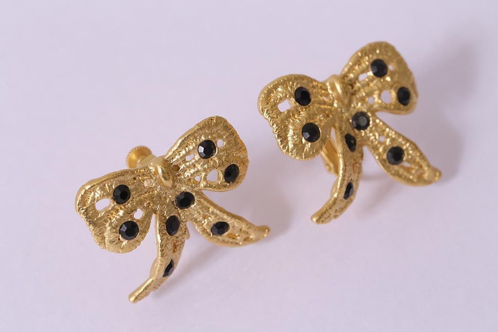 ラフジュ工房> アクセサリー> イヤリング > Psyche(プシュケ) 黒のストーンがシックなリボンモチーフのイヤリング(アクセサリー)(R-041778)