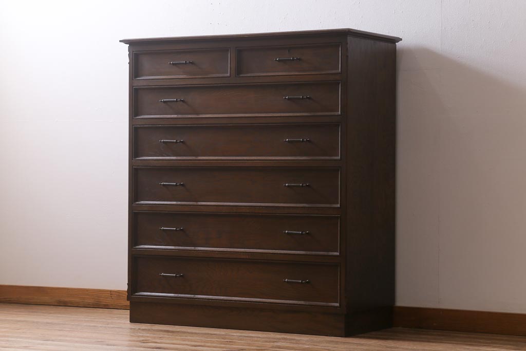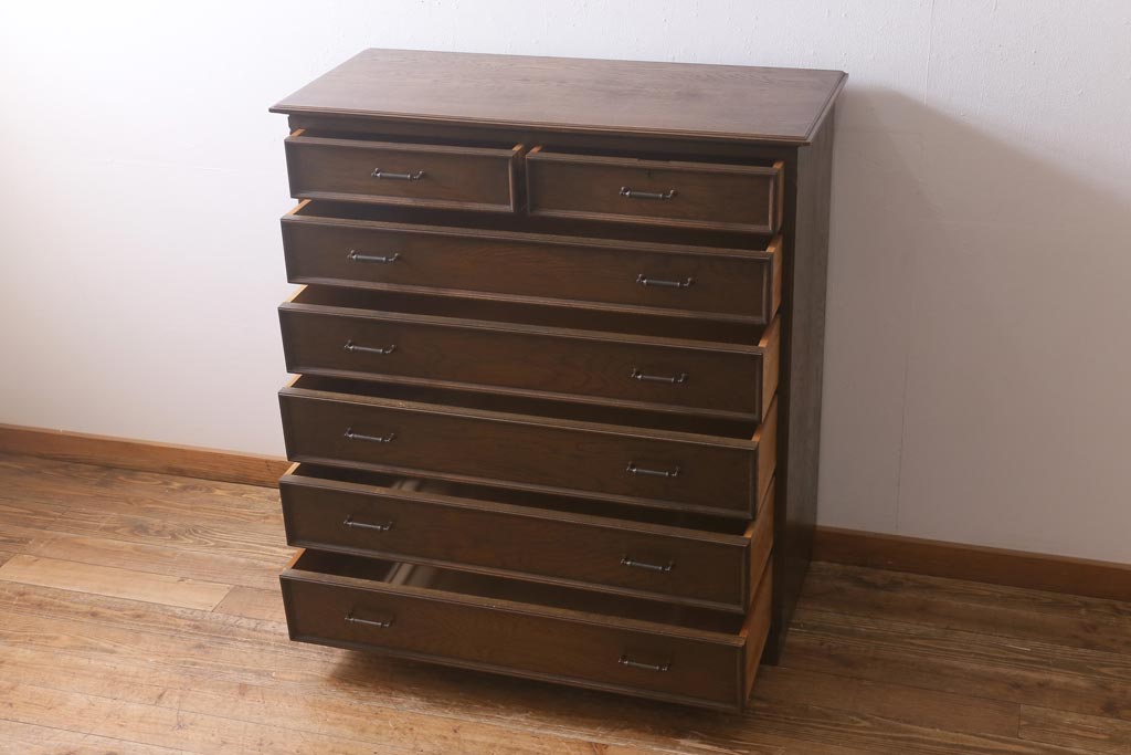 ヴィンテージ家具 神戸洋家具 永田良介商店 和洋折衷の空間に馴染むS型整理タンス・6段(引き出し、チェスト、ビンテージ)(R-041734)