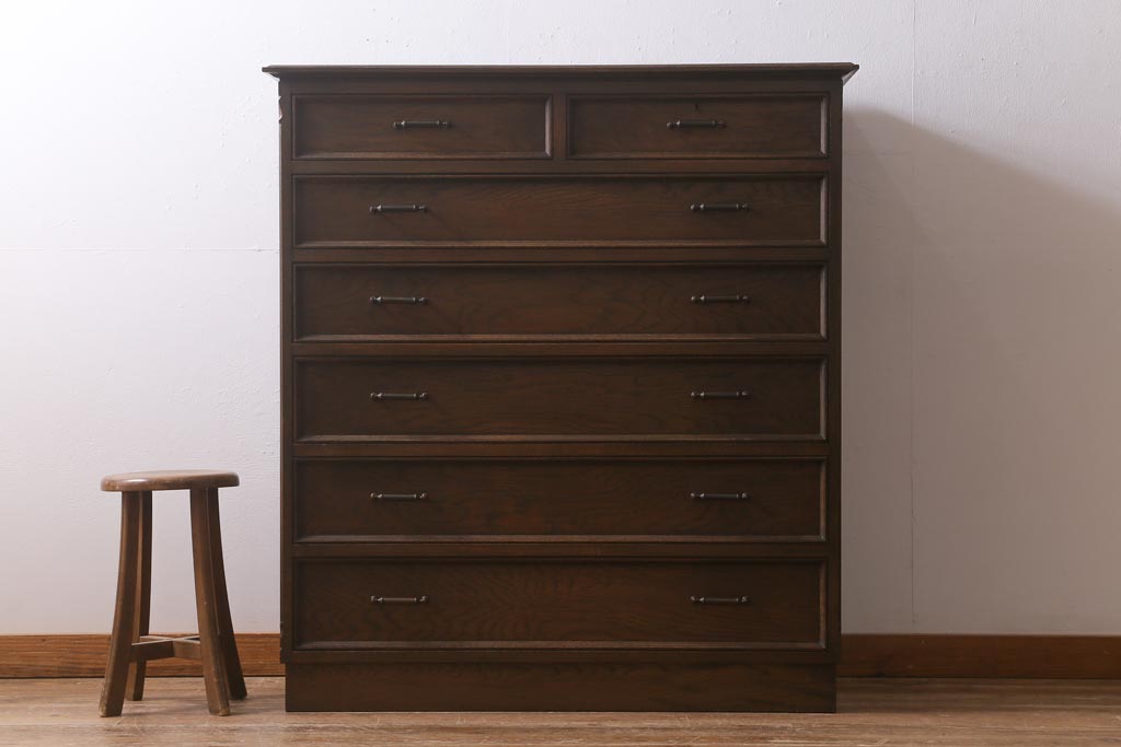 チェスト・引き出し > ヴィンテージ家具 神戸洋家具 永田良介商店 和洋折衷の空間に馴染むS型整理タンス・6段(引き出し、チェスト、ビンテージ)(R-041734)