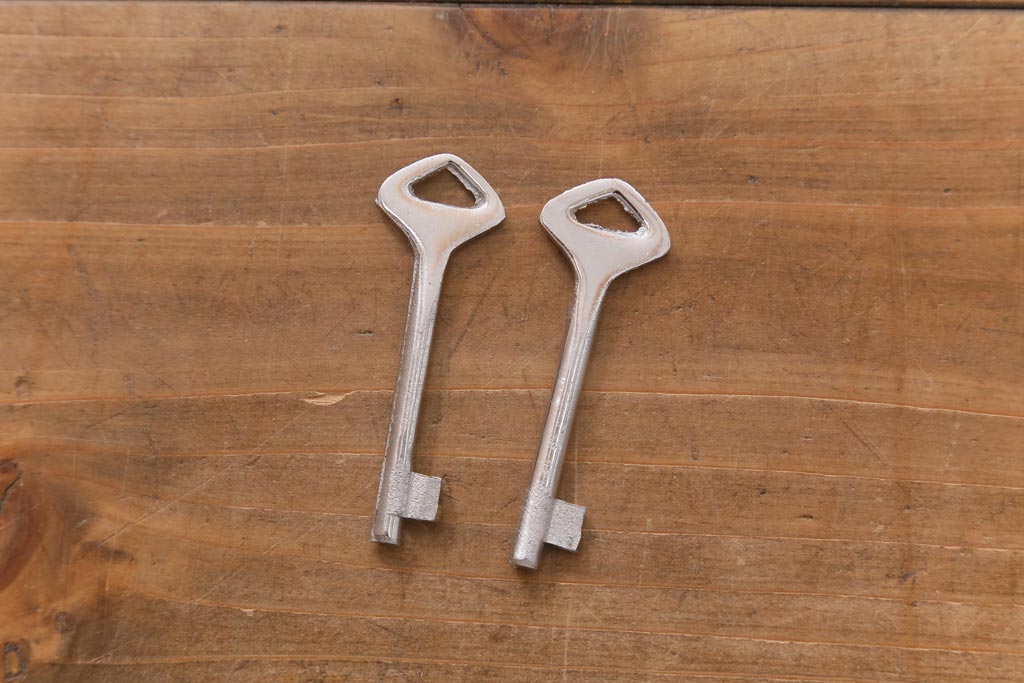 鍵は付属します。画像にありますように、袋に入れお付けします。スムーズに動くように調整していますが、あくまでも古いものや中古品ですので、長期の使用保証は出来かねます。ご購入後不具合が発生した場合は、当店でサポートさせていただきますので、お気軽にご相談くださいませ。