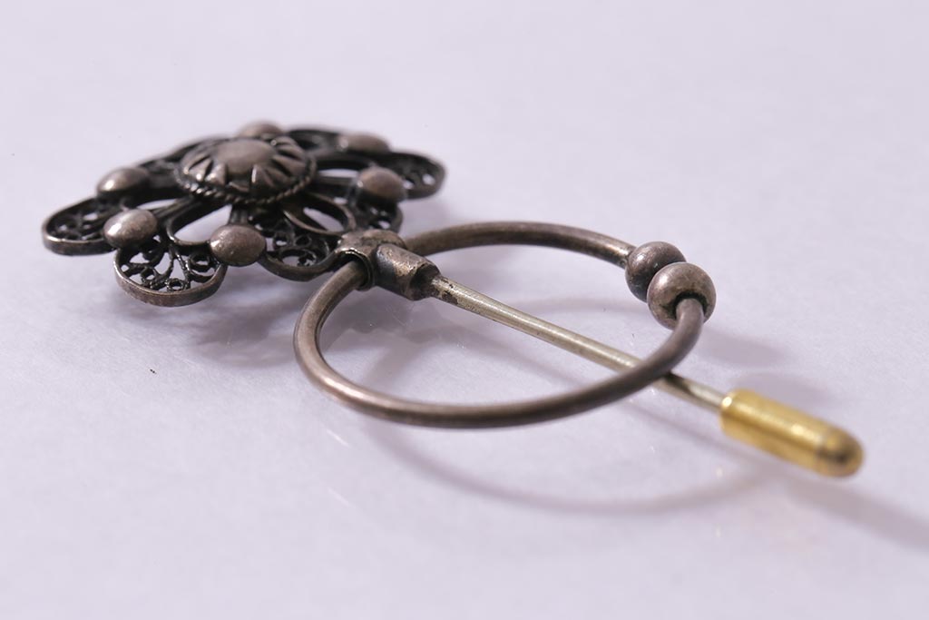 ヴィンテージ雑貨 昭和期 凝ったデザインがアクセントになるピンブローチ(アクセサリー、ビンテージ)(R-041769)