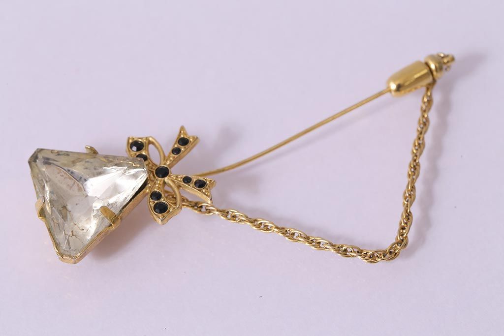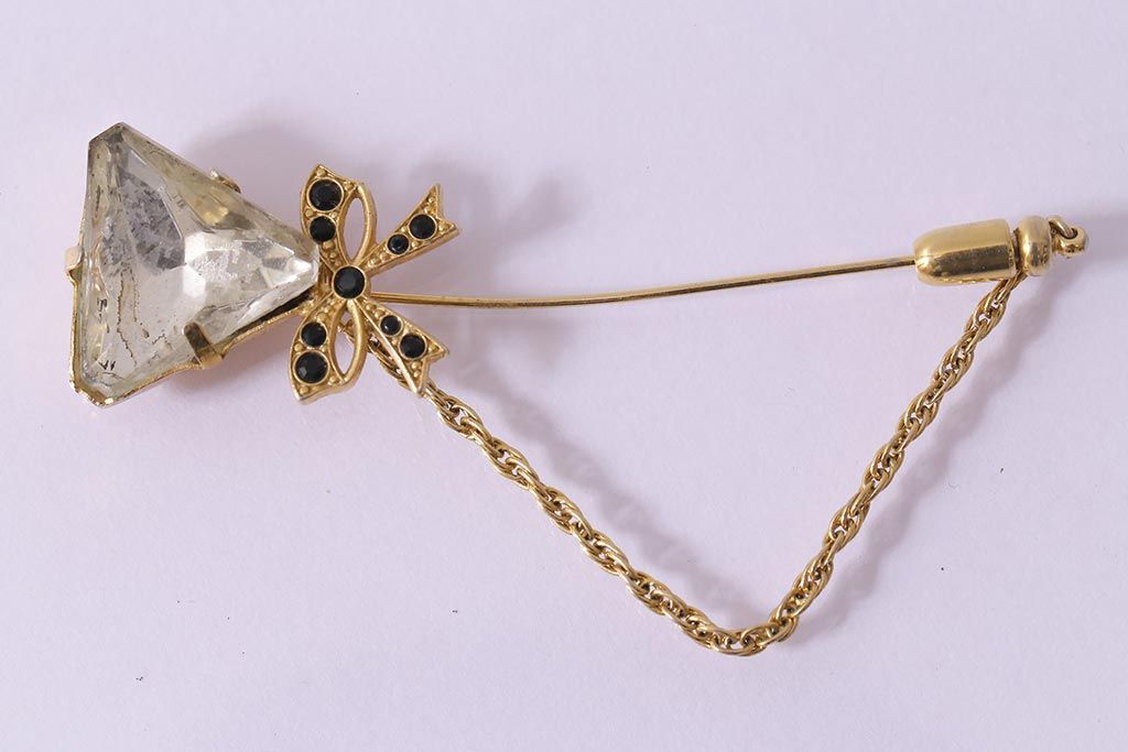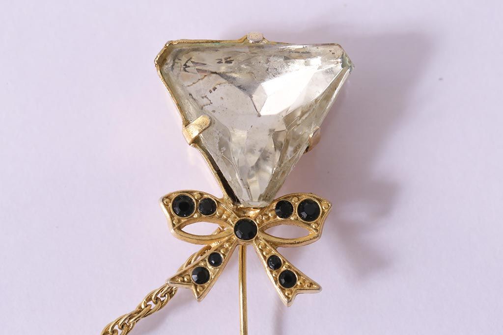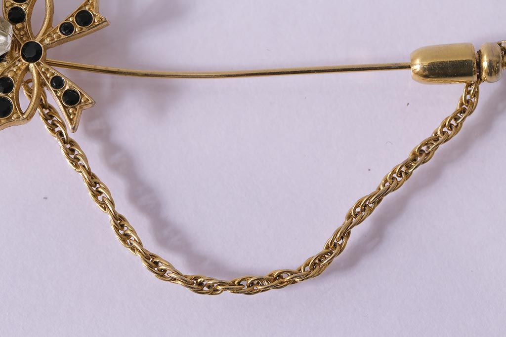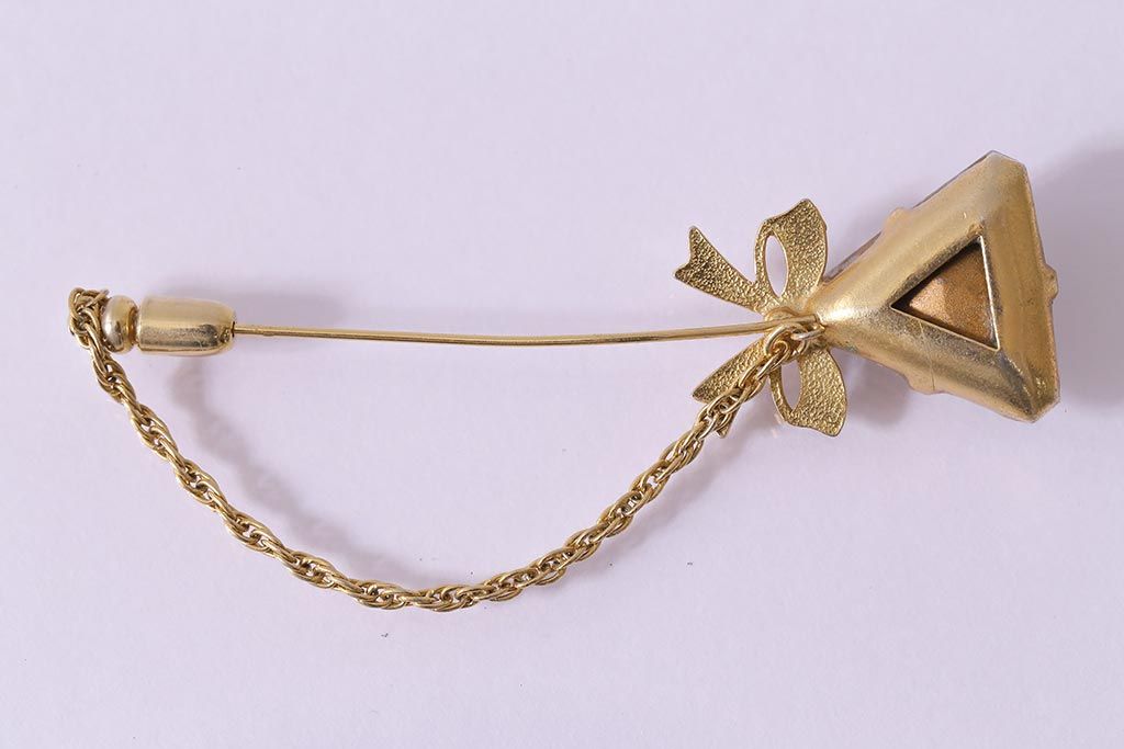 ヴィンテージ雑貨 昭和期 リボンが可愛らしいブローチ(アクセサリー、ビンテージ)(R-041770)