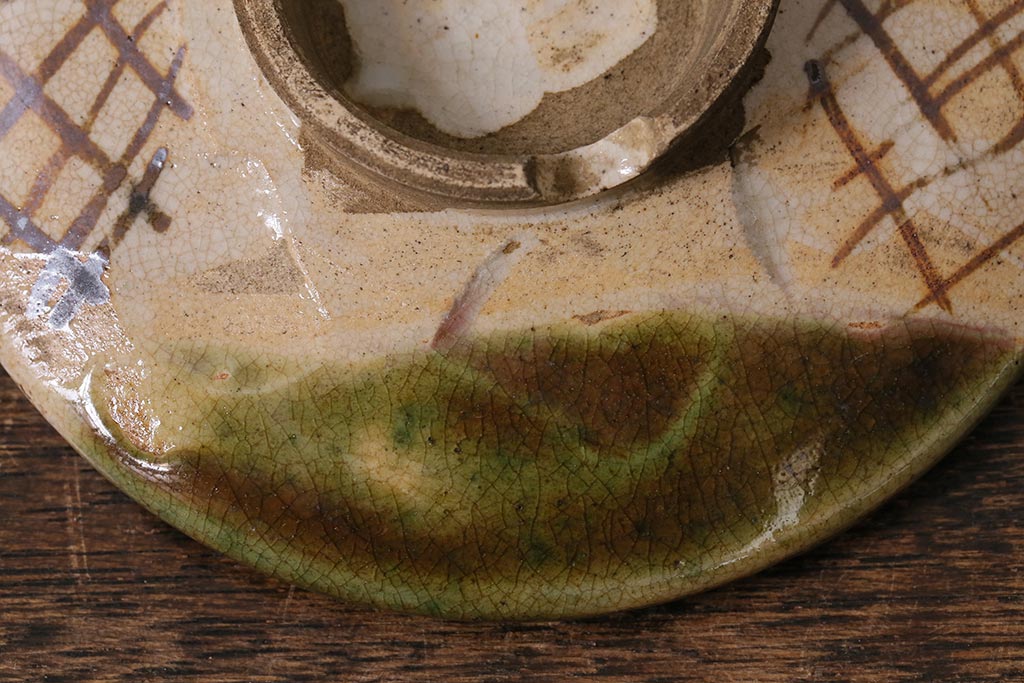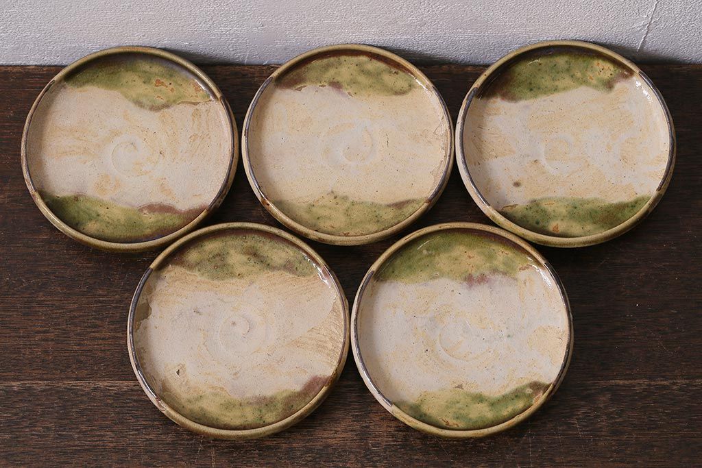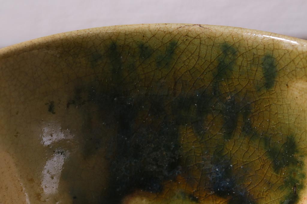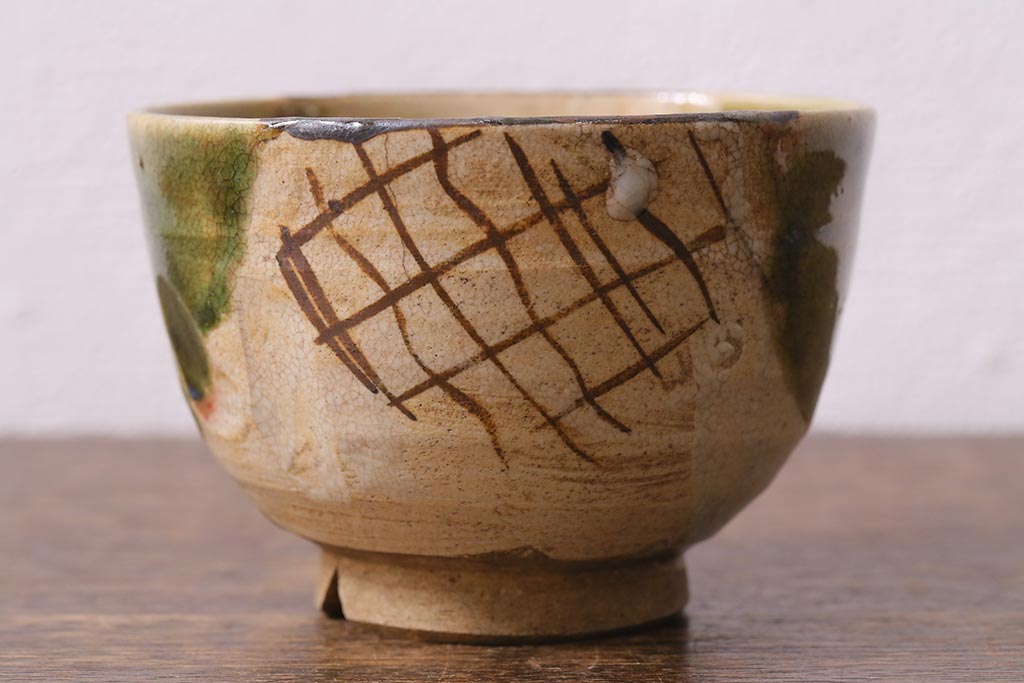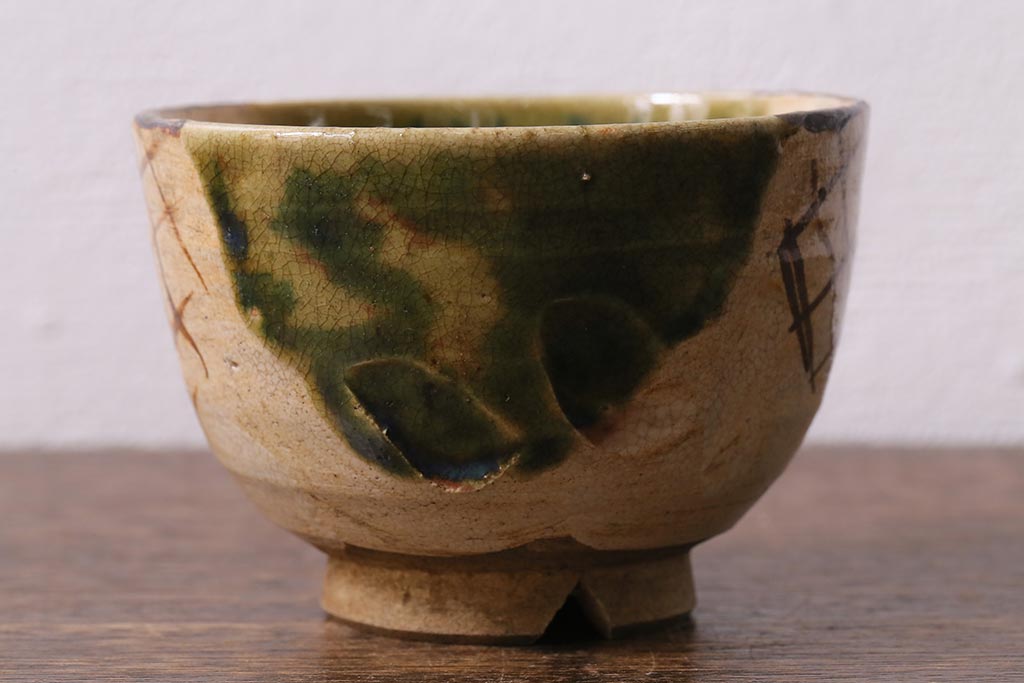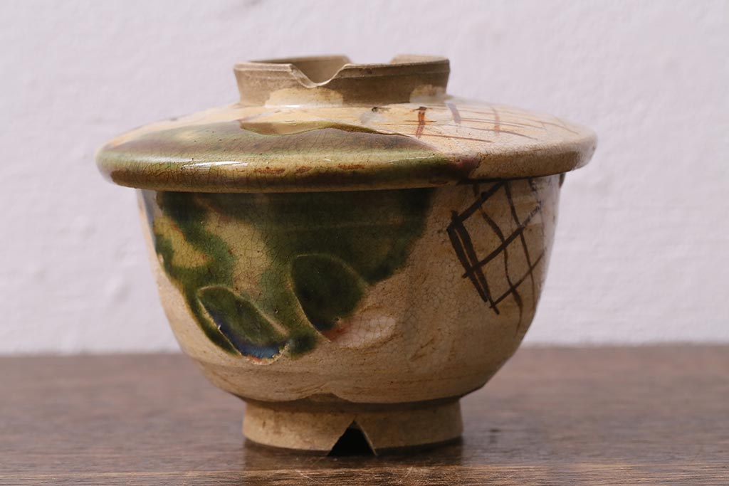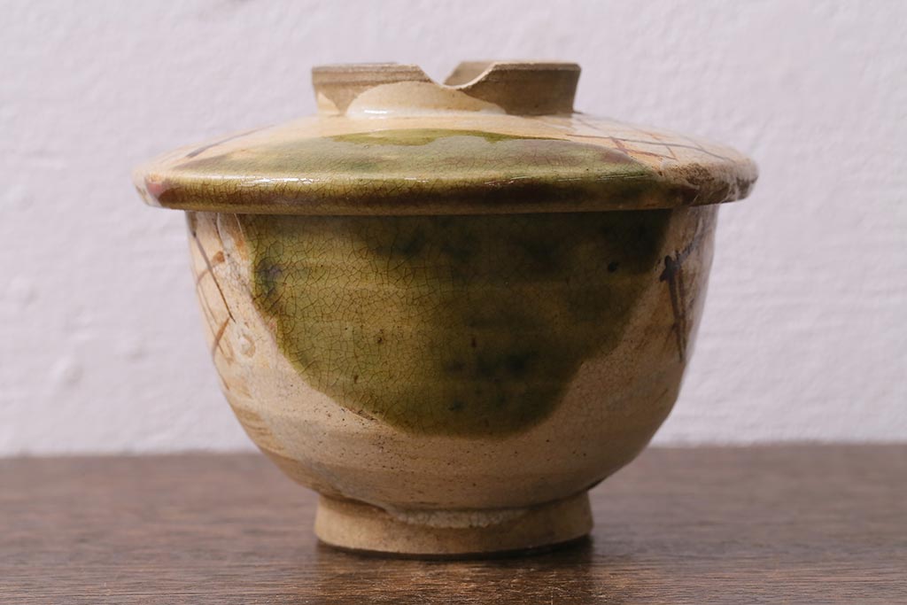 アンティーク雑貨 江戸明治期 時代物 古い織部焼蓋茶碗5客セット(和食器)(R-041390)
