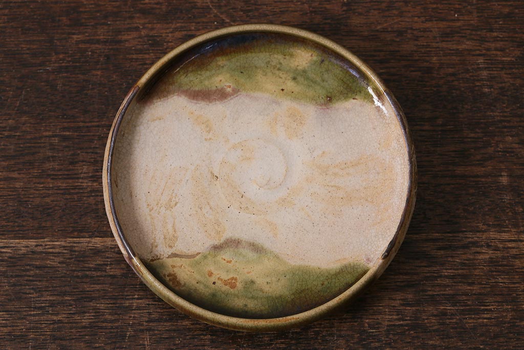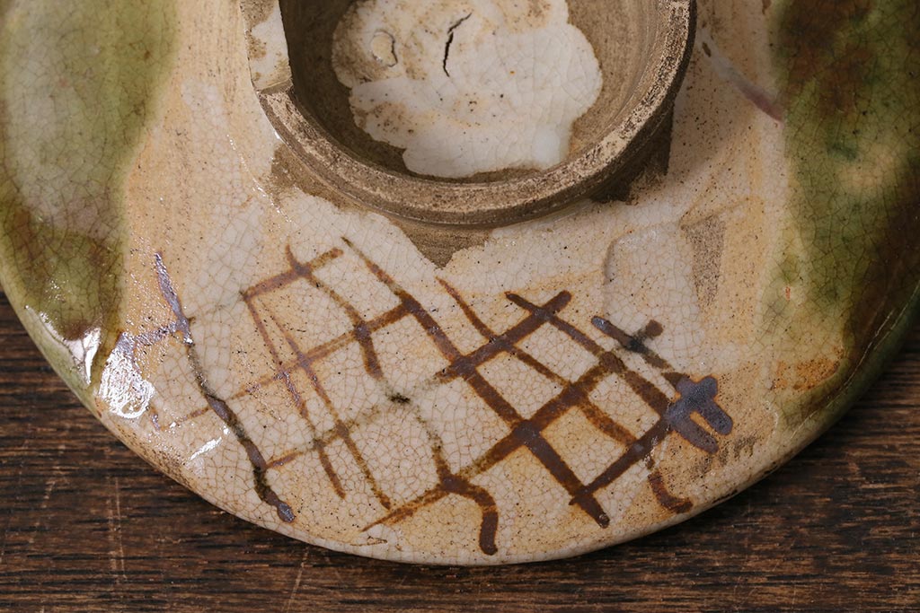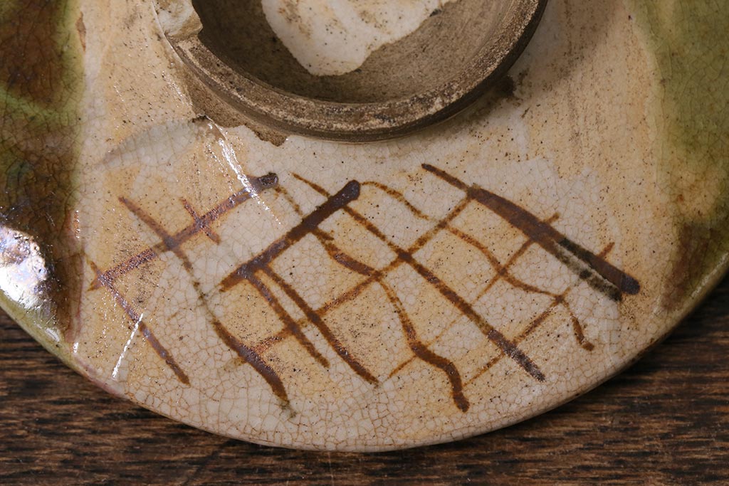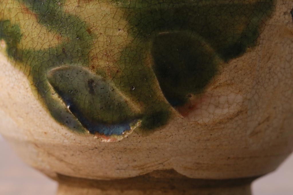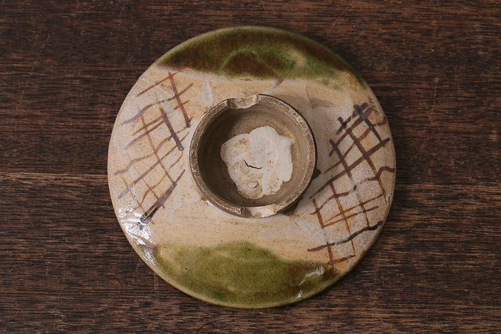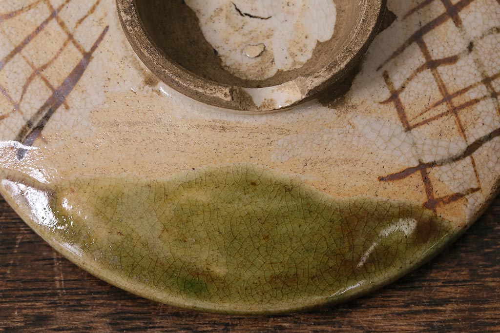 アンティーク雑貨 江戸明治期 時代物 古い織部焼蓋茶碗5客セット(和食器)(R-041390)