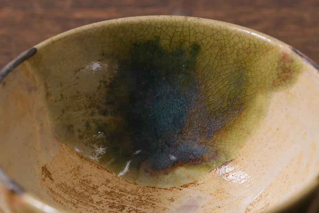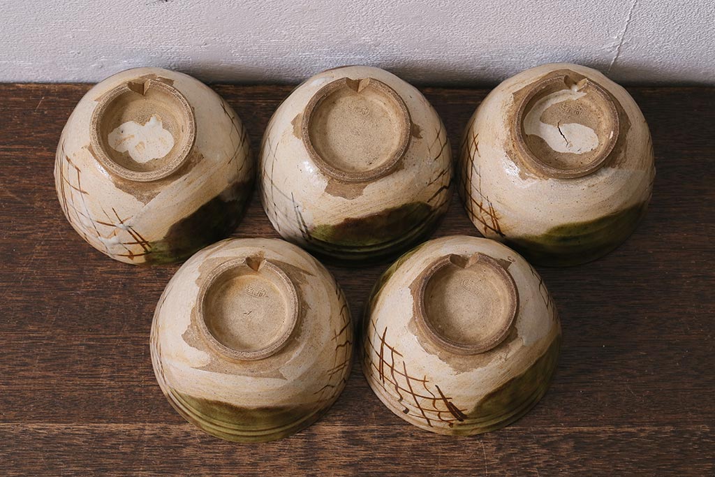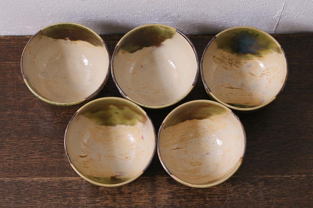 ラフジュ工房> 和食器・茶道具 > アンティーク雑貨 江戸明治期 時代物 古い織部焼蓋茶碗5客セット(和食器)(R-041390)