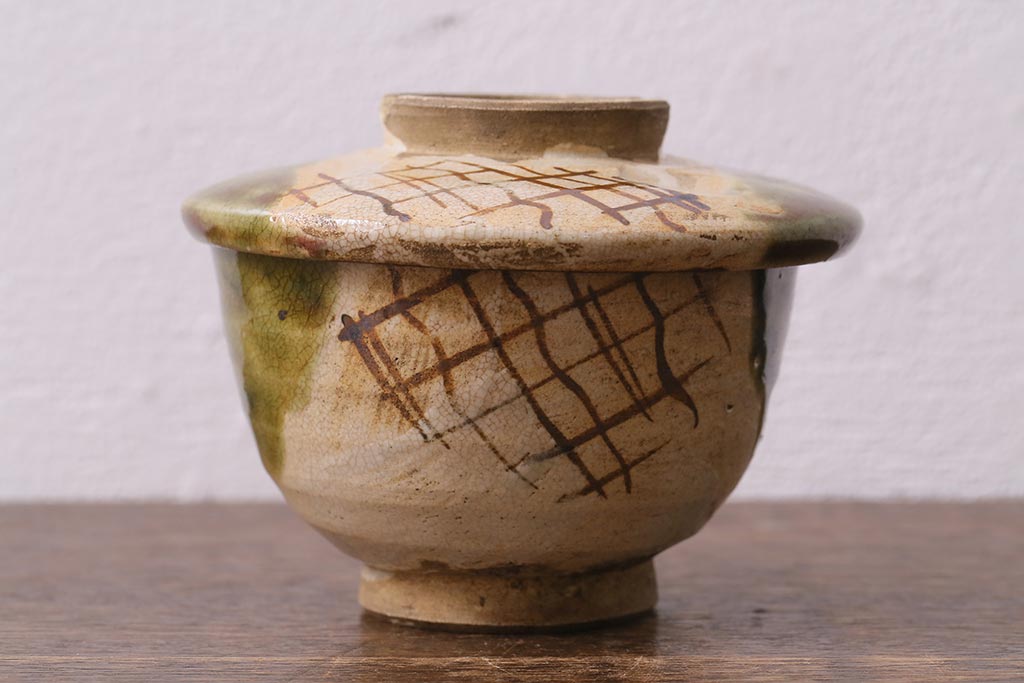 ラフジュ工房> 和食器・茶道具> お椀・茶碗 > アンティーク雑貨 江戸明治期 時代物 古い織部焼蓋茶碗5客セット(和食器)(R-041390)