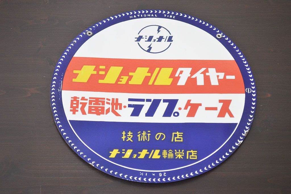 ラフジュ工房> 雑貨> 看板 > レトロ雑貨 昭和レトロ ナショナルタイヤー 乾電池・ランプ・ケース 松下電器発電ランプ 両面ホーロー看板(企業看板)(R-041511)
