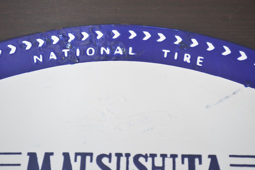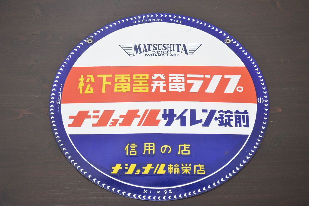 レトロ雑貨 昭和レトロ ナショナルタイヤー 乾電池・ランプ・ケース 松下電器発電ランプ 両面ホーロー看板(企業看板)(R-041511)