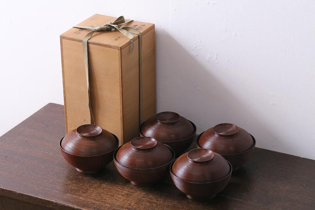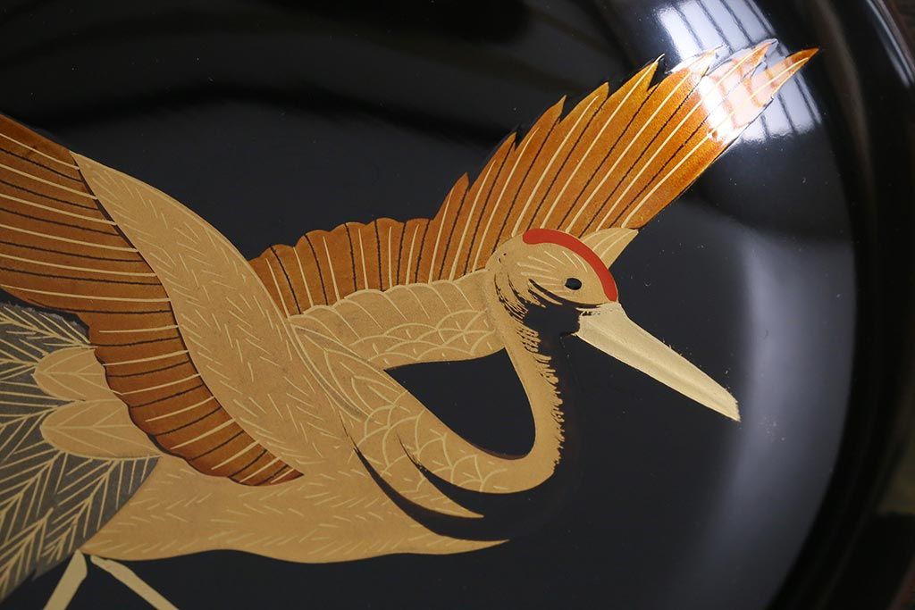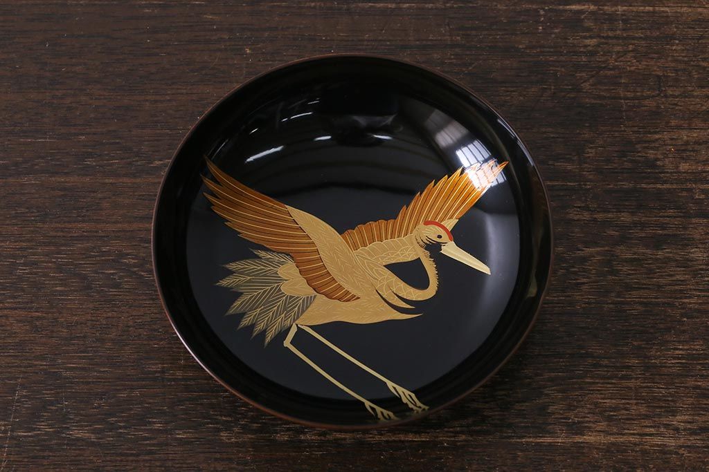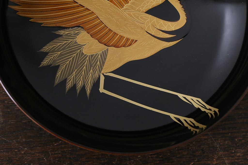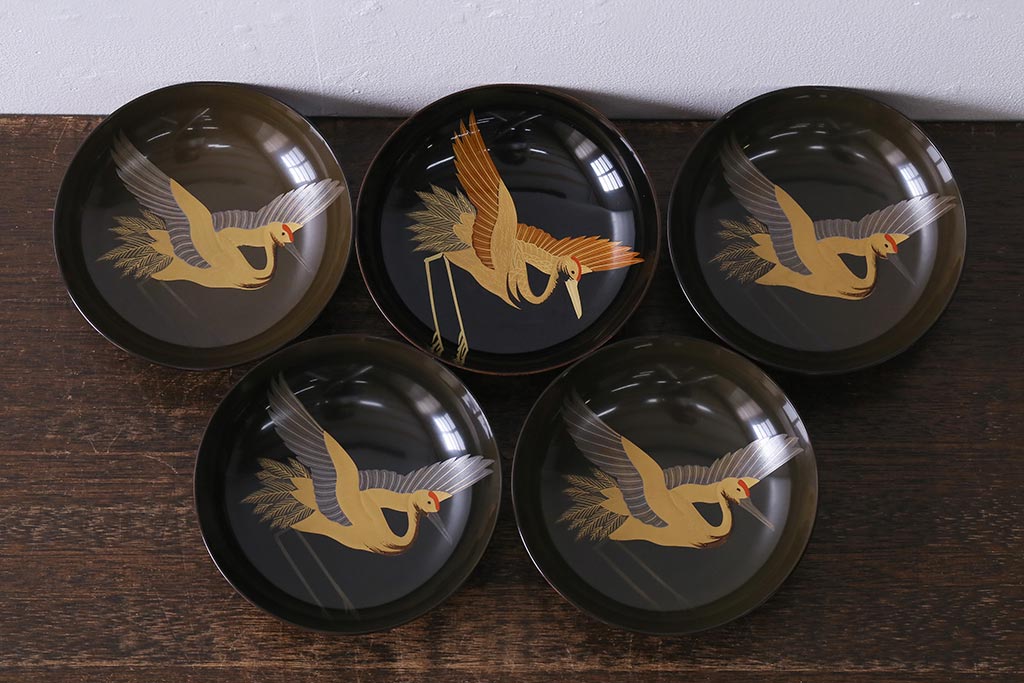 ラフジュ工房> 骨董・美術品> 骨董-漆器 > 塗師 岡本陽斎 鶴蒔絵煮物椀5客セット 共箱付き(木製椀、漆器)(R-041141)