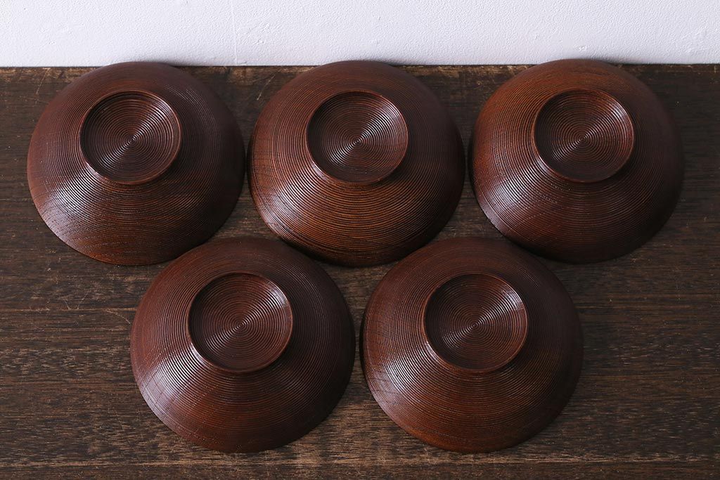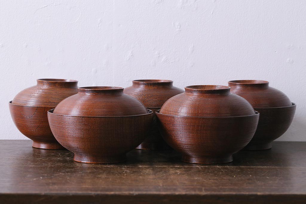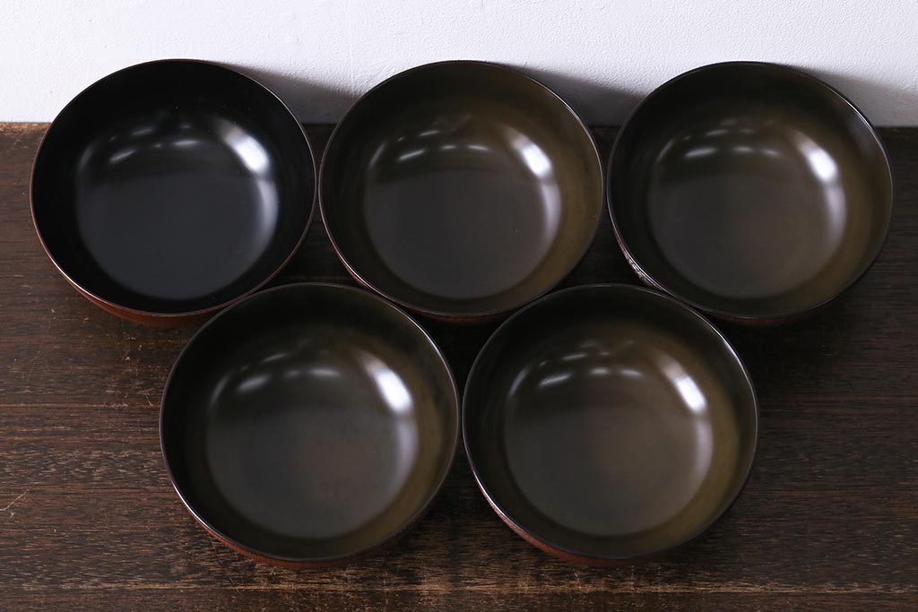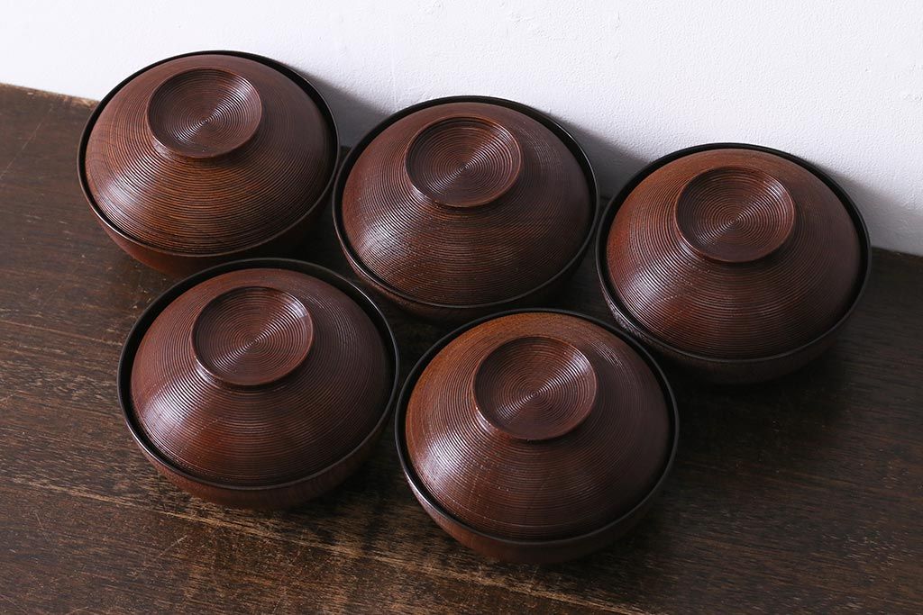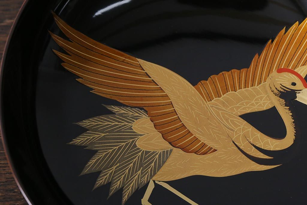 ラフジュ工房> 骨董・美術品> 骨董-漆器 > 塗師 岡本陽斎 鶴蒔絵煮物椀5客セット 共箱付き(木製椀、漆器)(R-041141)