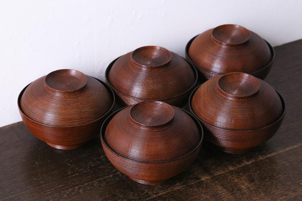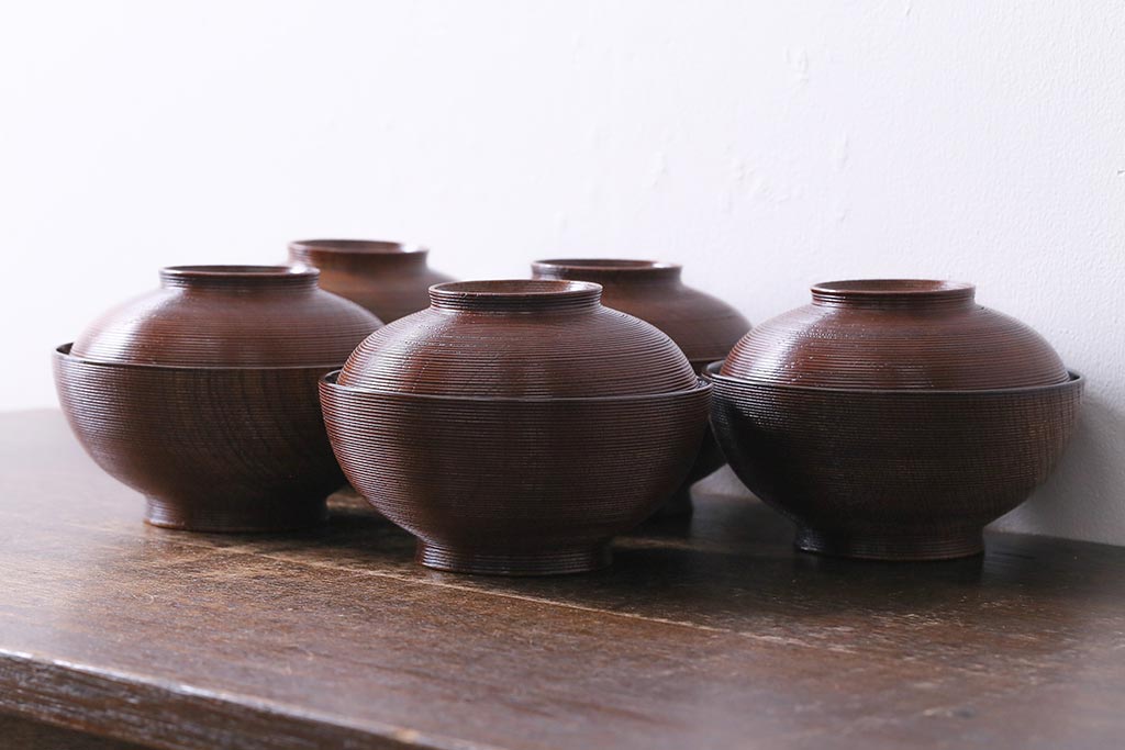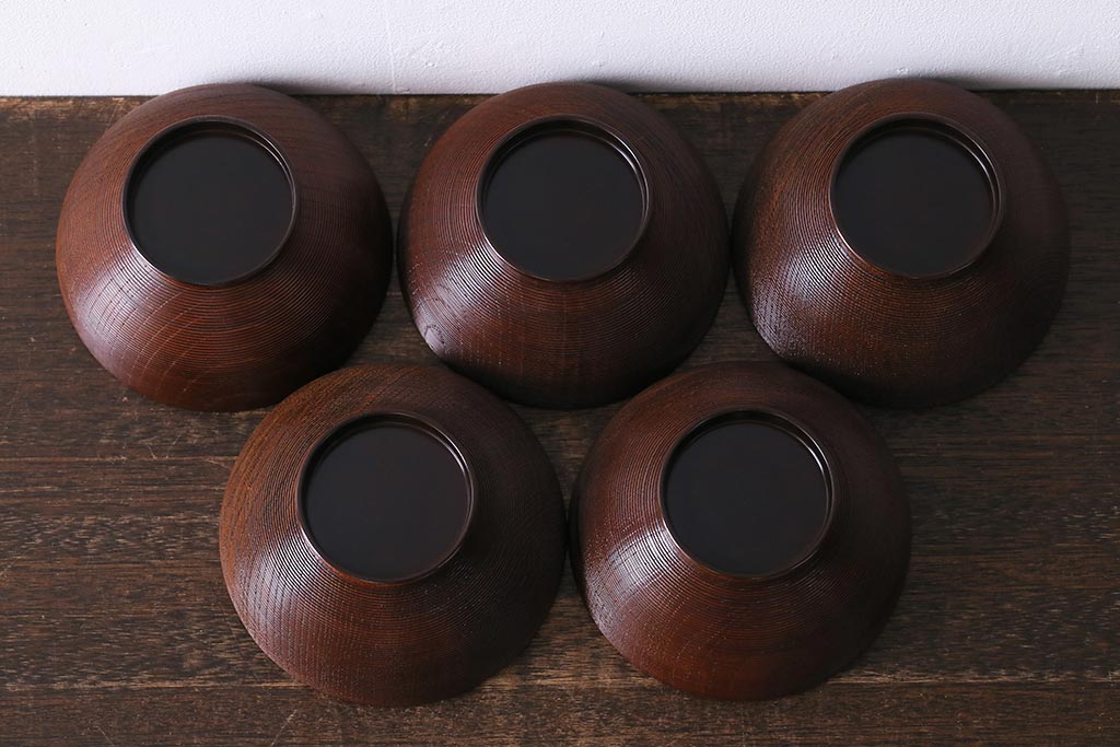 ラフジュ工房> 和食器・茶道具> お椀・茶碗 > 塗師 岡本陽斎 鶴蒔絵煮物椀5客セット 共箱付き(木製椀、漆器)(R-041141)