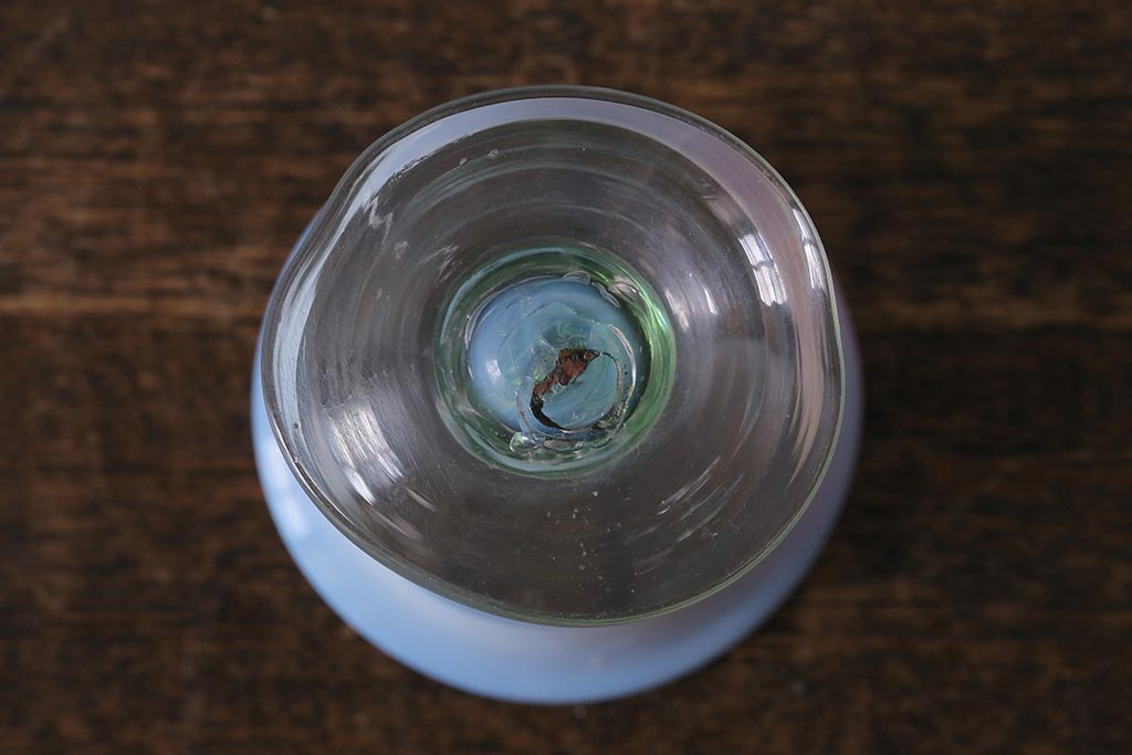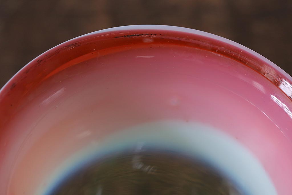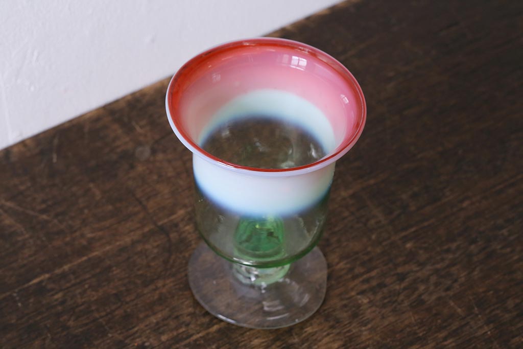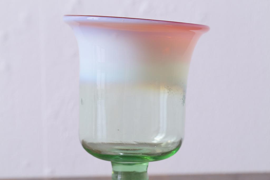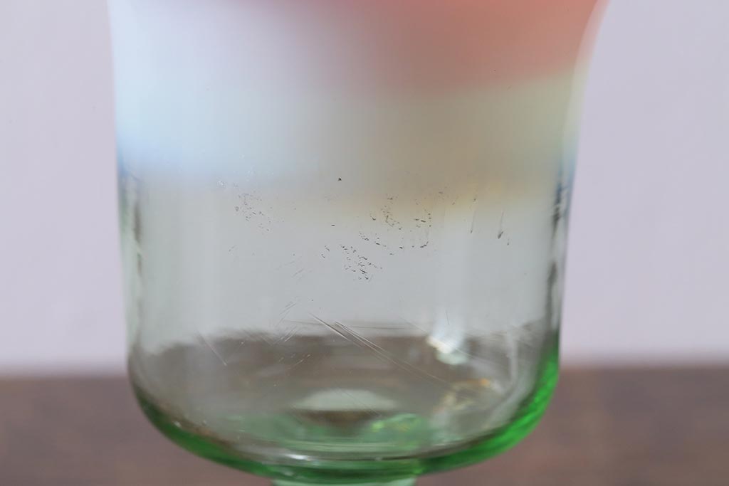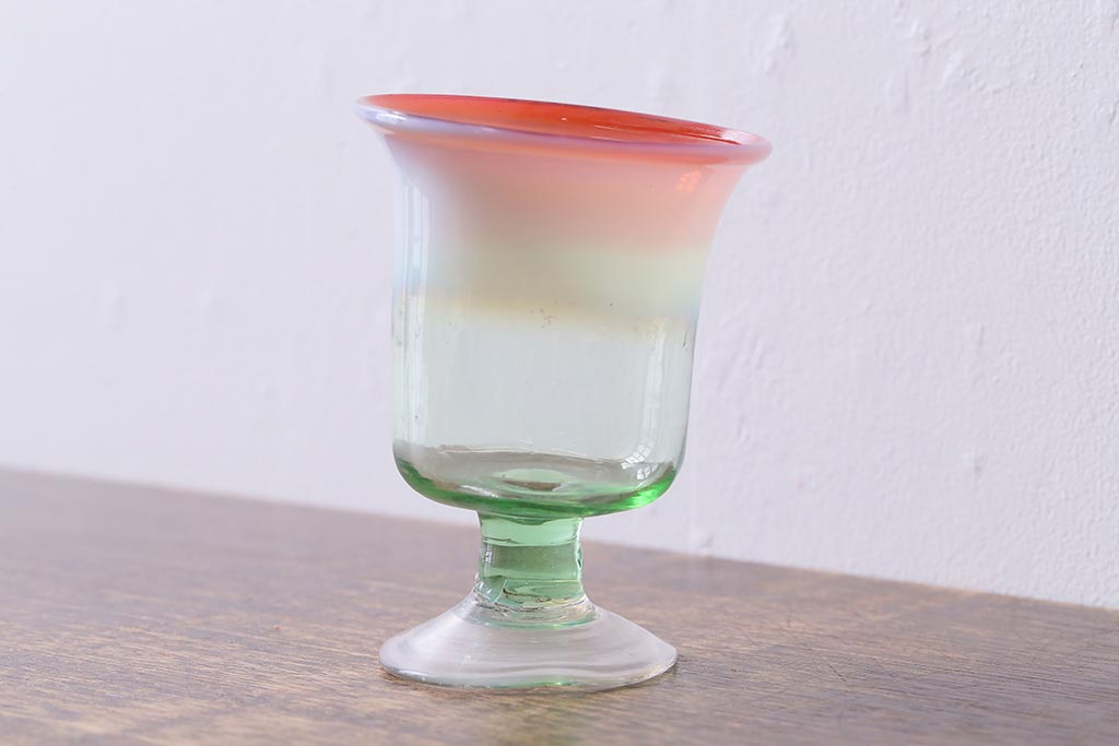 アンティーク雑貨 レトロ雑貨 大正期 棗型(なつめ形) 三色氷コップ(ウランガラス、グラス、和ガラス)(R-041142)