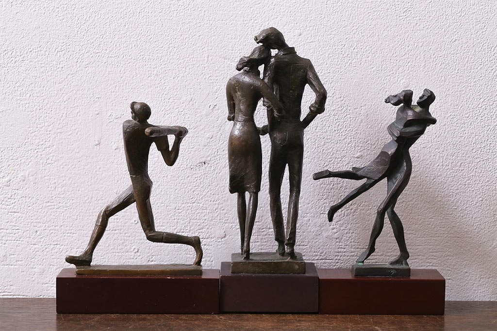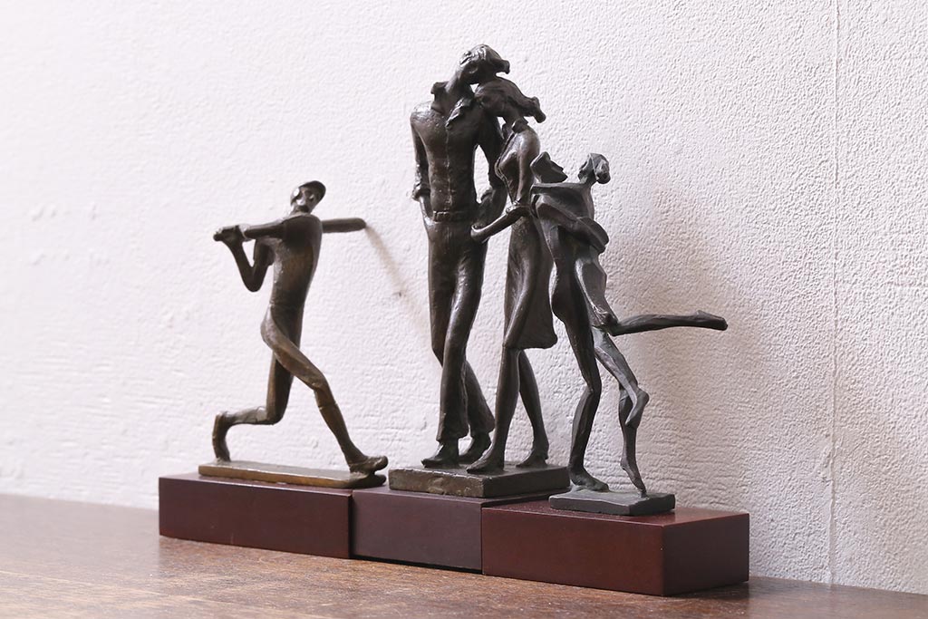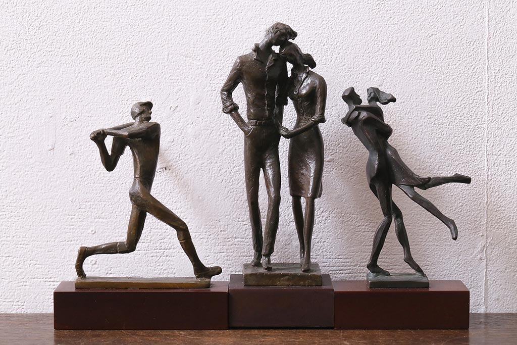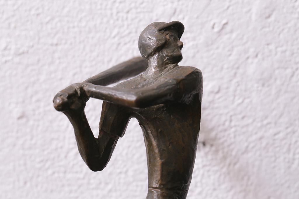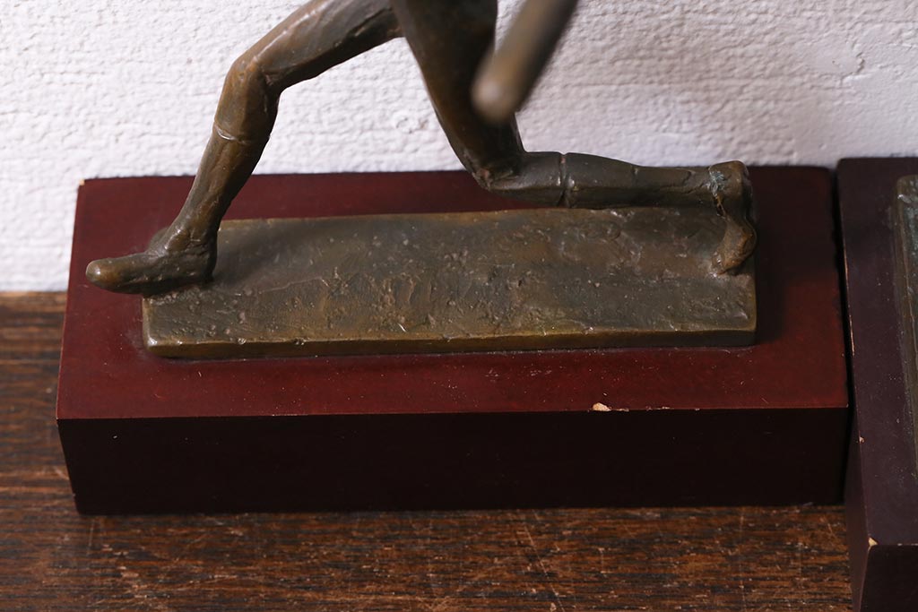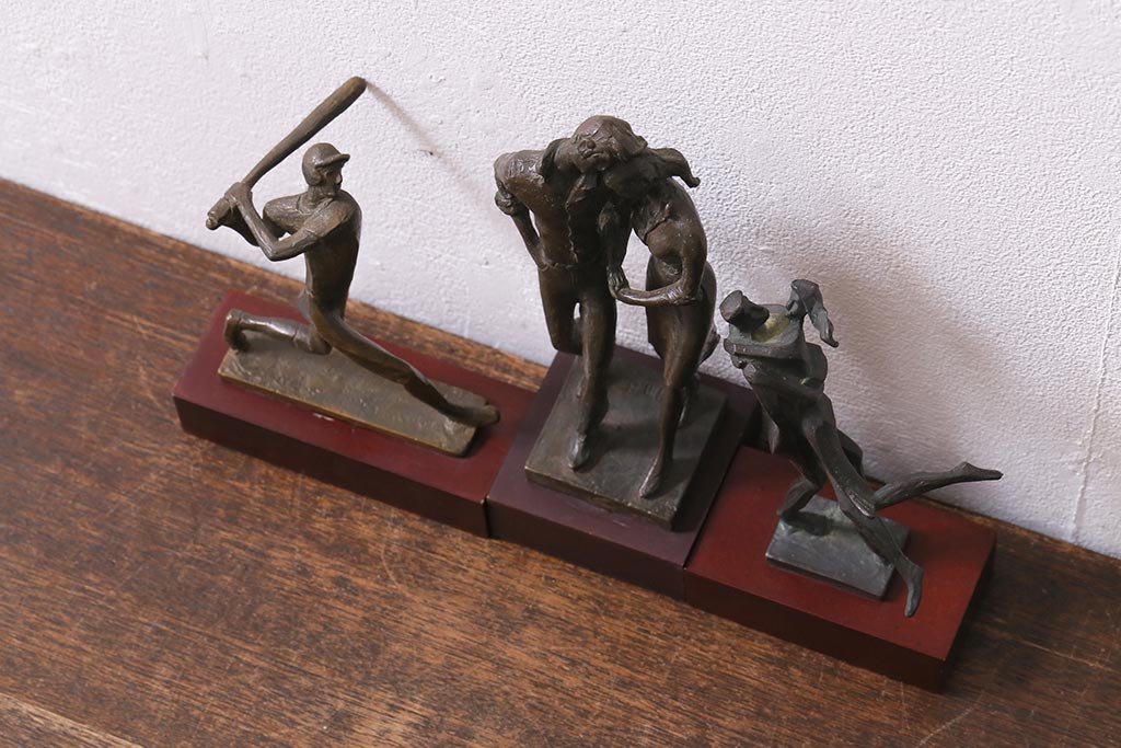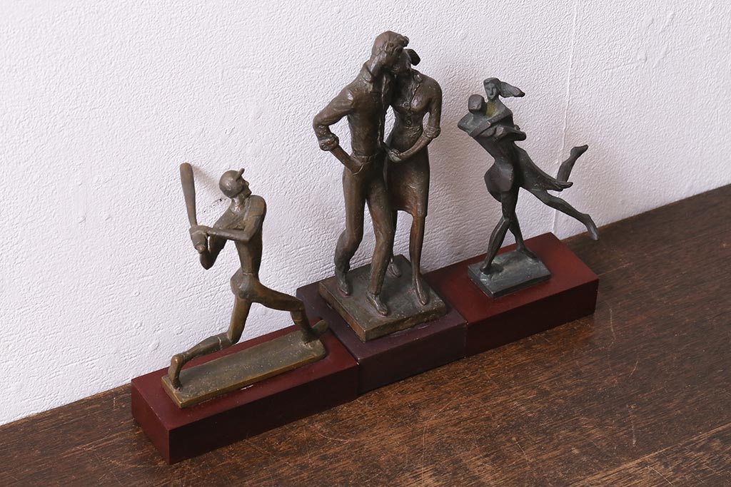 古いブロンズ像3点セット(バッター 野球 カップル 恋人)(R-041420)