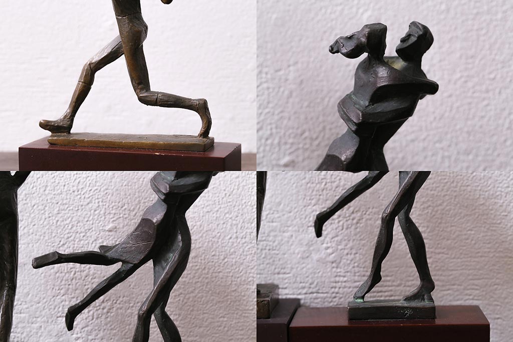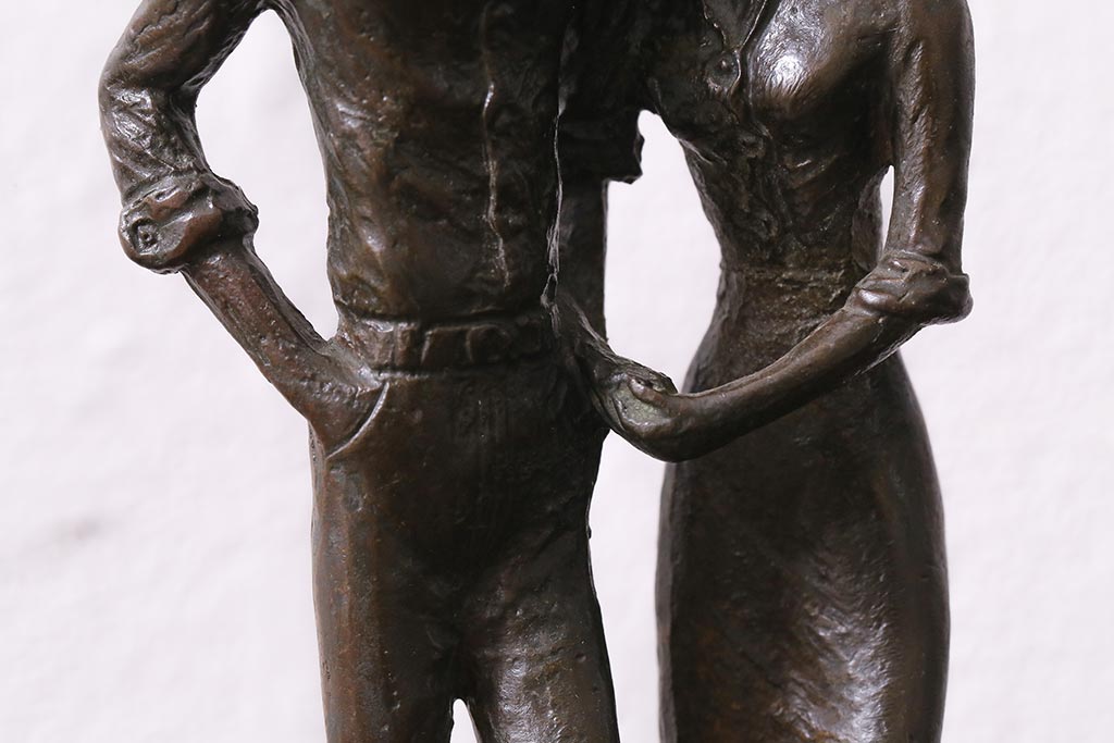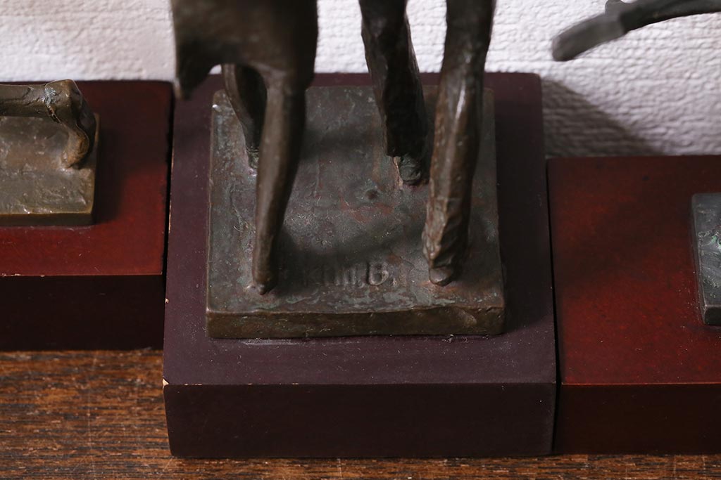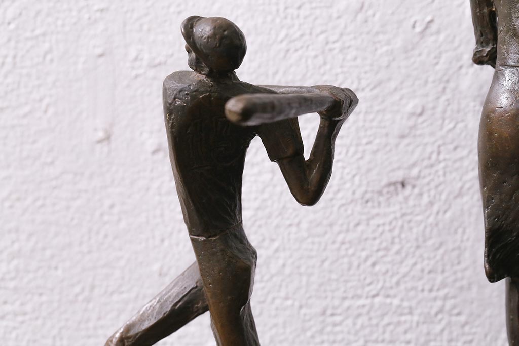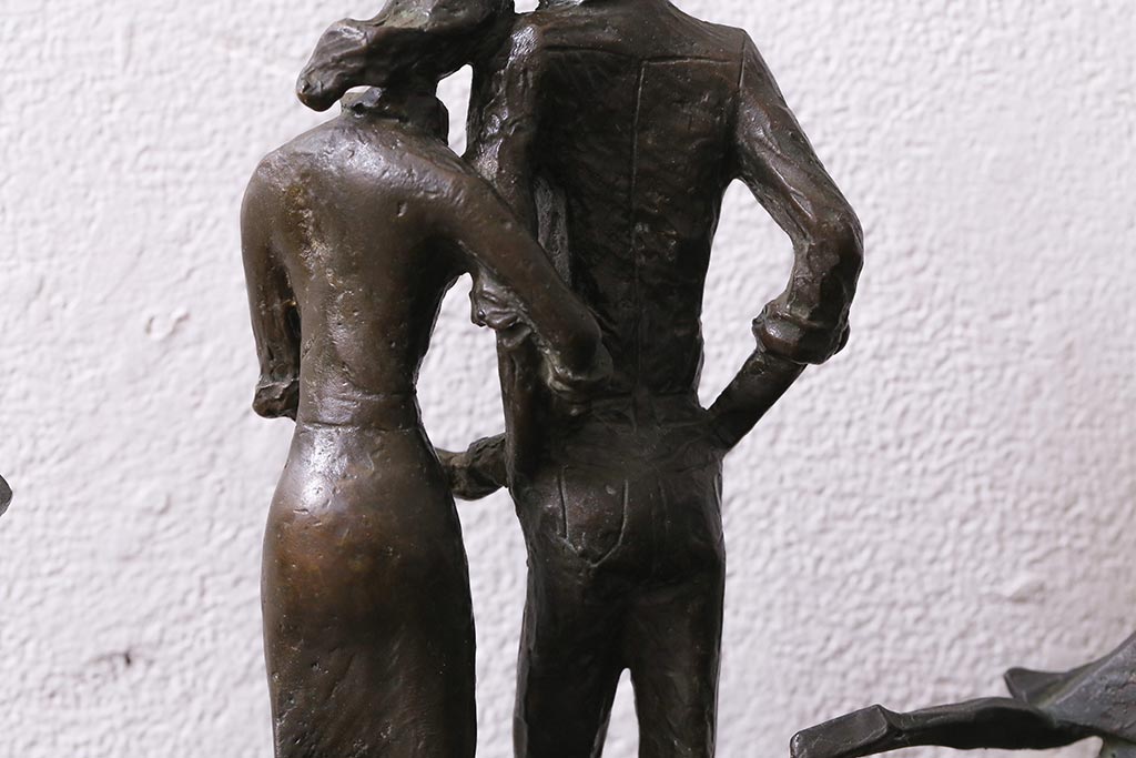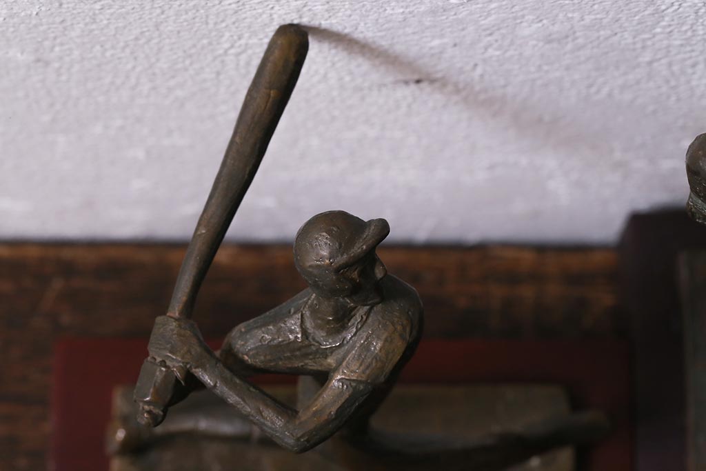 古いブロンズ像3点セット(バッター 野球 カップル 恋人)(R-041420)