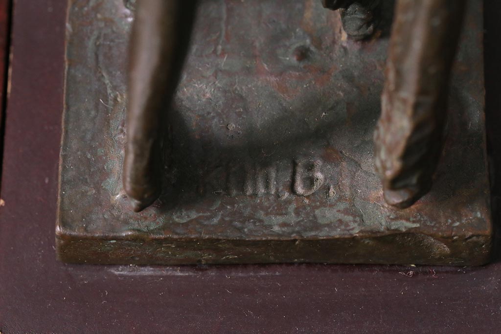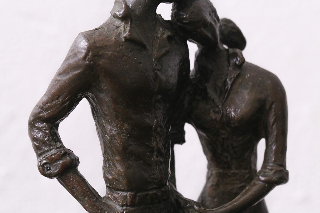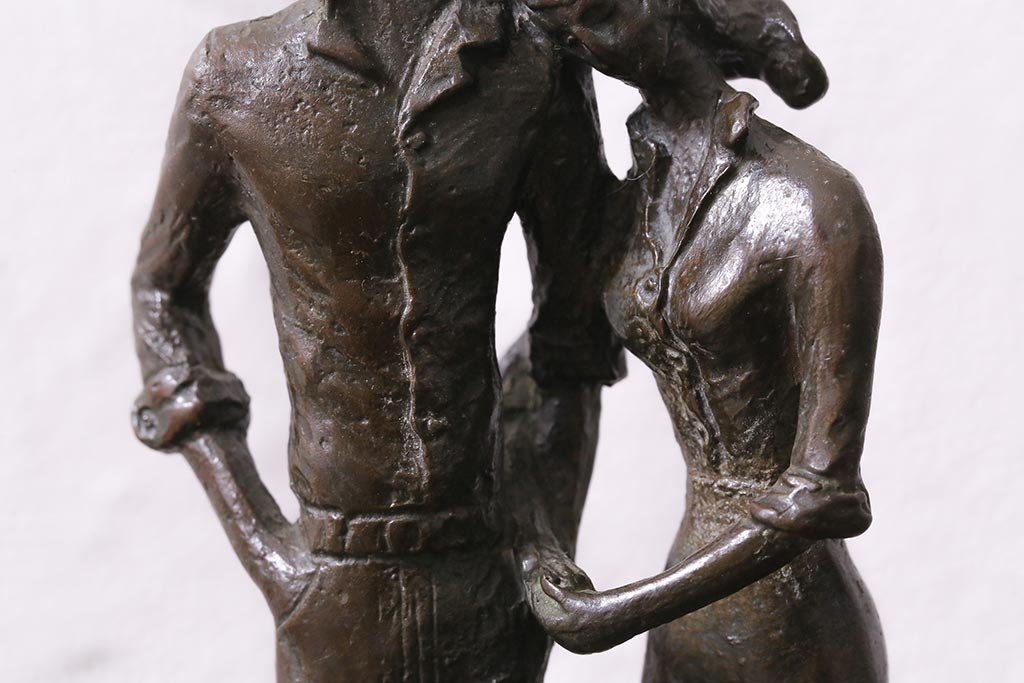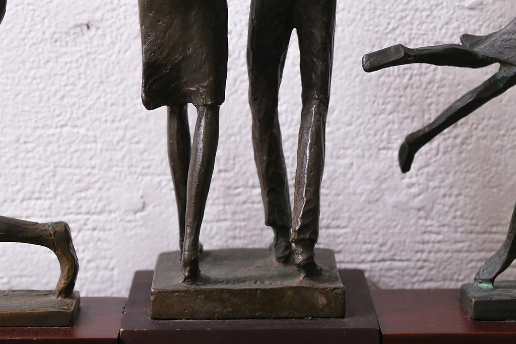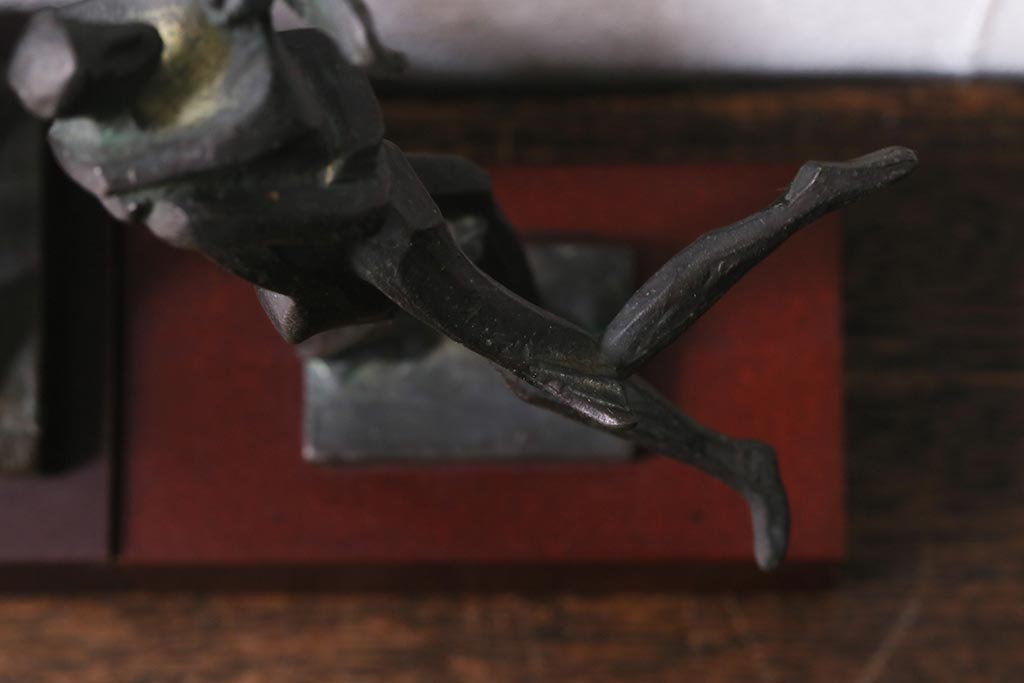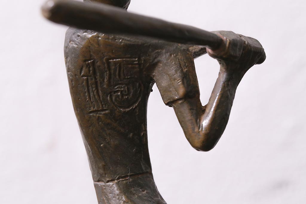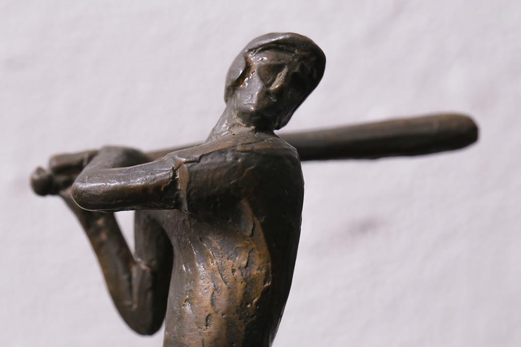 古いブロンズ像3点セット(バッター 野球 カップル 恋人)(R-041420)