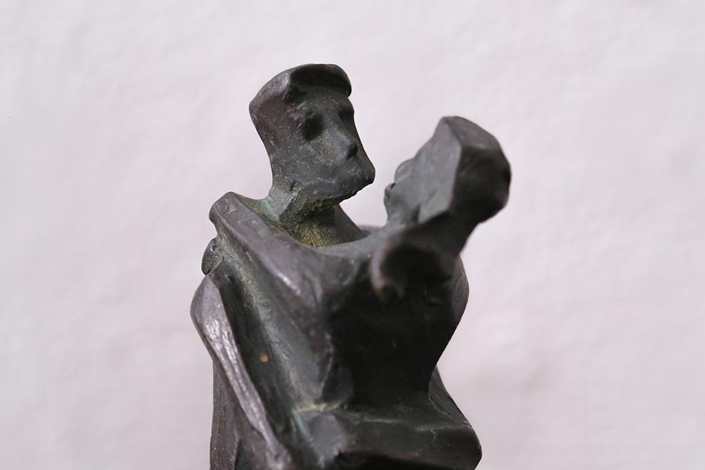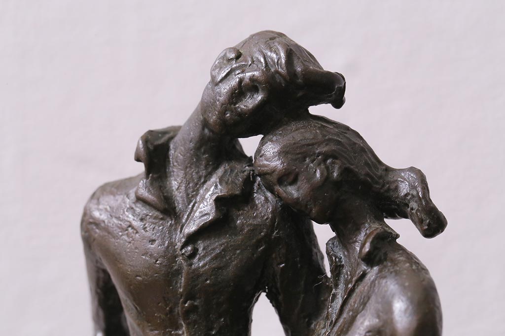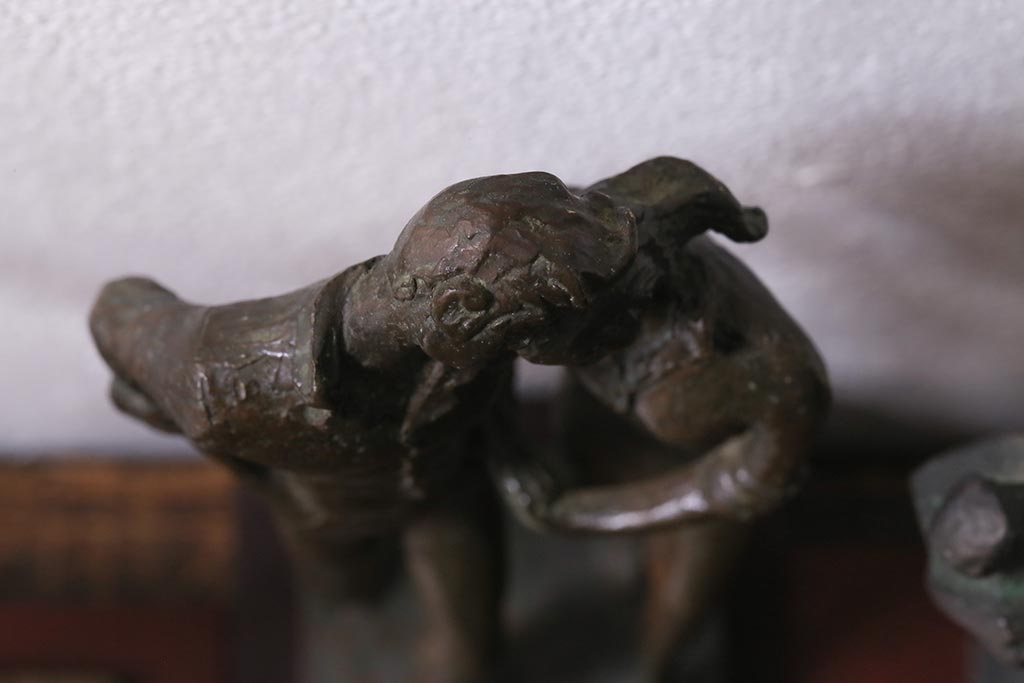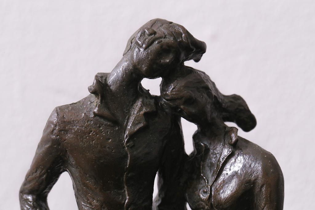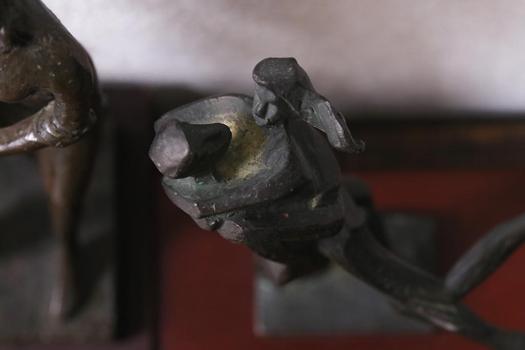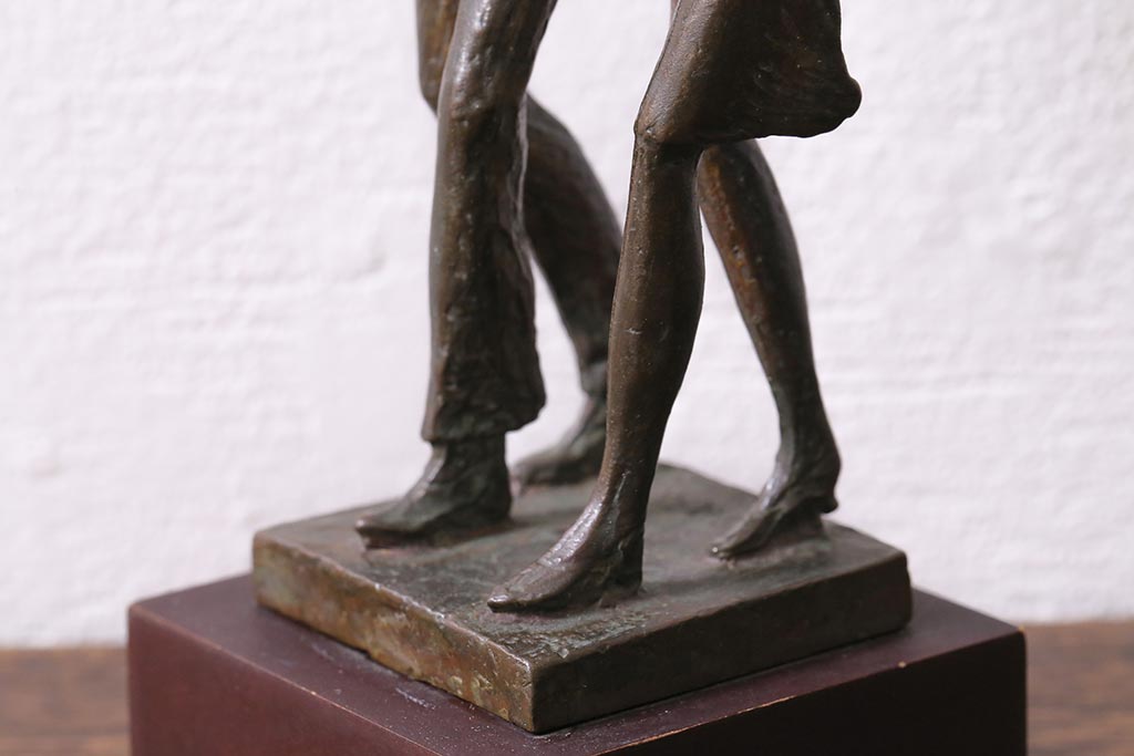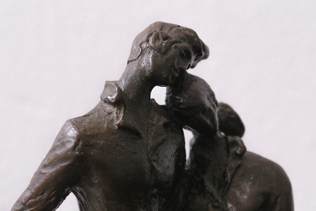 古いブロンズ像3点セット(バッター 野球 カップル 恋人)(R-041420)