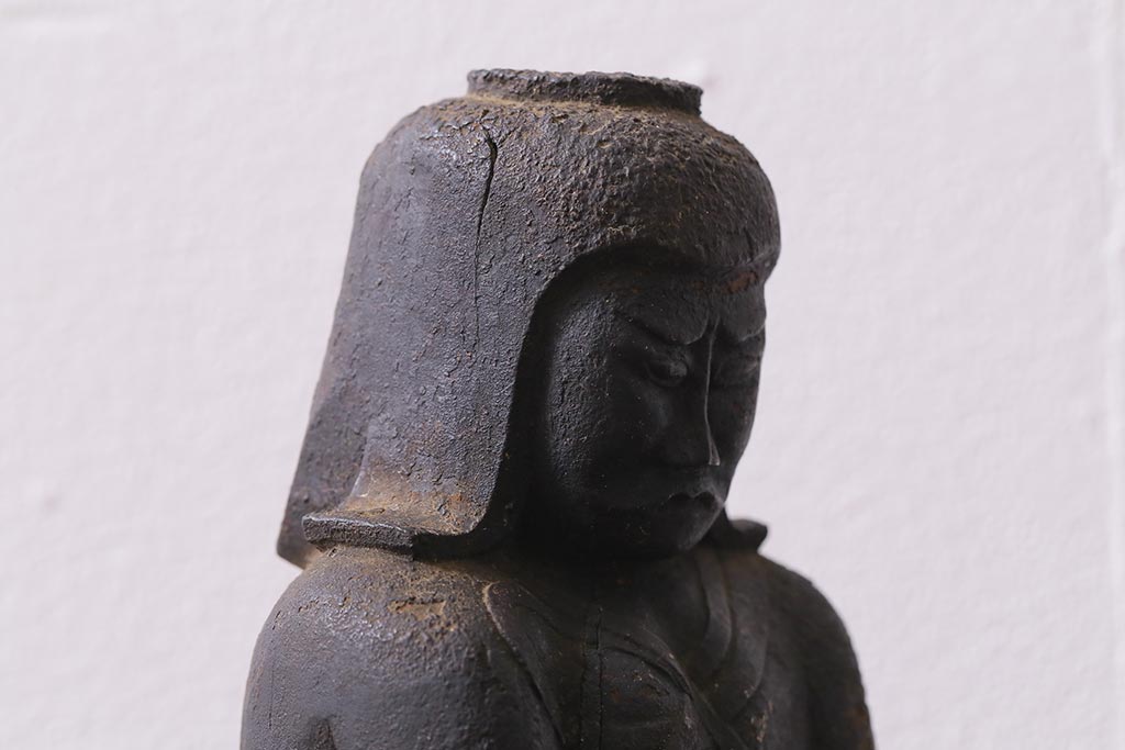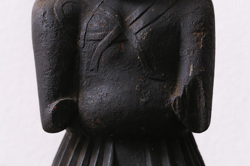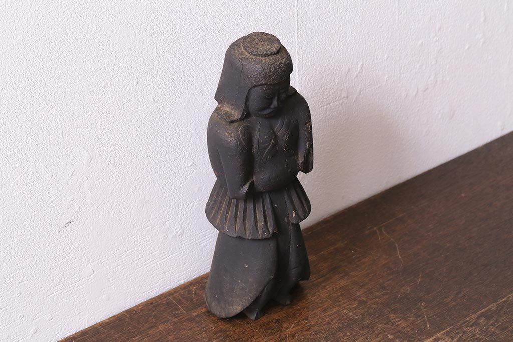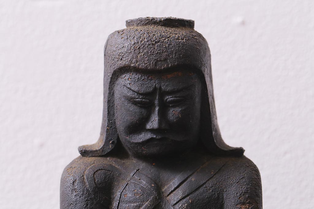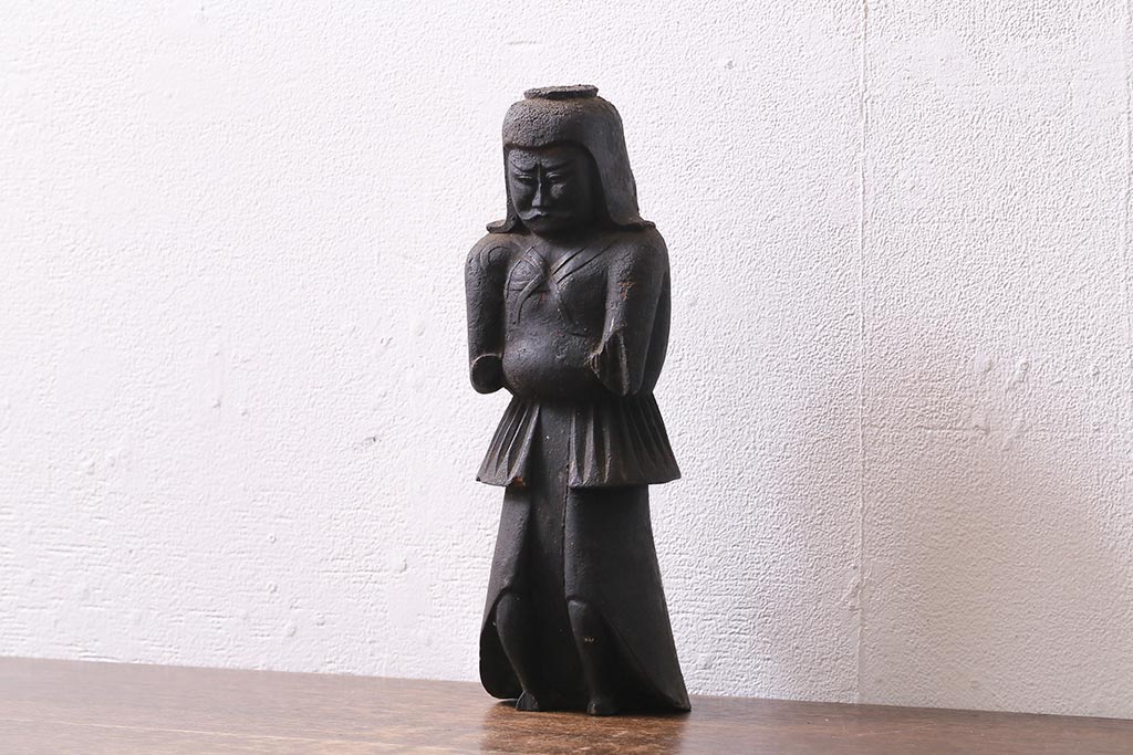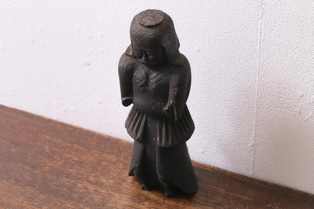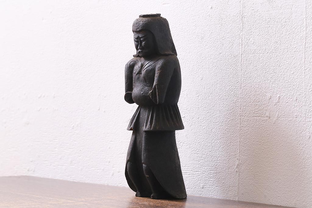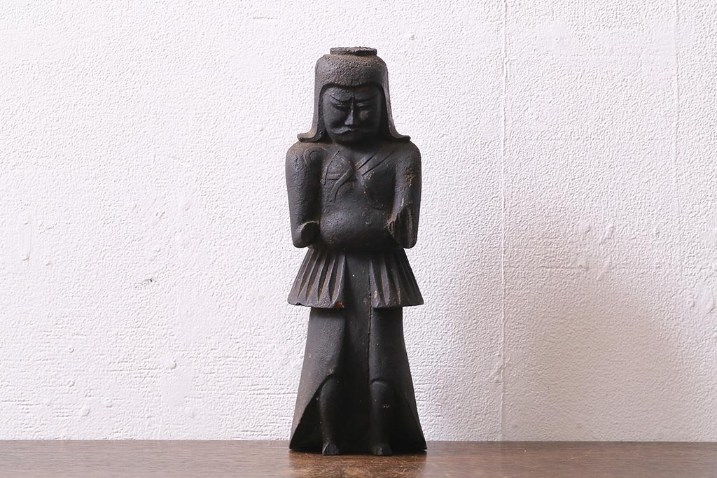 アンティーク雑貨 江戸期 古い木彫りの置き物(仏像、武神)(R-041424)