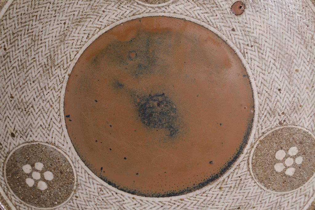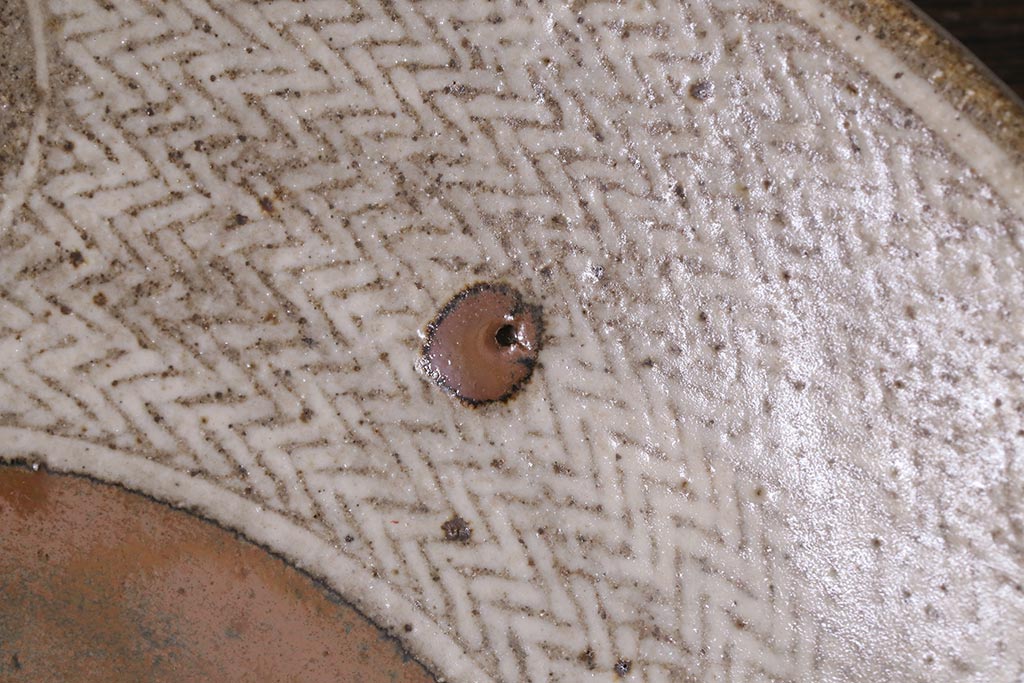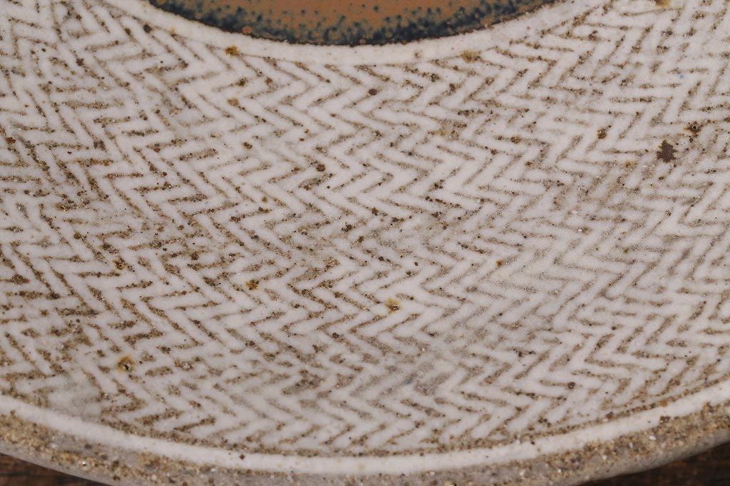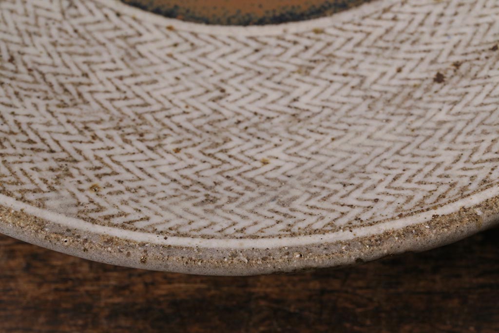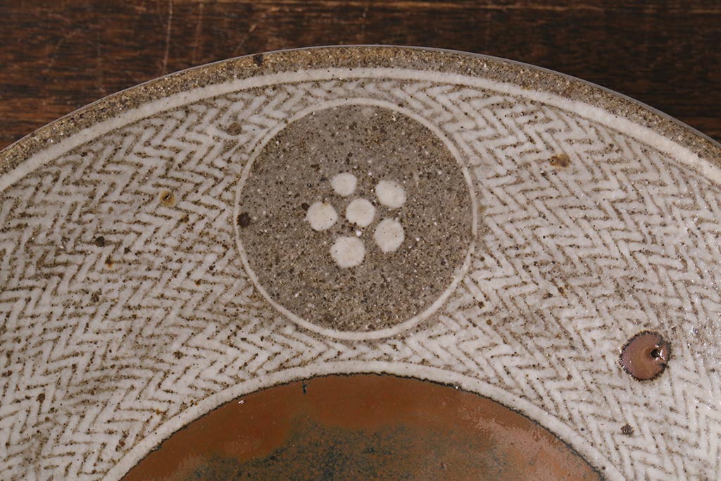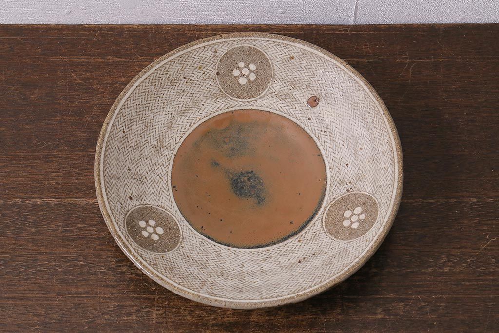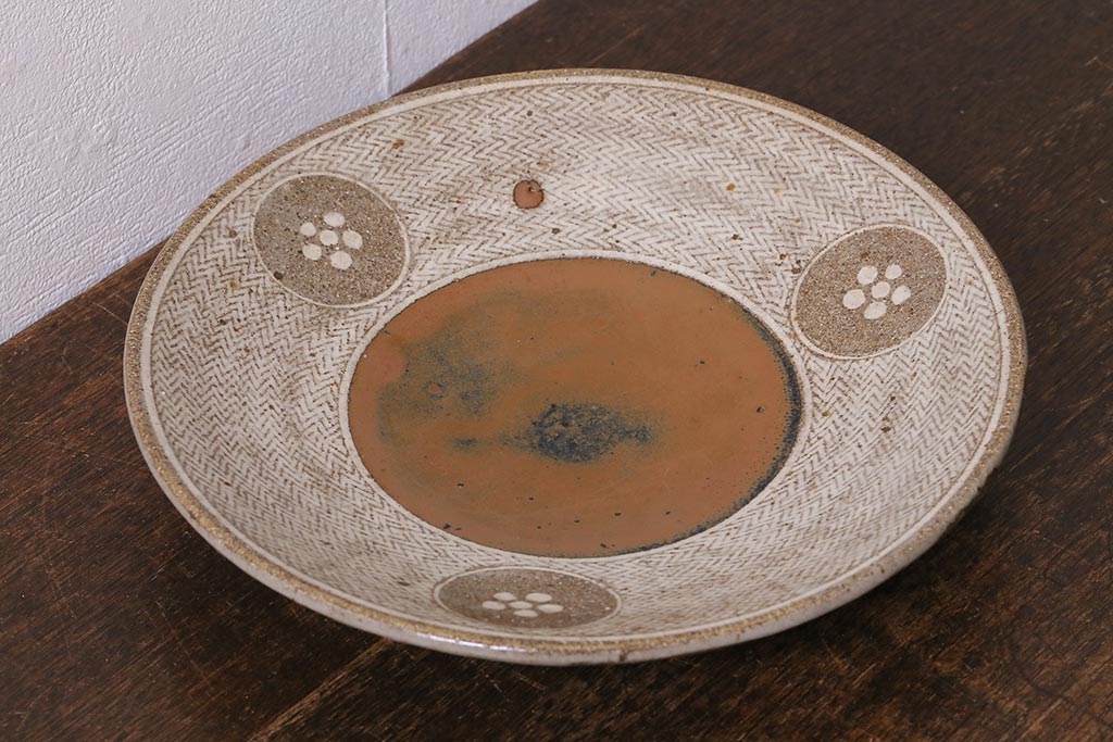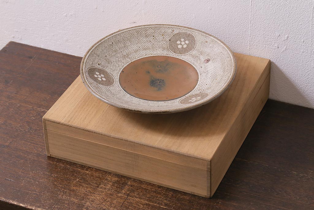 人間国宝 島岡達三 象嵌皿 共箱付き(縄文象嵌、益子焼、大皿)(R-041425)