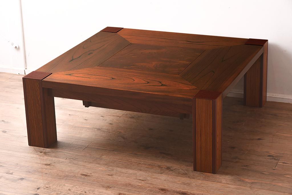 テーブル> 座卓 > 在庫未使用品 IDC大塚家具 藤沢木工 脚乾漆 ケヤキ無垢材 力強い杢目が目を惹く上質な囲炉裏テーブル(いろり、座卓、ローテーブル、センターテーブル、リビングテーブル、木製火鉢)(定価約32万円)(R-041752)