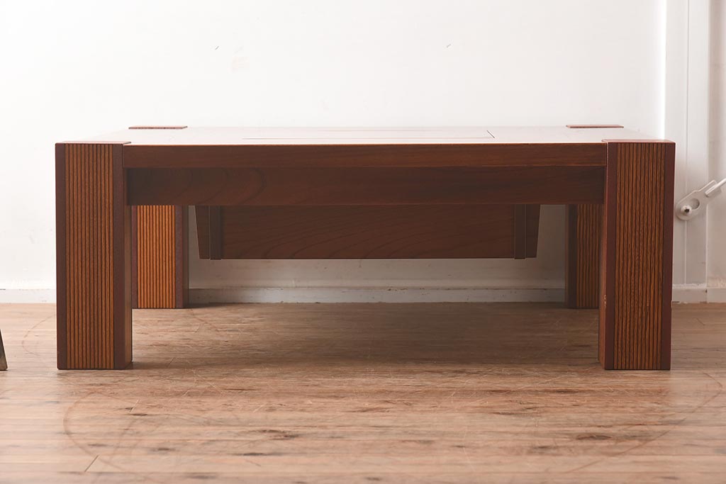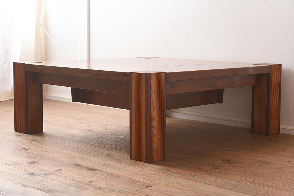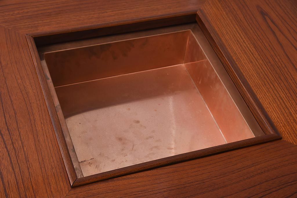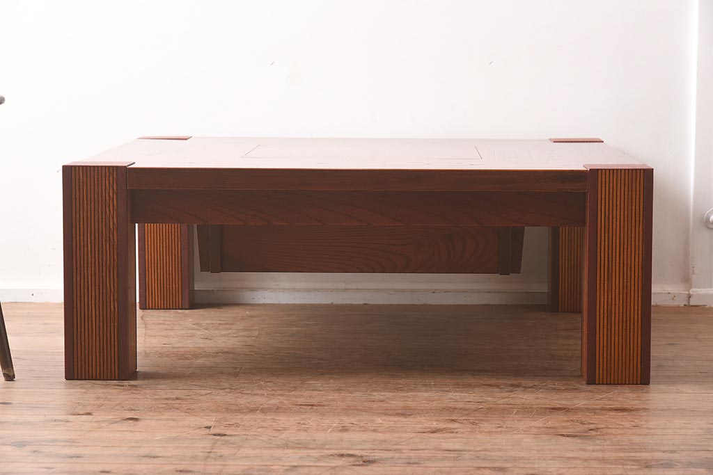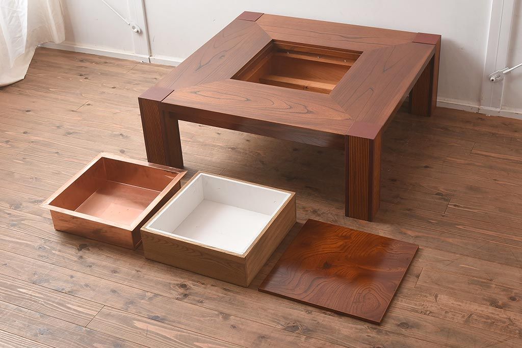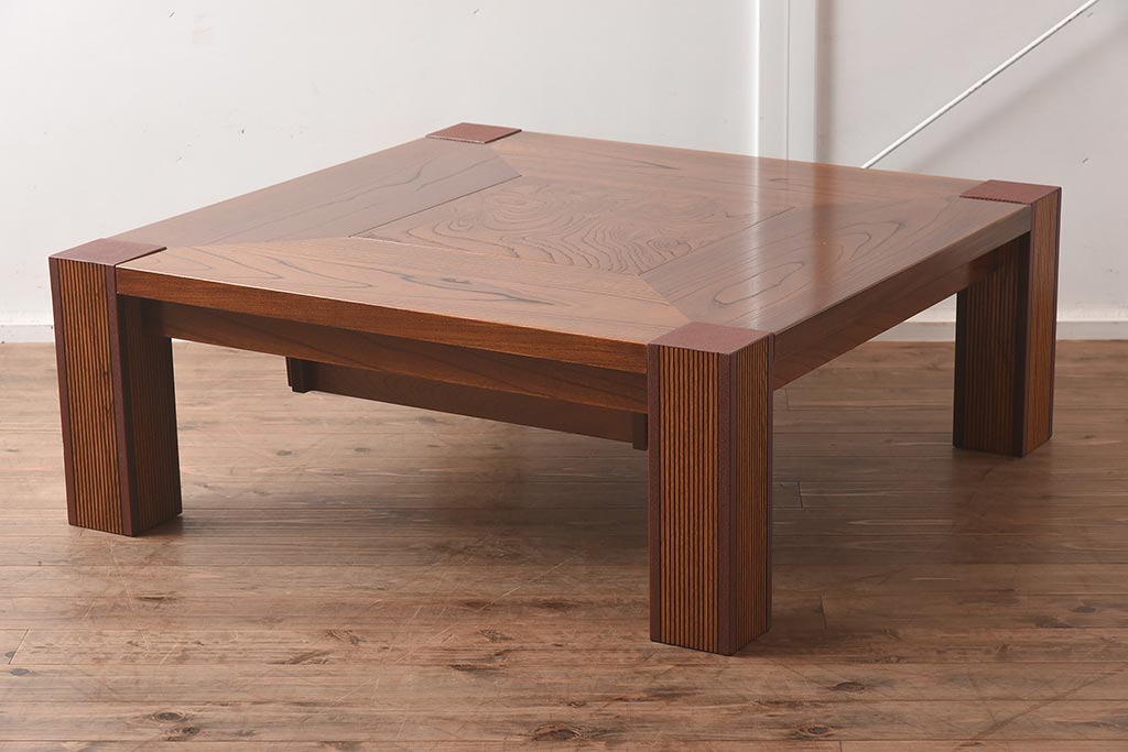 在庫未使用品 IDC大塚家具 藤沢木工 脚乾漆 ケヤキ無垢材 力強い杢目が目を惹く上質な囲炉裏テーブル(いろり、座卓、ローテーブル、センターテーブル、リビングテーブル、木製火鉢)(定価約32万円)(R-041752)です。