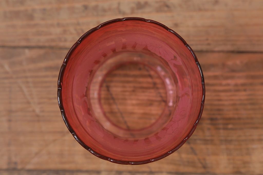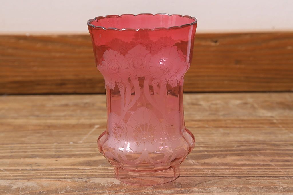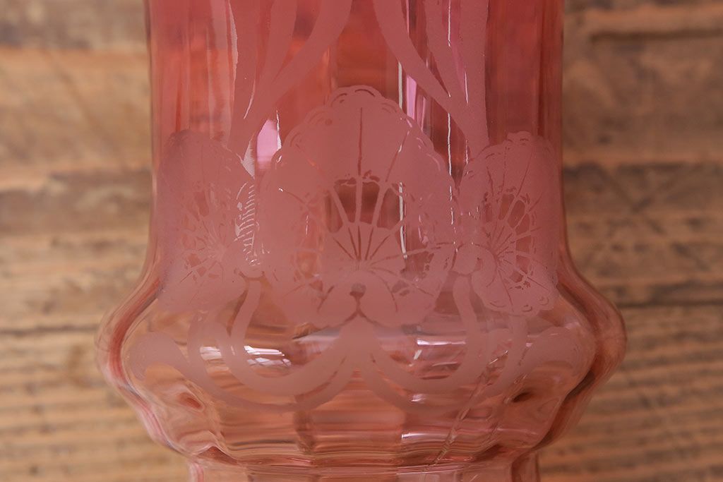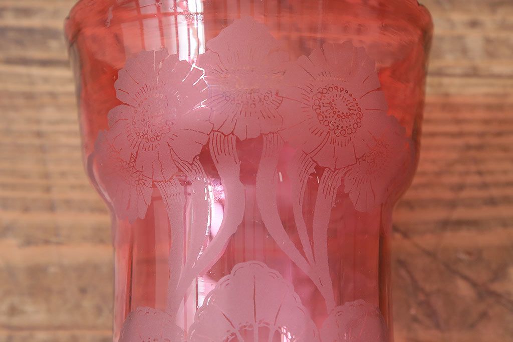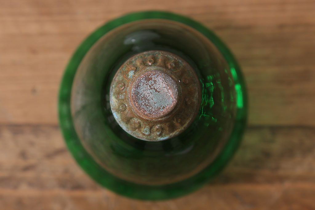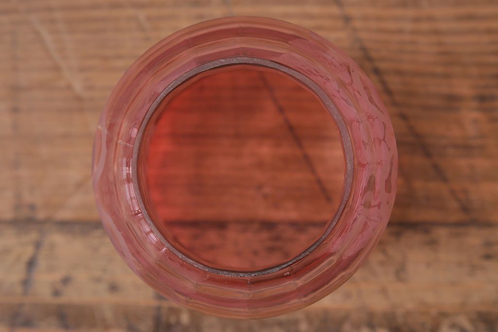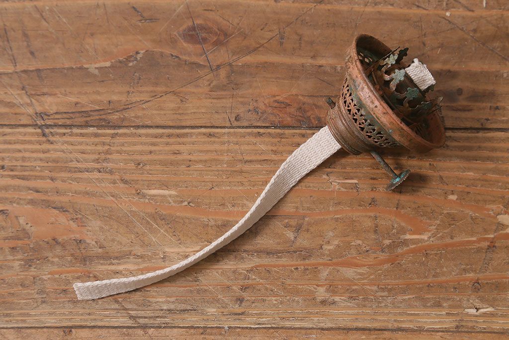 ヴィンテージ雑貨 イギリスビンテージ 平芯 5分芯 3色のガラスが可愛らしいオイルランプ(灯油ランプ、台ランプ)(R-041760)