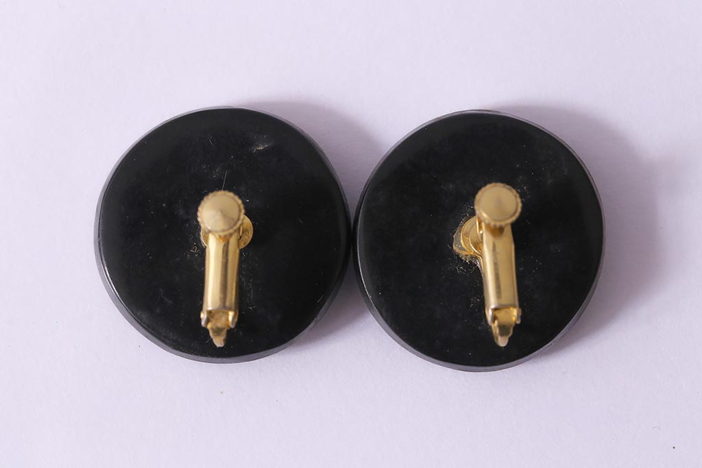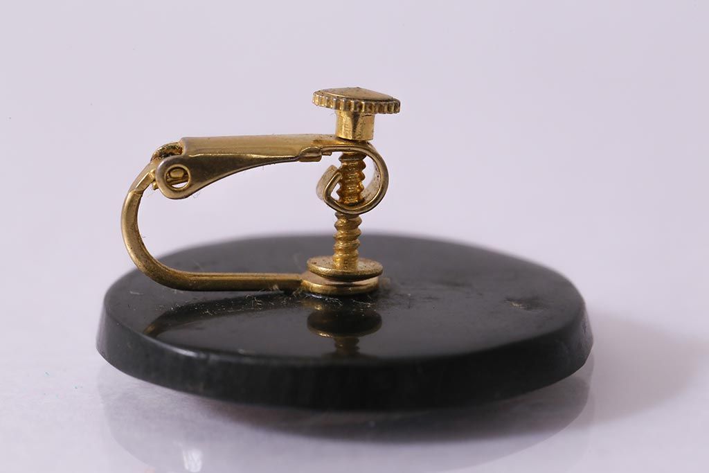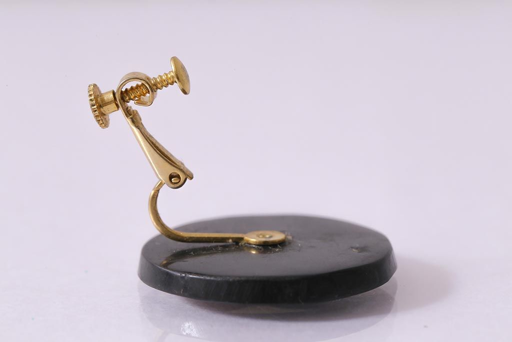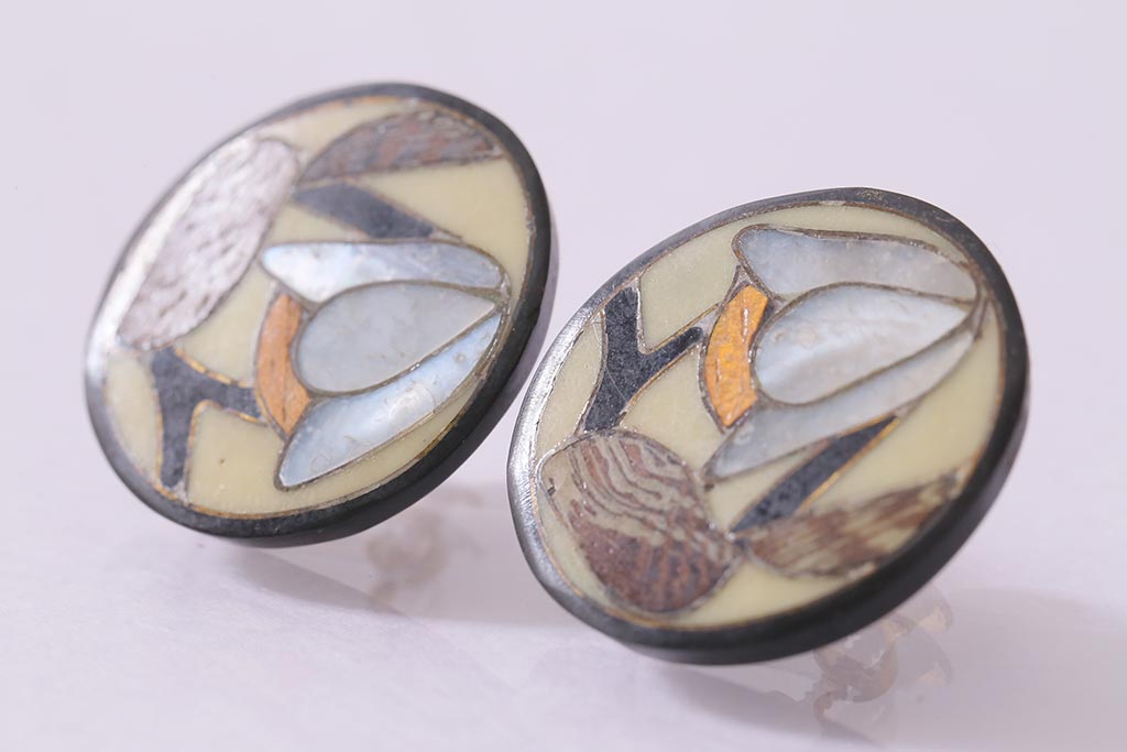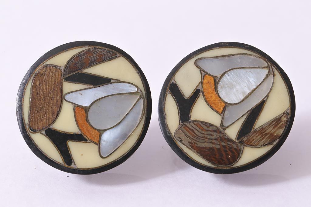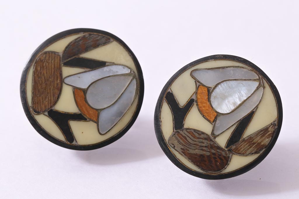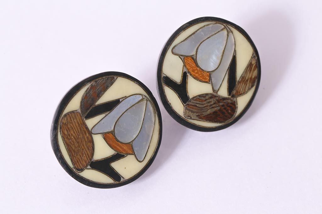 ラフジュ工房> 雑貨 > ヴィンテージ雑貨 木と貝の象嵌細工が施された丸型の可愛らしいイヤリング(アクセサリー、ビンテージ)(R-041775)