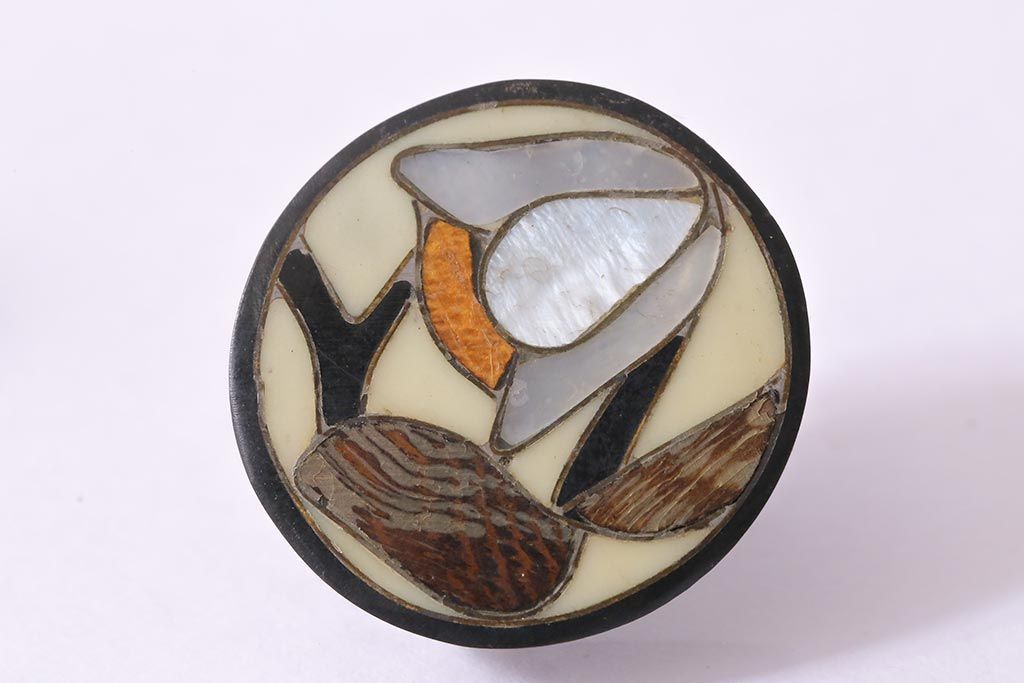 ラフジュ工房> アクセサリー> イヤリング > ヴィンテージ雑貨 木と貝の象嵌細工が施された丸型の可愛らしいイヤリング(アクセサリー、ビンテージ)(R-041775)