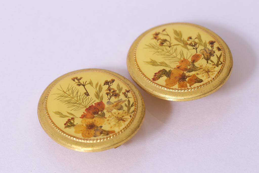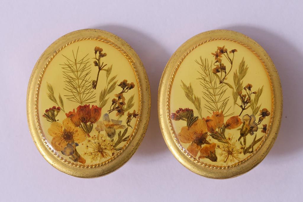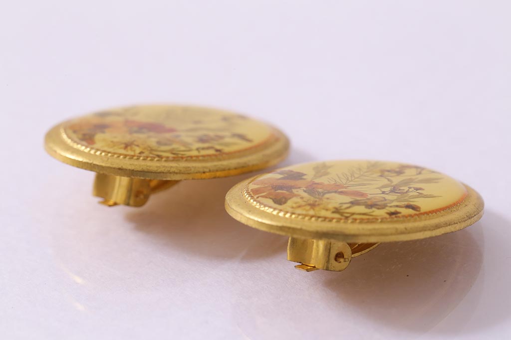 ラフジュ工房> 雑貨 > ヴィンテージ雑貨 可憐な押し花が目を引くオーバル型のイヤリング(アクセサリー、ビンテージ)(R-041777)